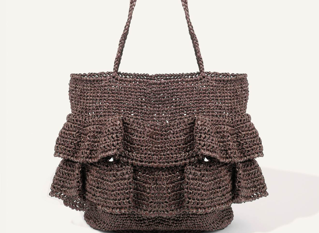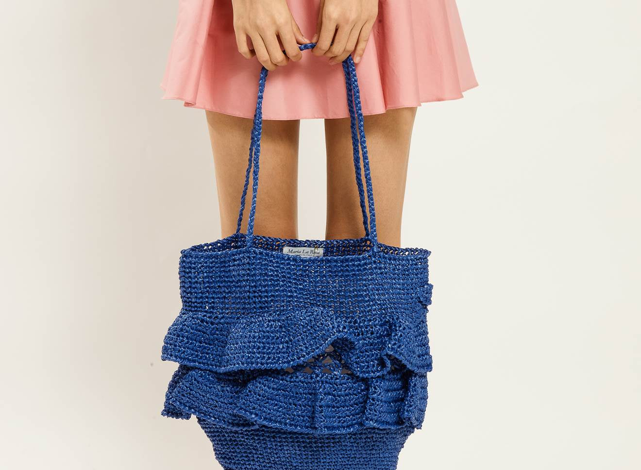 Large women's raffia shoulder bag, made entirely by hand with the crochet technique.