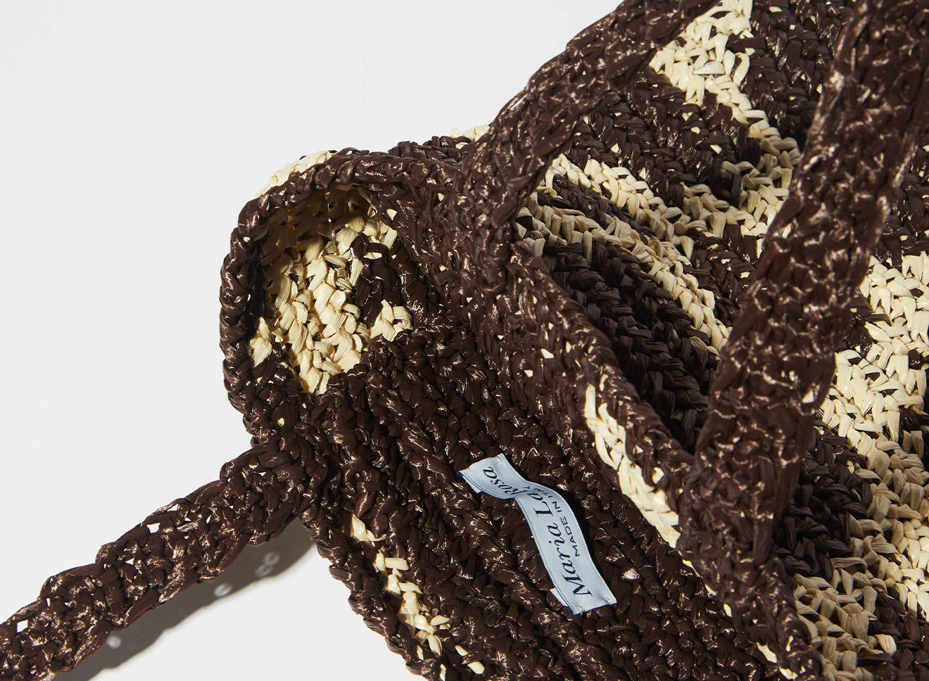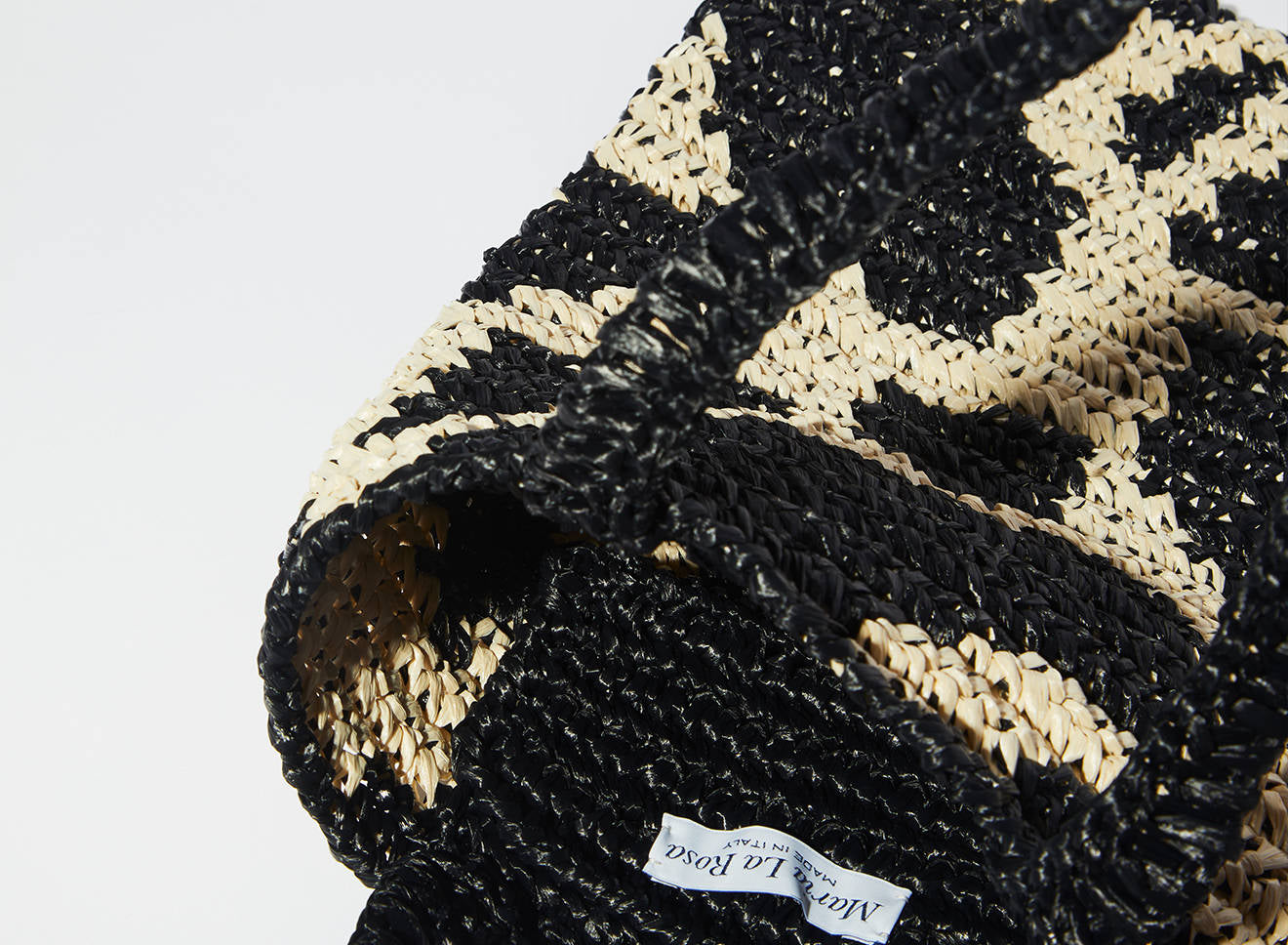 Raffia tote bag handmade using the crochet technique. This elegant accessory is perfect for adding a touch of freshness and style to your summer look. Its handcrafted weave lends a unique and refined look. Spacious, this bag offers practicality without sacrificing fashion. Entirely designed and made in Italy.