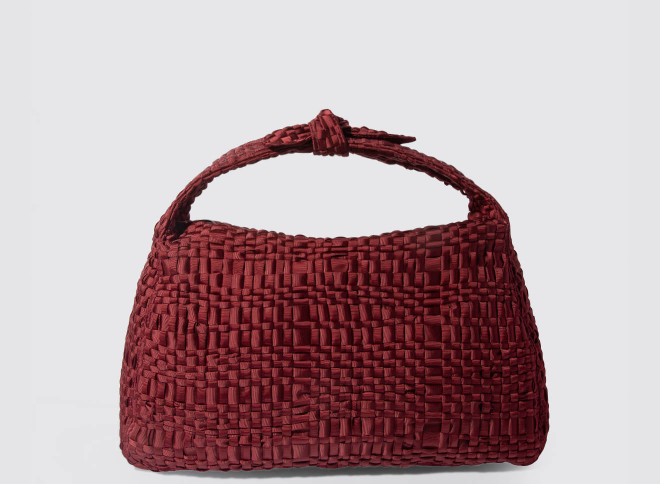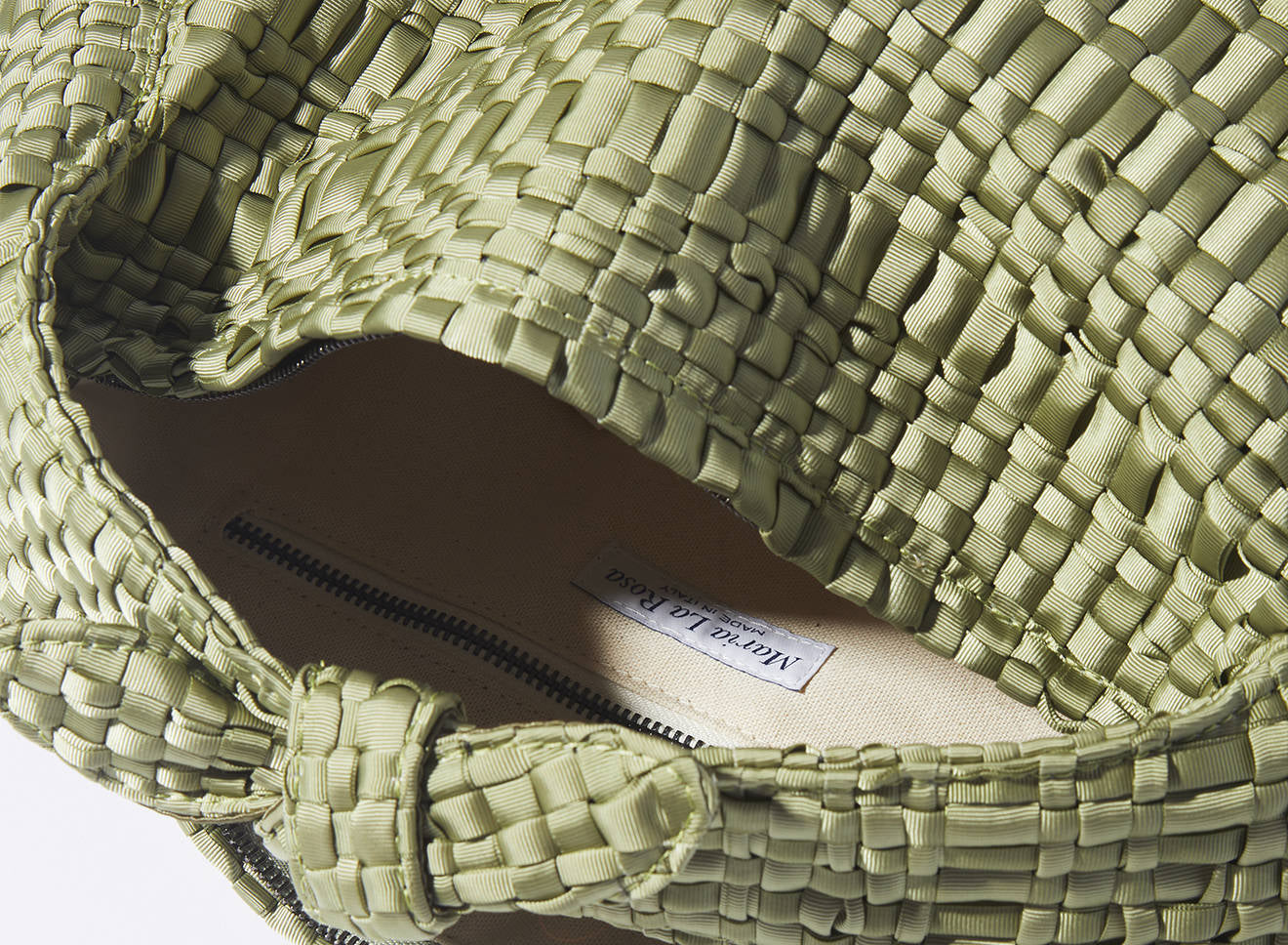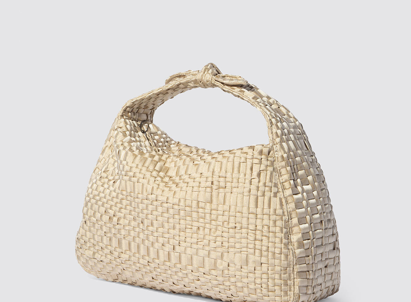 Hand-woven on a loom, this bag exudes authenticity and distinctive character. The artisanal craftsmanship creates a soft and original texture, enhanced by the decorative knotted handles. Spacious and functional, it's the ideal accessory to complete everyday looks with a touch of sophisticated style. Entirely designed and manufactured in Italy.