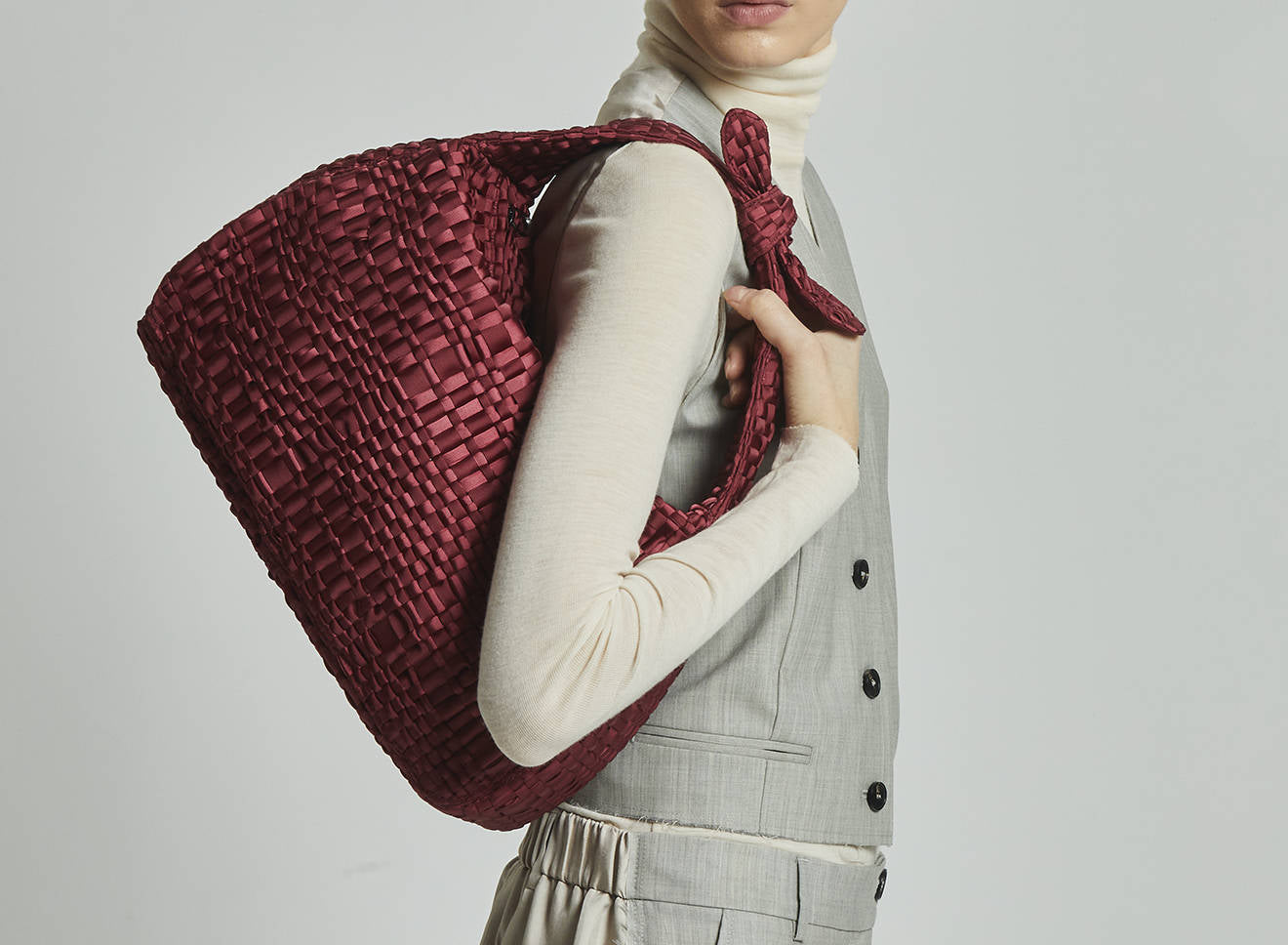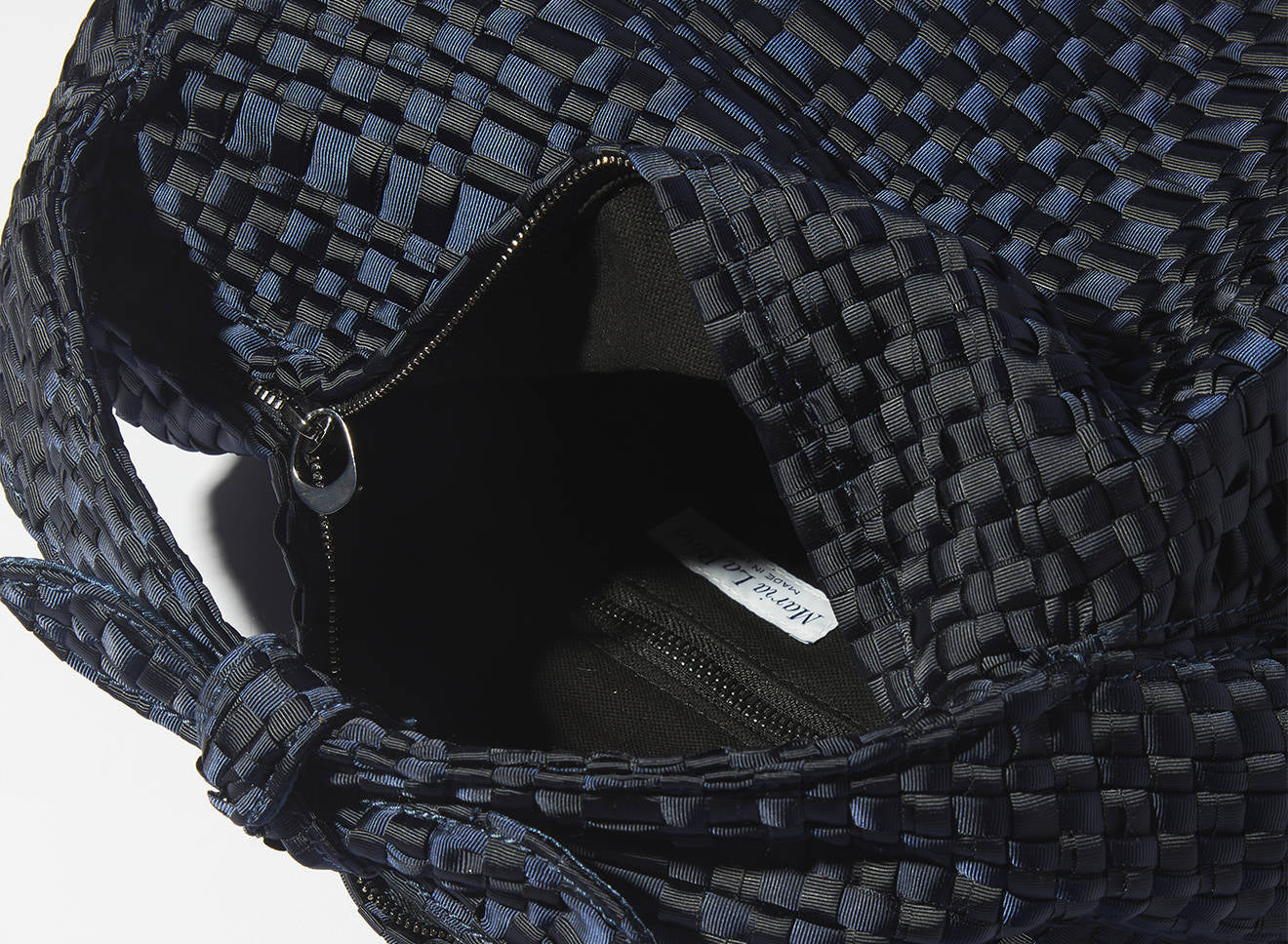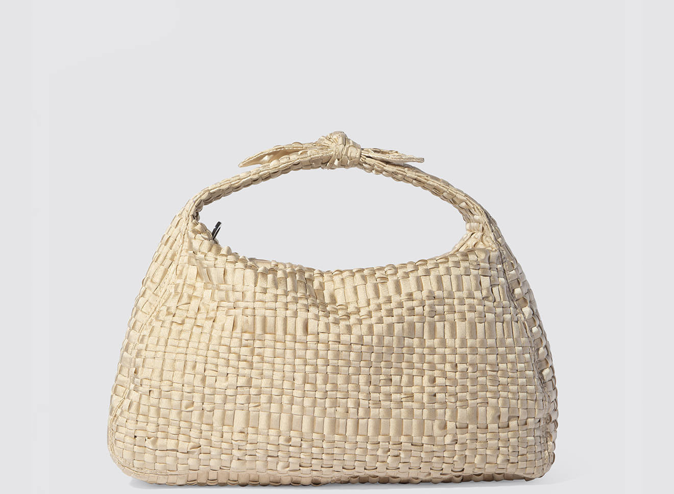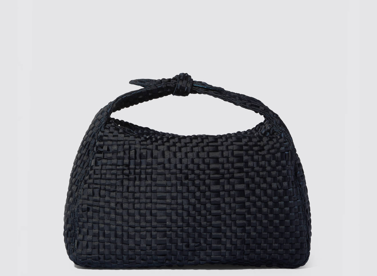 Hand-woven on a loom, this bag exudes authenticity and distinctive character. The artisanal craftsmanship creates a soft and original texture, enhanced by the decorative knotted handles. Spacious and functional, it's the ideal accessory to complete everyday looks with a touch of sophisticated style. Entirely designed and manufactured in Italy.