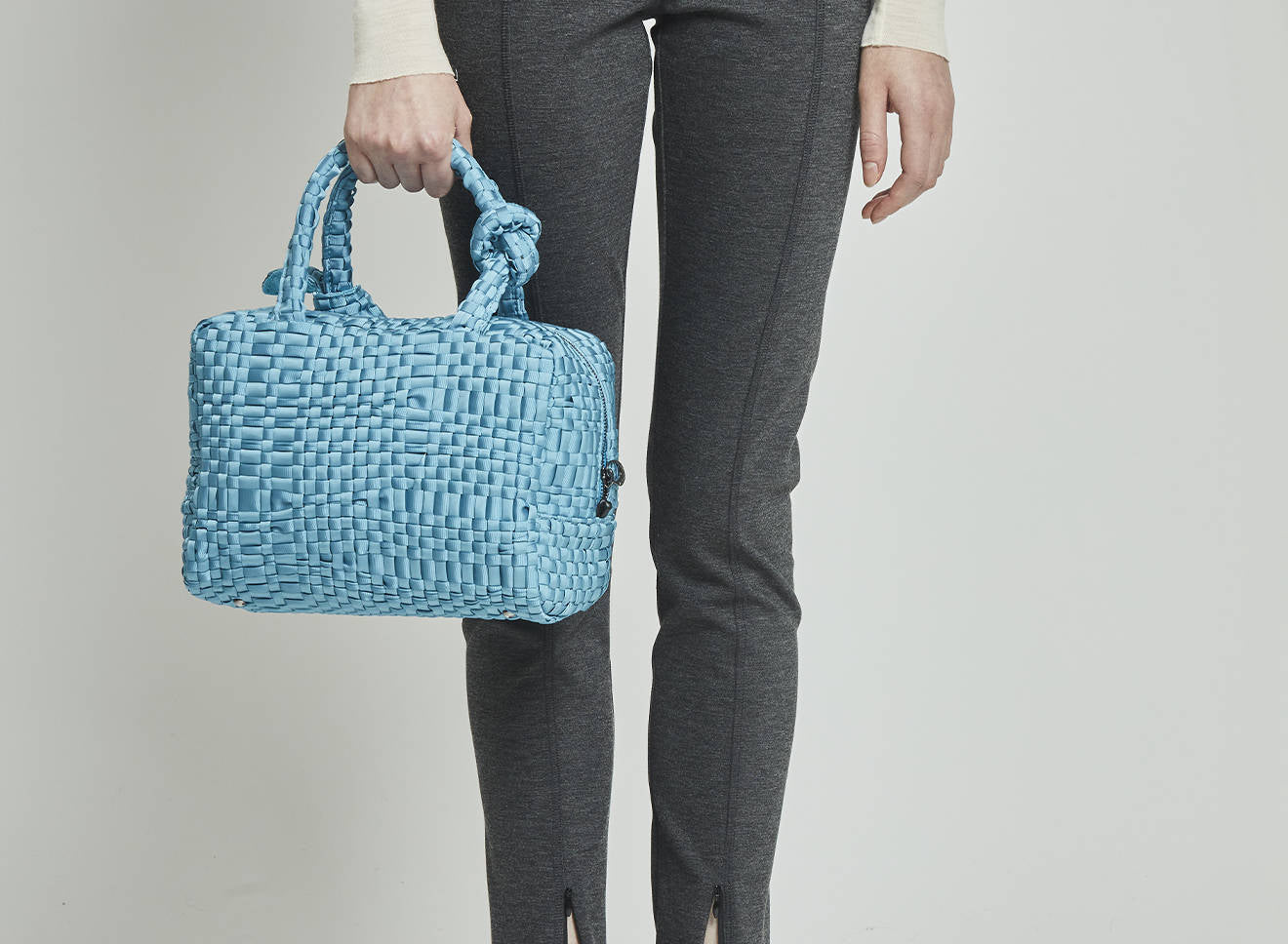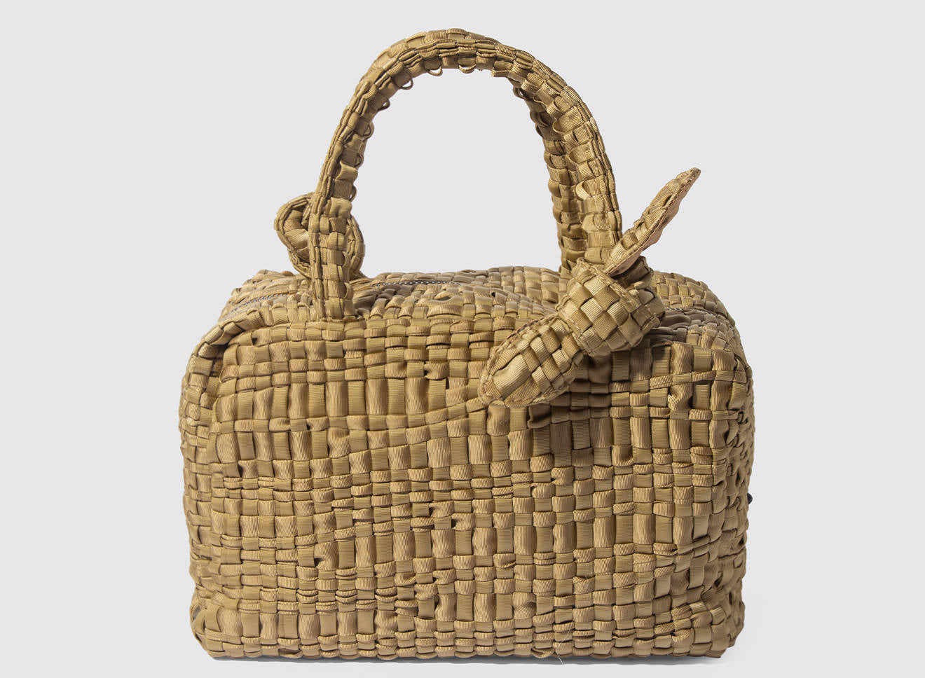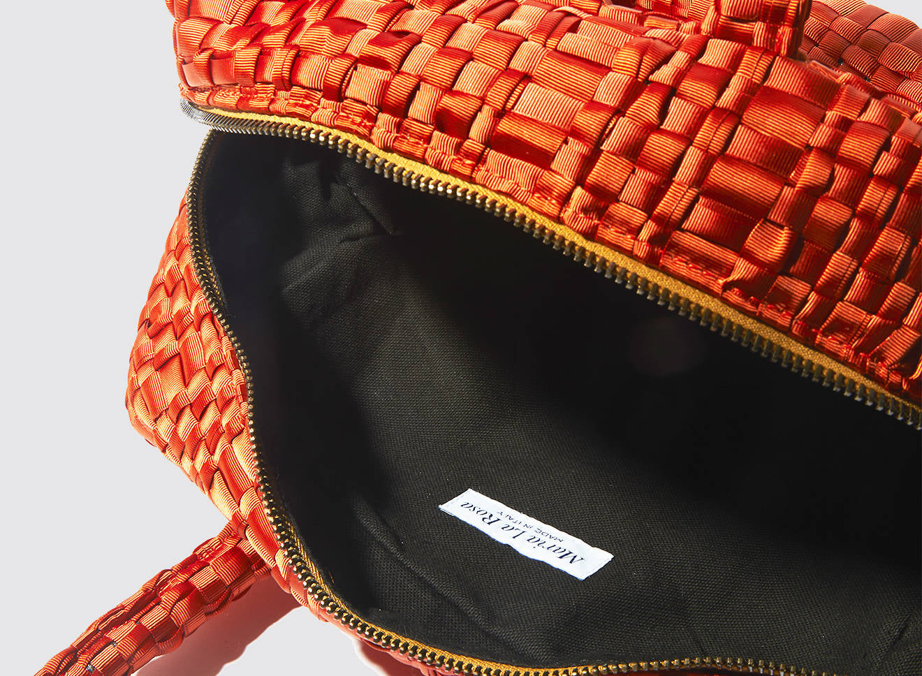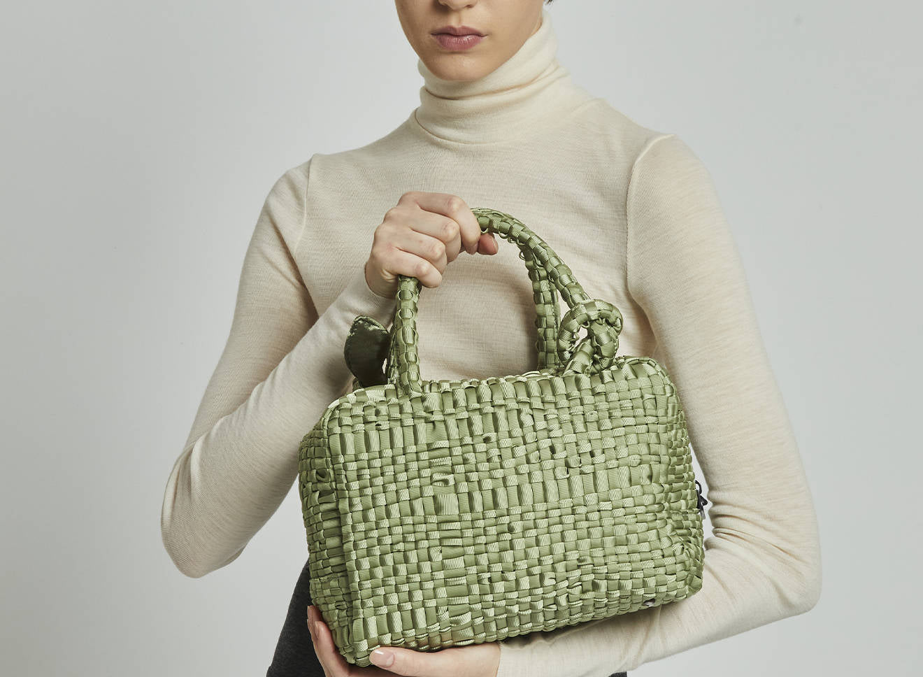 Hand-woven on a loom, this bag exudes authenticity and distinctive character. The artisanal craftsmanship creates a soft and original texture, enhanced by the decorative knotted handles. Spacious and functional, it's the ideal accessory to complete everyday looks with a touch of sophisticated style. Entirely designed and manufactured in Italy.