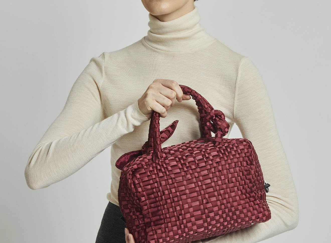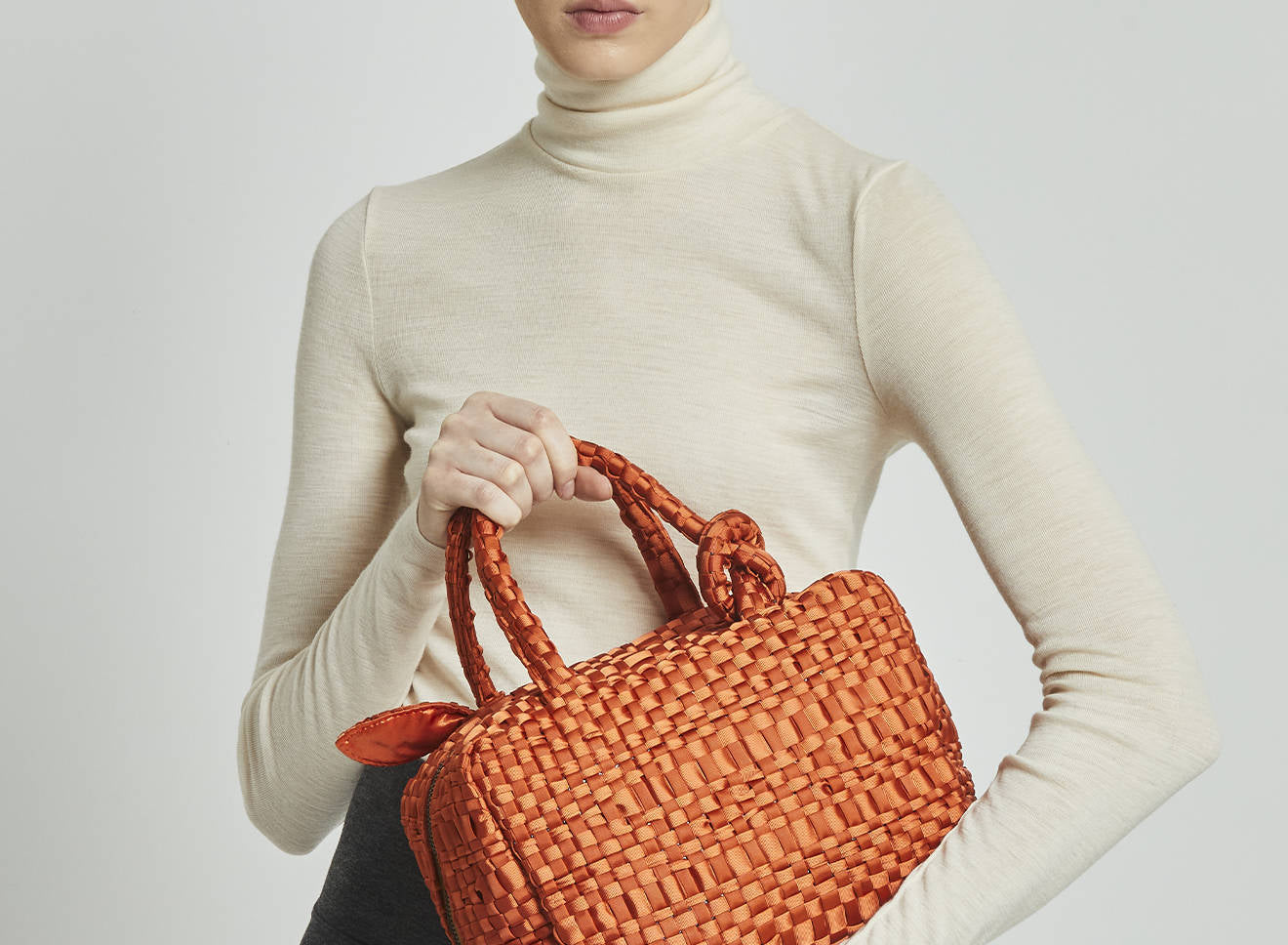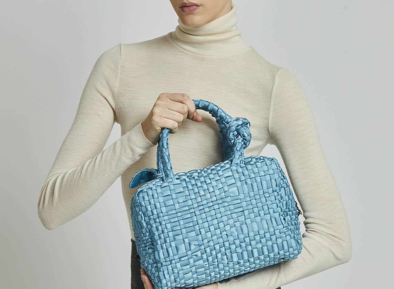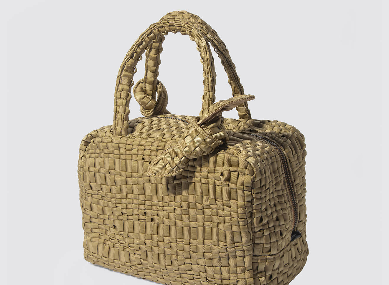 Hand-woven on a loom, this bag exudes authenticity and distinctive character. The artisanal craftsmanship creates a soft and original texture, enhanced by the decorative knotted handles. Spacious and functional, it's the ideal accessory to complete everyday looks with a touch of sophisticated style. Entirely designed and manufactured in Italy.