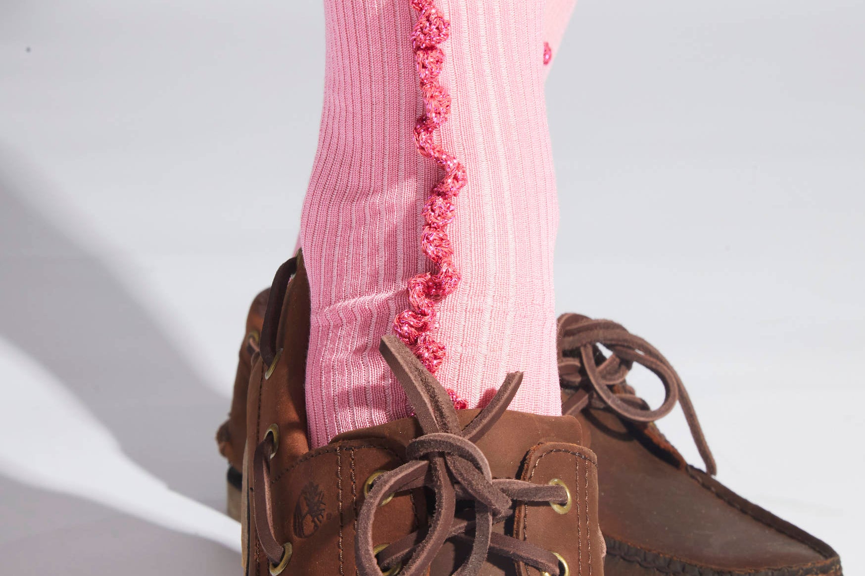 Perfect for pairing with loafers, lace-ups, or open sandals, these socks are designed for those who love to stand out in the details. The ribbed texture ensures comfort and a snug fit, while the silk provides softness and breathability all day long.