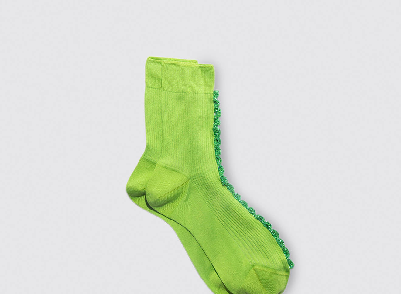 Despite their thinness, the material they're made from is incredibly insulating, keeping you cool in summer and warm in winter. The lurex embroidery, handcrafted with artisanal care, adds a touch of poetry, brightening every step with a fresh, spring-like feel.
