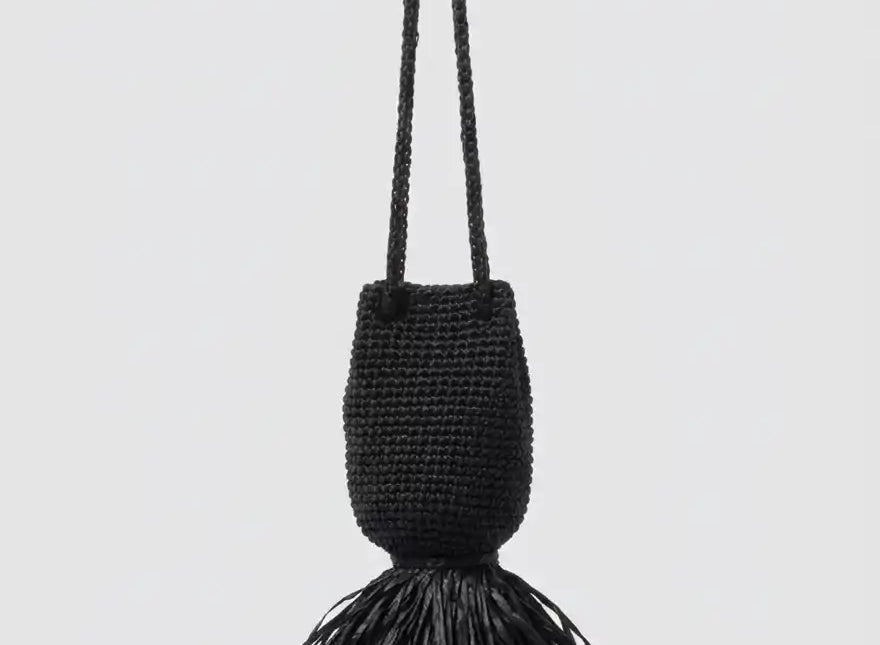 The soft silhouette, inspired by traditional bags, is enriched by a long, flowing fringe that adds movement and character, transforming every gesture into a dramatic detail. The thin, handcrafted shoulder strap allows it to be worn over the shoulder or crossbody with effortless elegance.