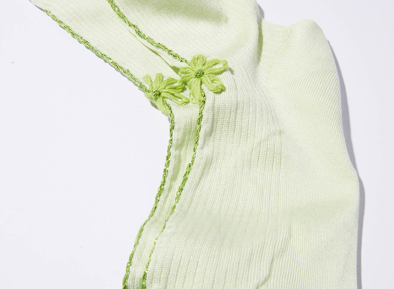 The material they are made of, in fact, despite their thinness, is extraordinarily insulating, resulting in being very fresh in summer and warm in winter. The delicate floral embroidery, hand-made with artisanal care, adds a touch of poetry, illuminating every step with a fresh and spring accent.