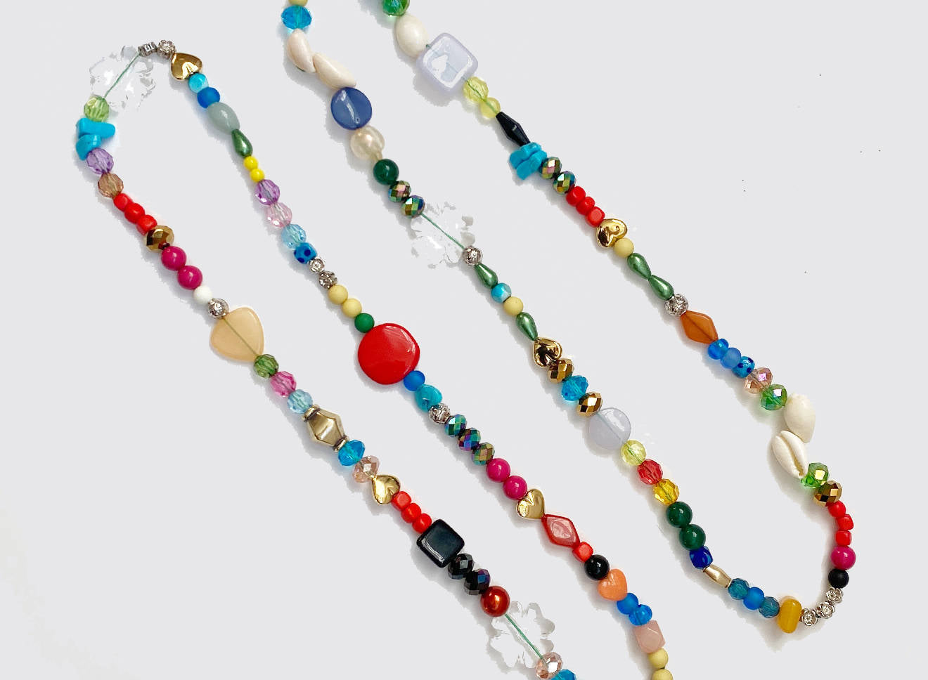 Cordino artigianale realizzato con un mix di perline colorate in vetro e resina, abbinate a elementi metallici e dettagli irregolari che rendono ogni pezzo unico. Il design vivace e giocoso lo rende perfetto per personalizzare smartphone, chiavi, borse o piccoli accessori.