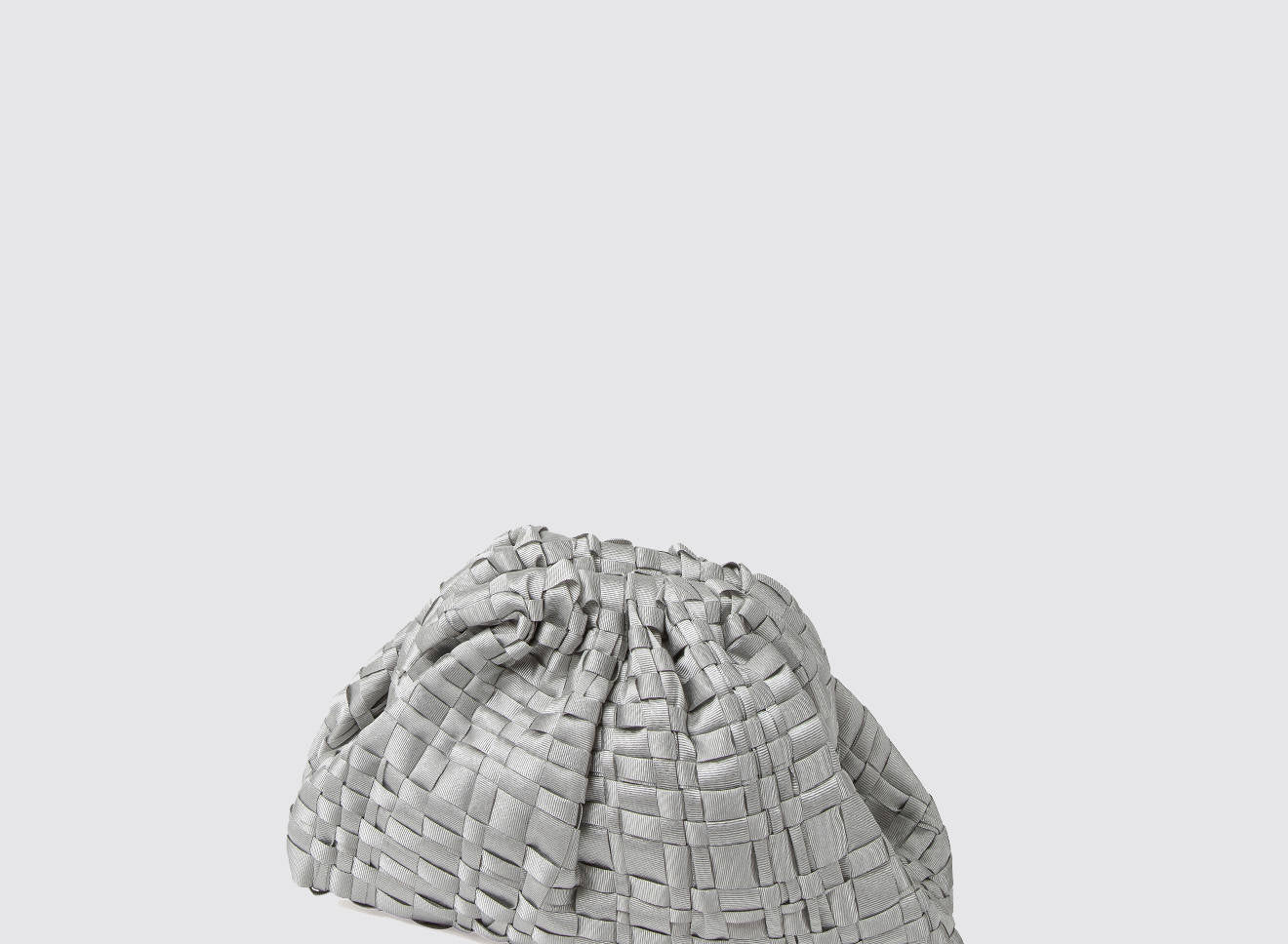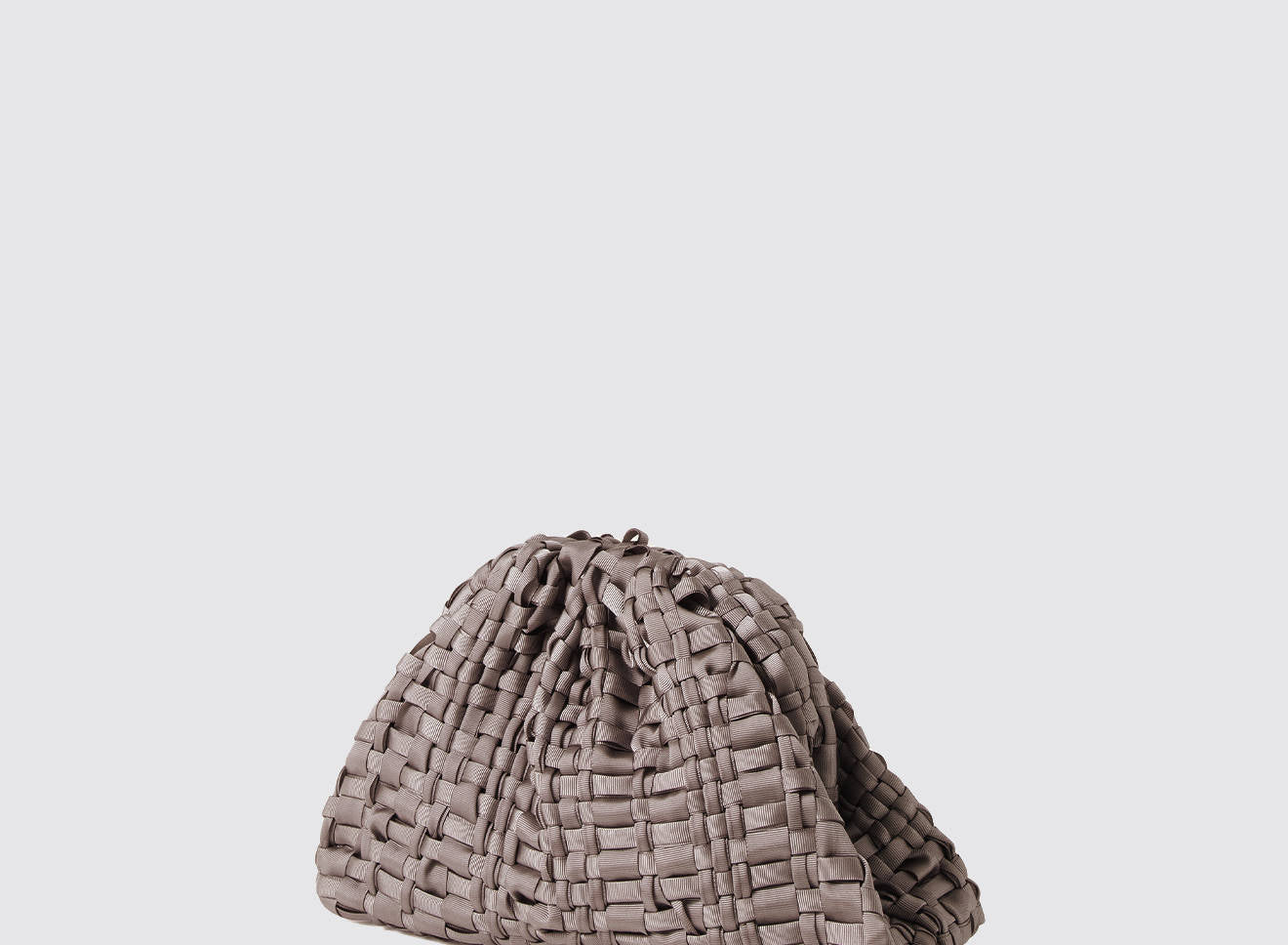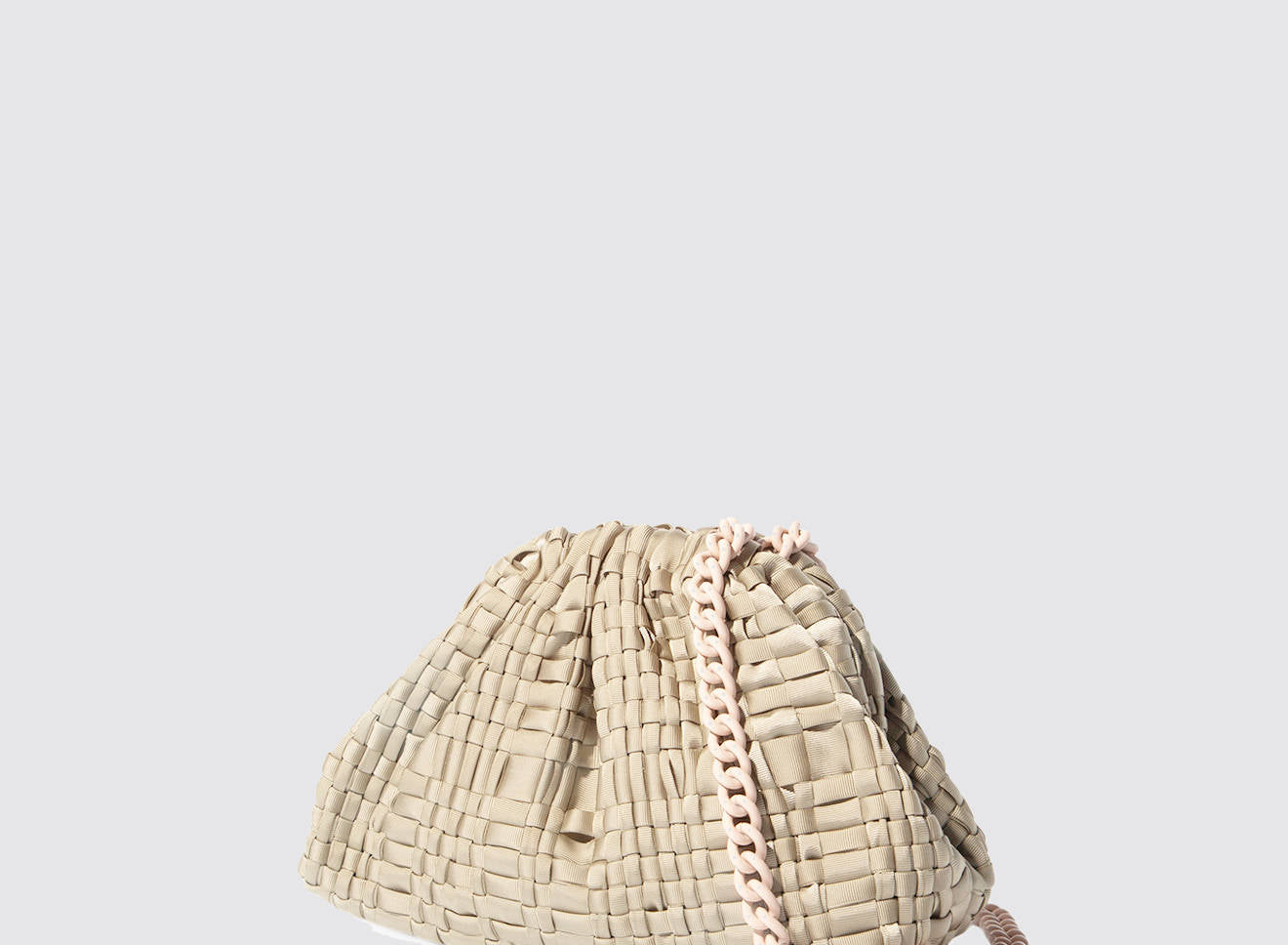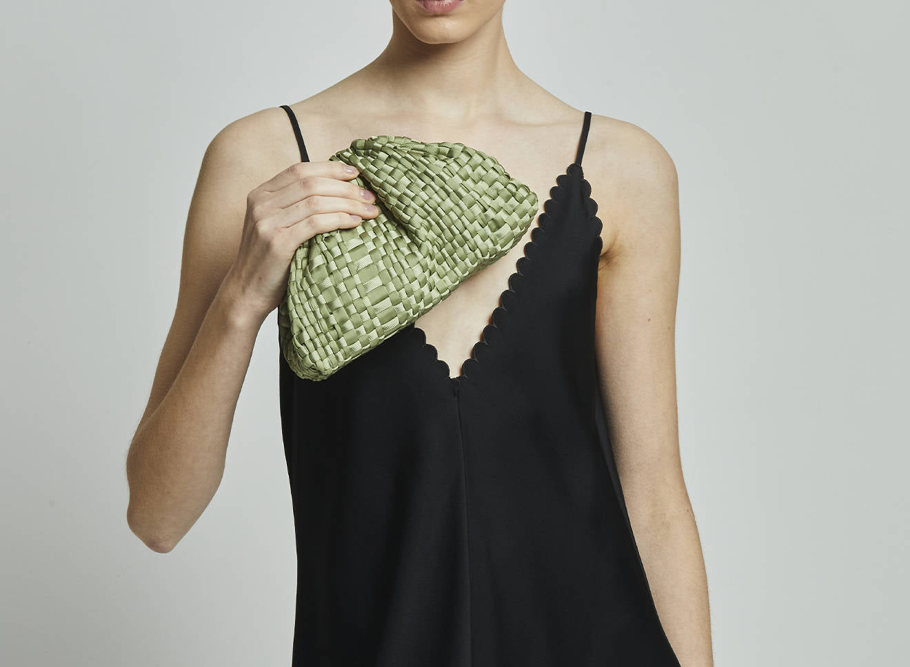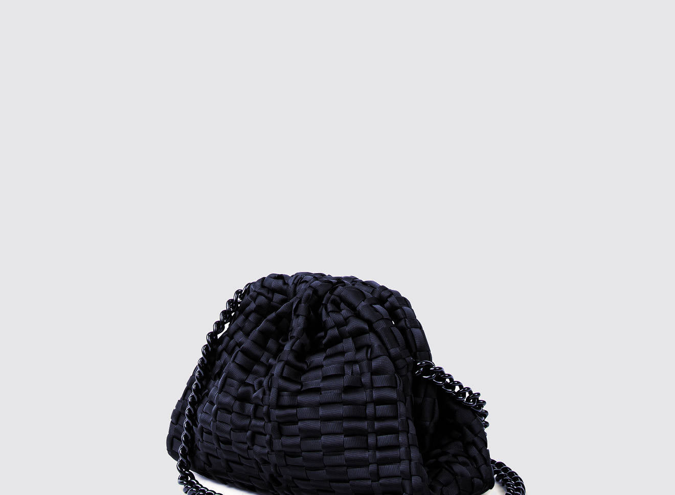 Small women's clutch in woven ribbon fabric, handmade on ancient looms. This unprecedented reduced version of the Maria La Rosa icon bag is roomy enough to carry the essentials with you. Perfect for all seasons, it is the emblem of a new metropolitan elegance. It is equipped with a ton sur ton chain to wear it even over the shoulder and there are many chromatic varieties to choose from: from natural to fluorescent shades, up to darker shades, such as forest green and black.