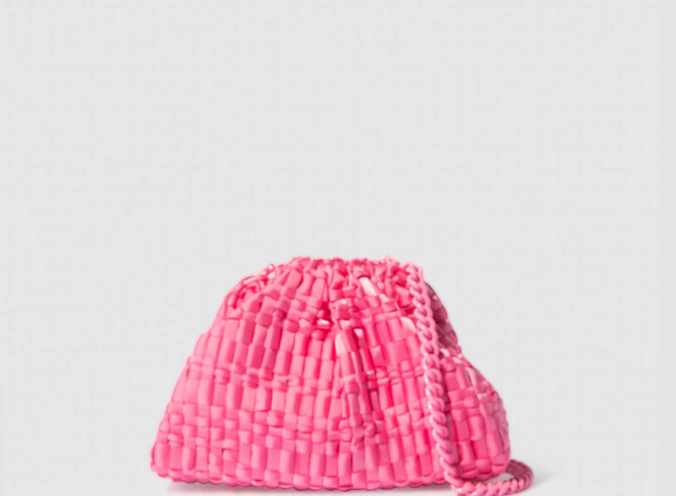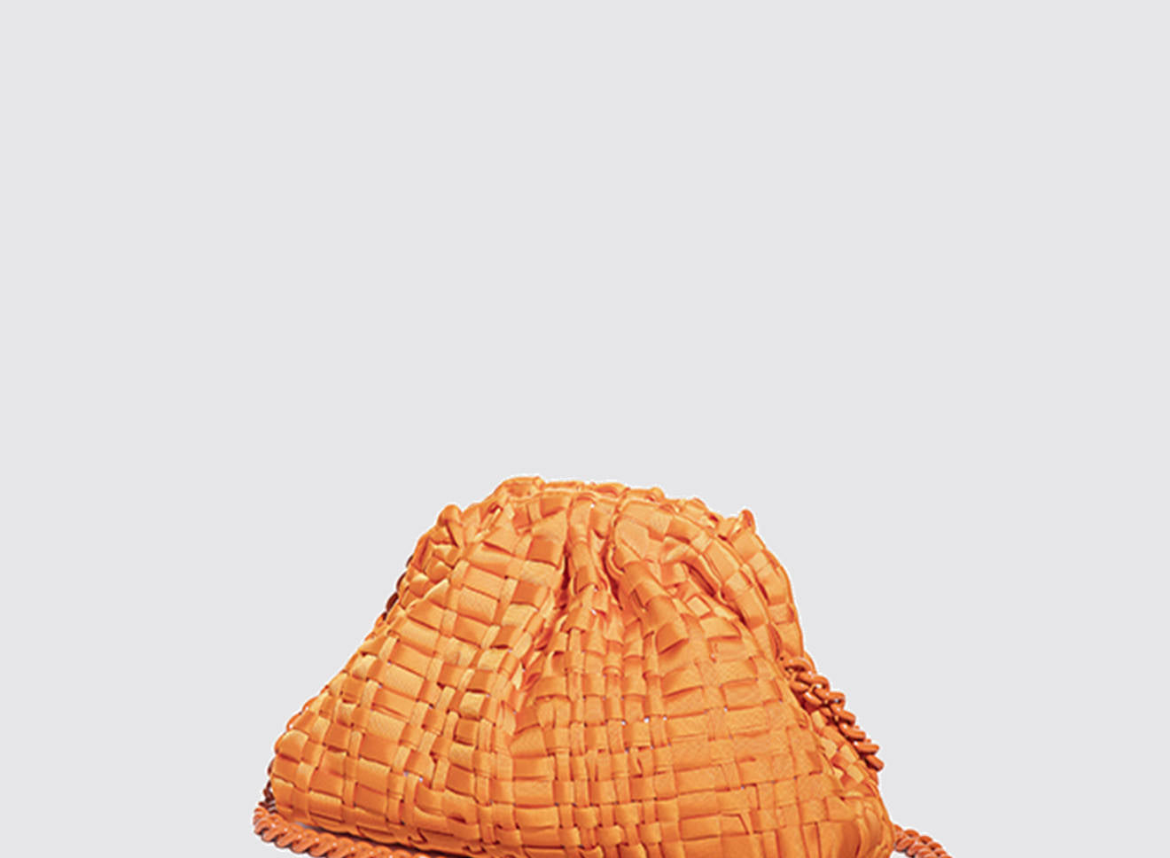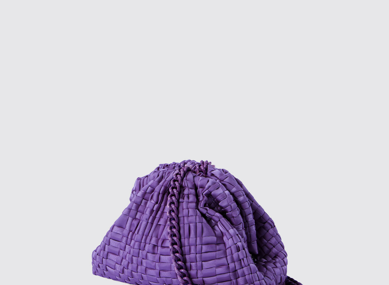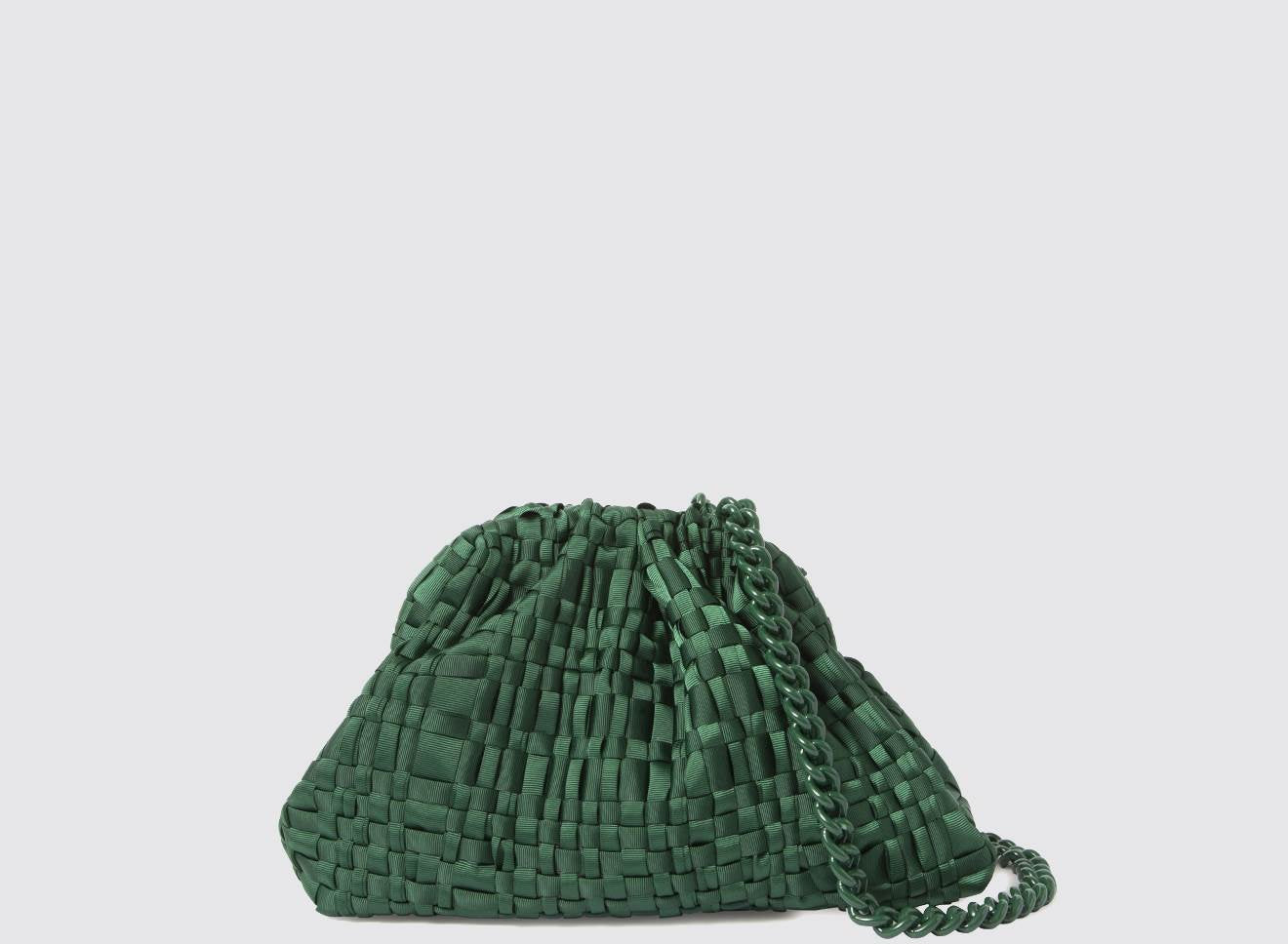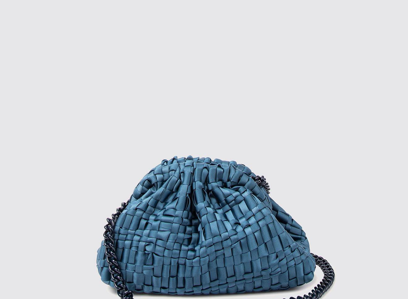 Small women's clutch in woven ribbon fabric, handmade on ancient looms. This unprecedented reduced version of the Maria La Rosa icon bag is roomy enough to carry the essentials with you. Perfect for all seasons, it is the emblem of a new metropolitan elegance. It is equipped with a ton sur ton chain to wear it even over the shoulder and there are many chromatic varieties to choose from: from natural to fluorescent shades, up to darker shades, such as forest green and black.