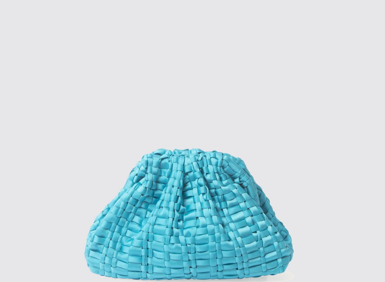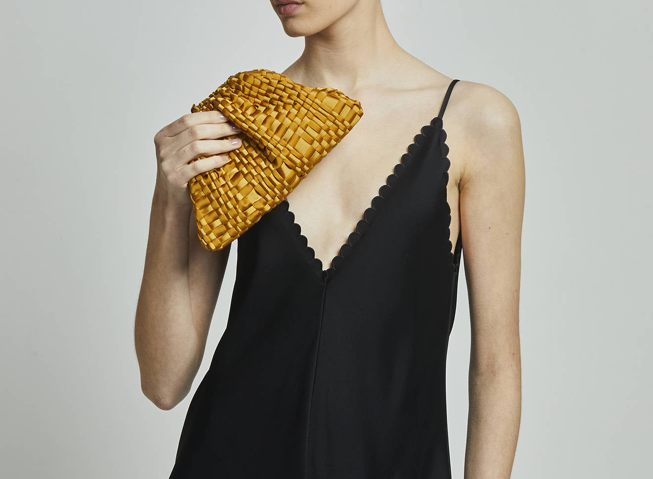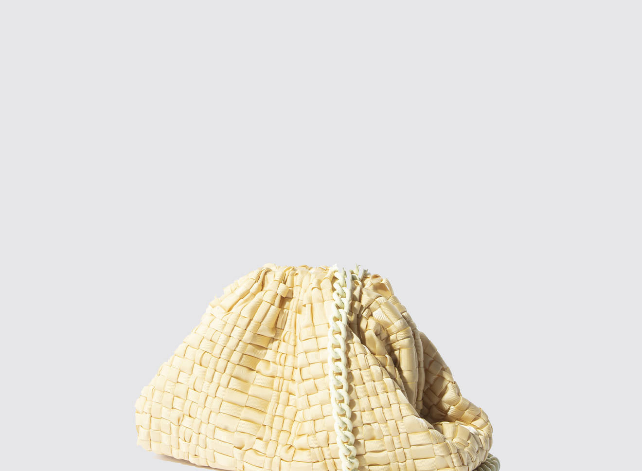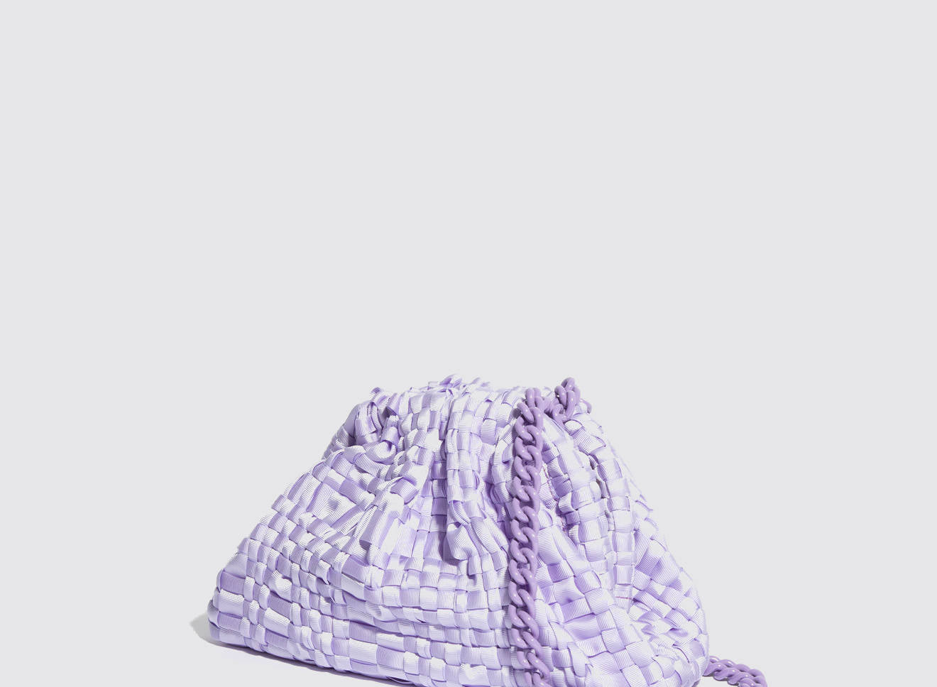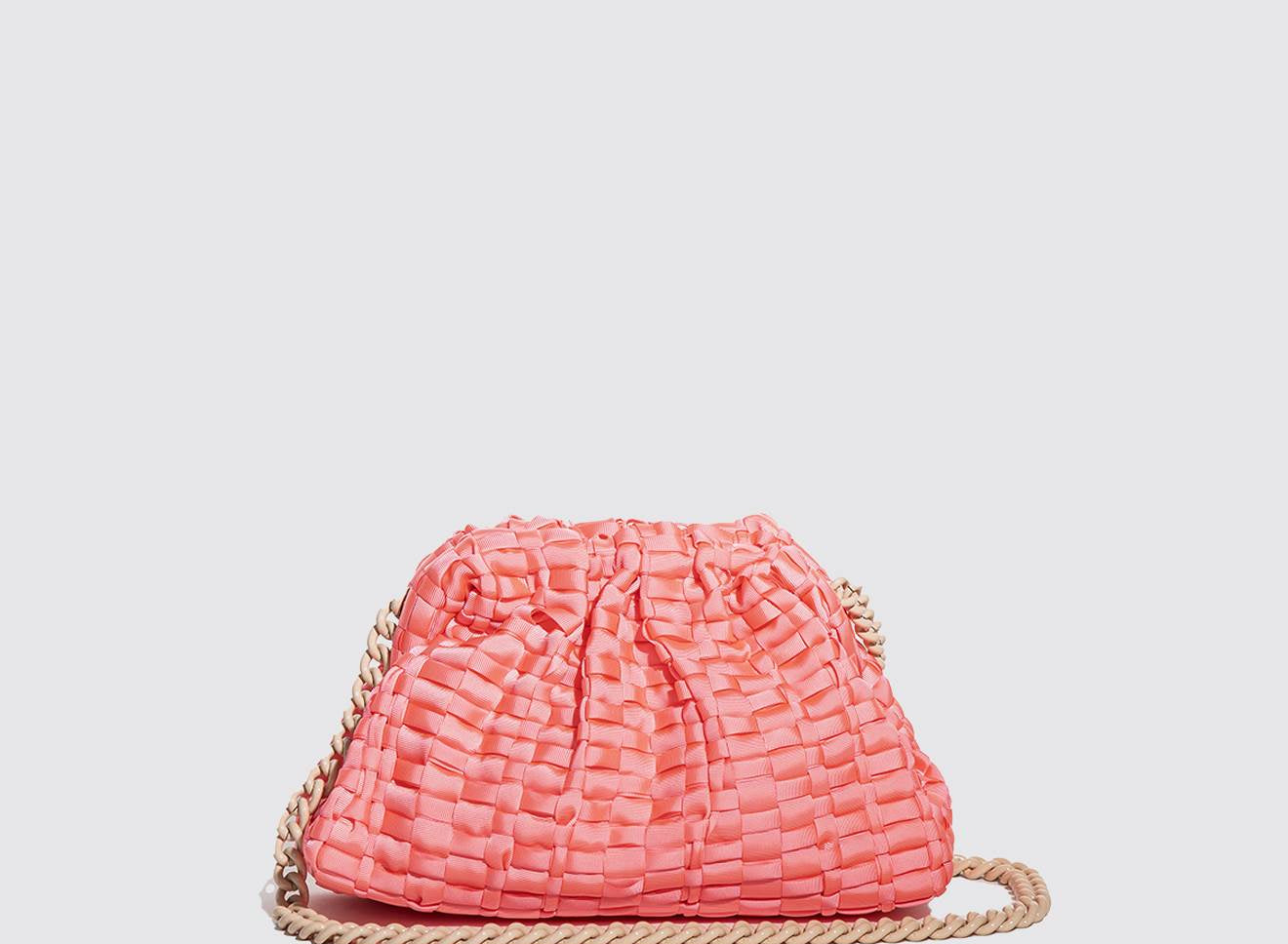 Small women's clutch in woven ribbon fabric, handmade on ancient looms. This unprecedented reduced version of the Maria La Rosa icon bag is roomy enough to carry the essentials with you. Perfect for all seasons, it is the emblem of a new metropolitan elegance. It is equipped with a ton sur ton chain to wear it even over the shoulder and there are many chromatic varieties to choose from: from natural to fluorescent shades, up to darker shades, such as forest green and black.