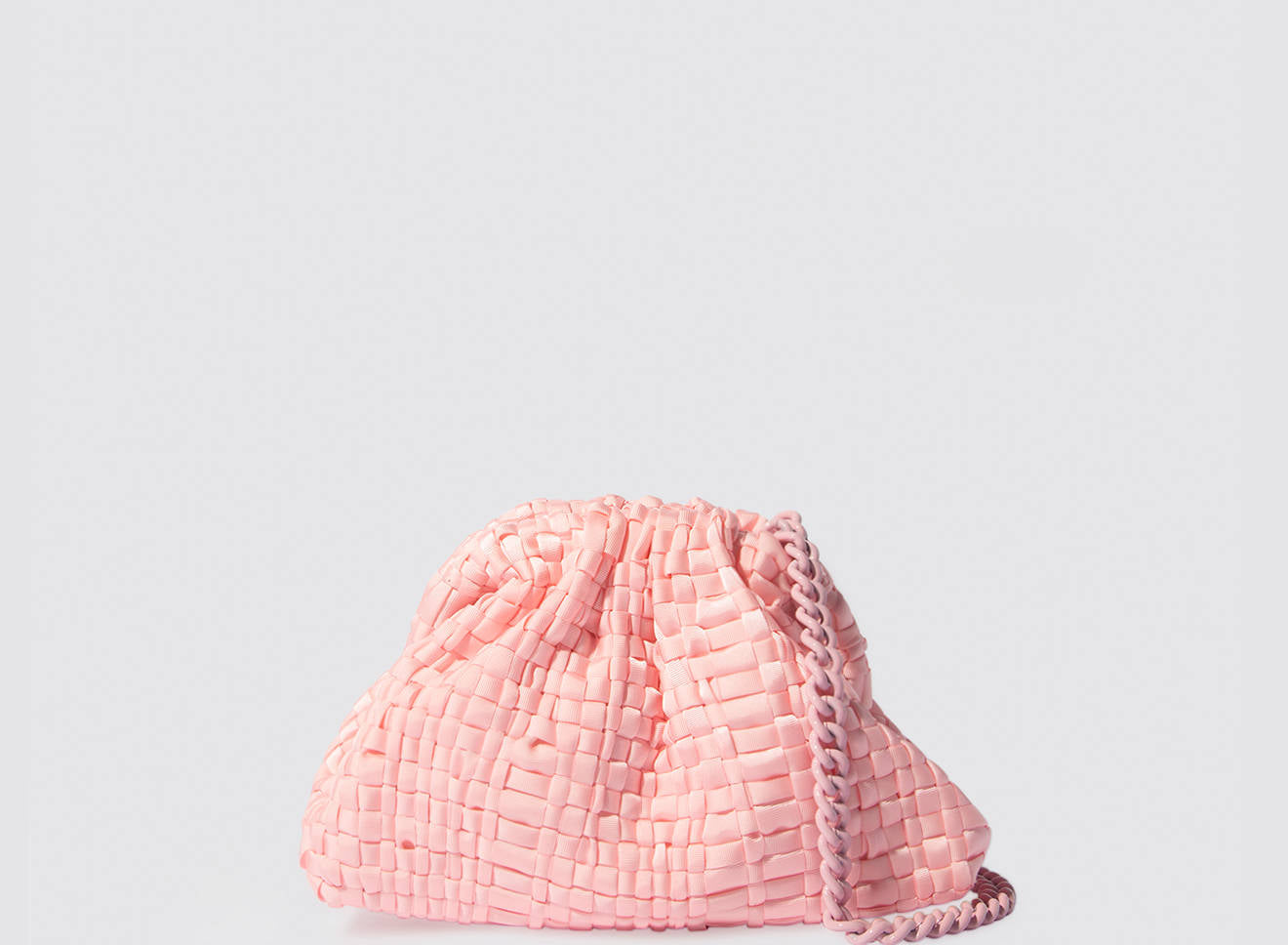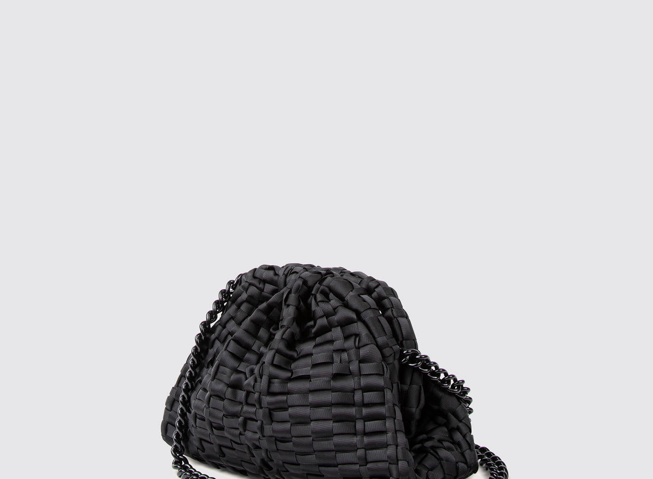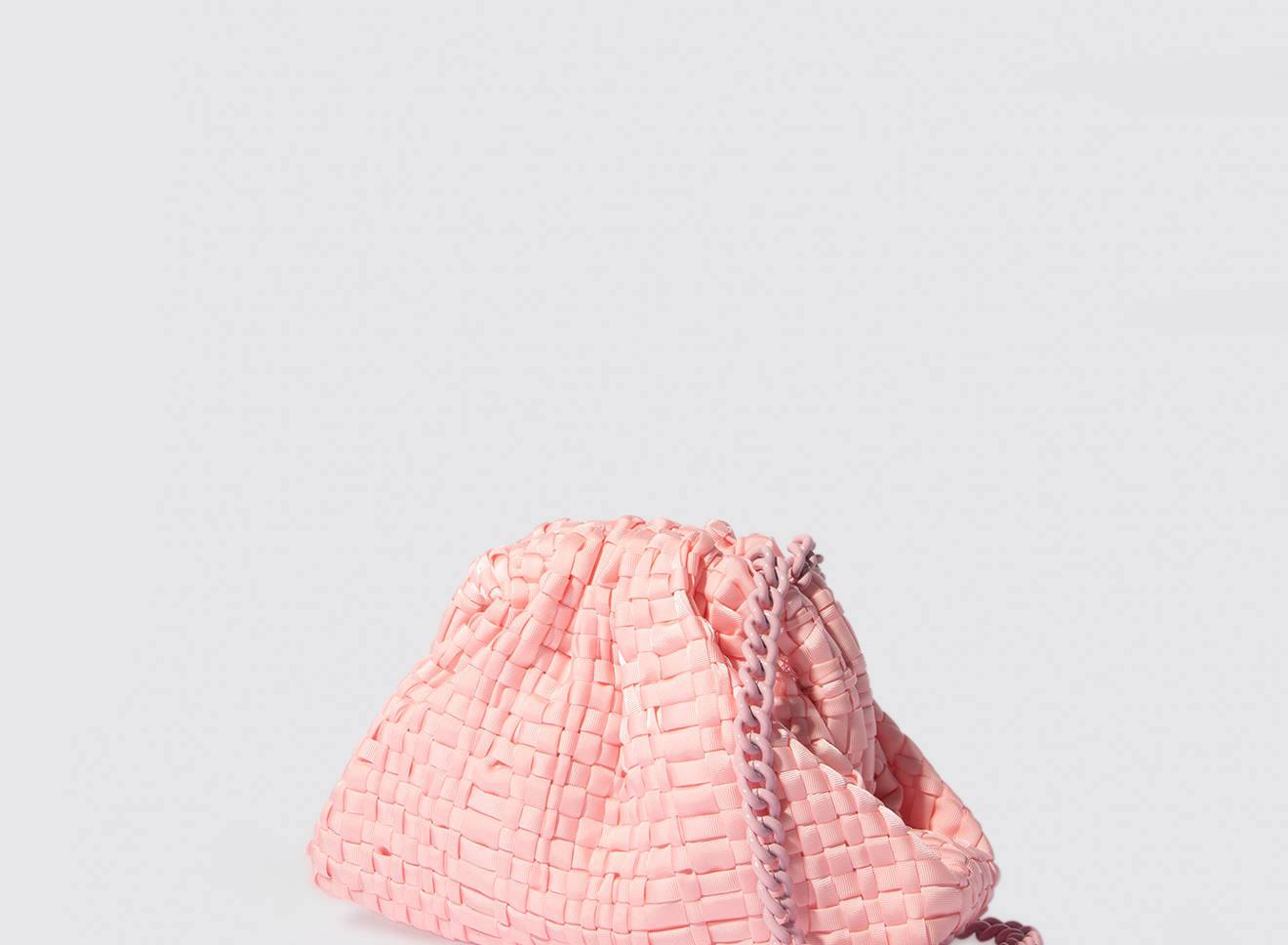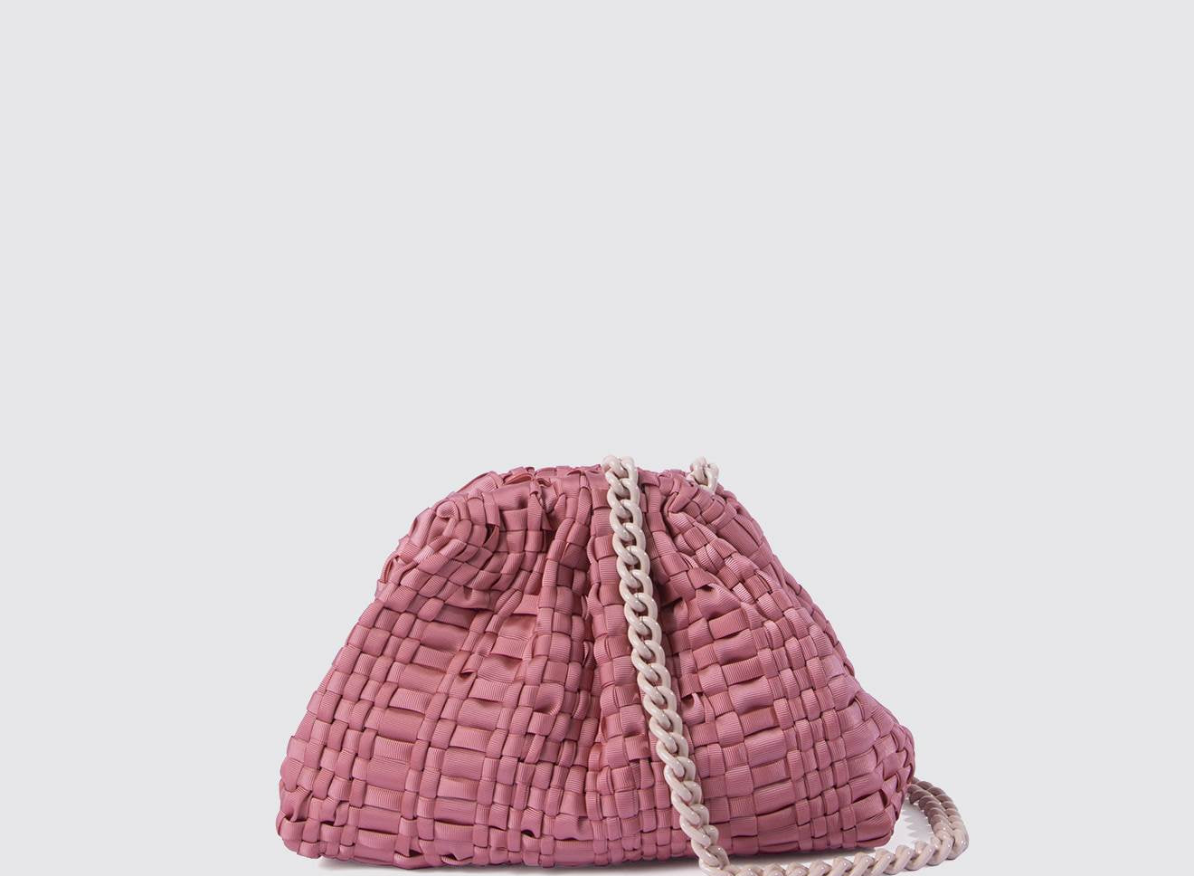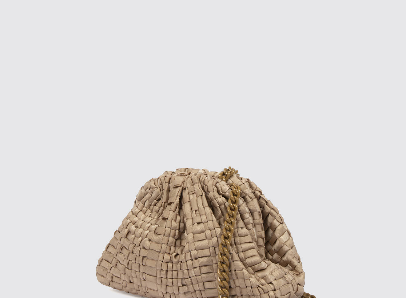 Small women's clutch in woven ribbon fabric, handmade on ancient looms. This unprecedented reduced version of the Maria La Rosa icon bag is roomy enough to carry the essentials with you. Perfect for all seasons, it is the emblem of a new metropolitan elegance. It is equipped with a ton sur ton chain to wear it even over the shoulder and there are many chromatic varieties to choose from: from natural to fluorescent shades, up to darker shades, such as forest green and black.