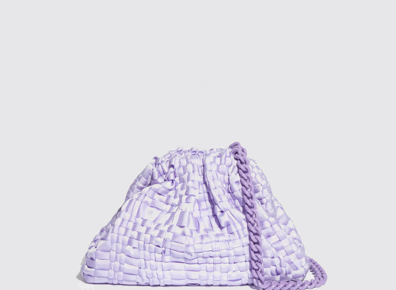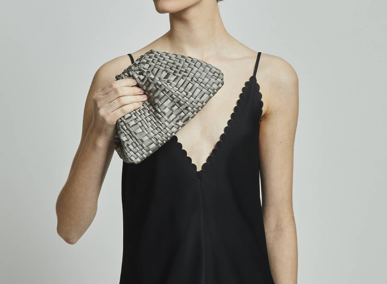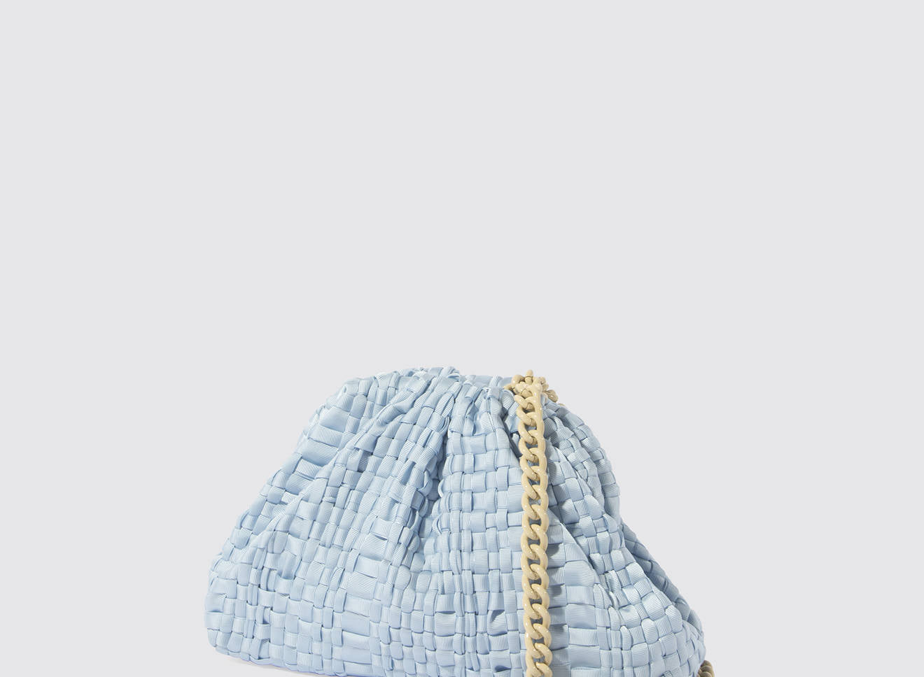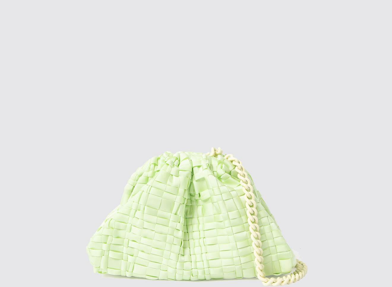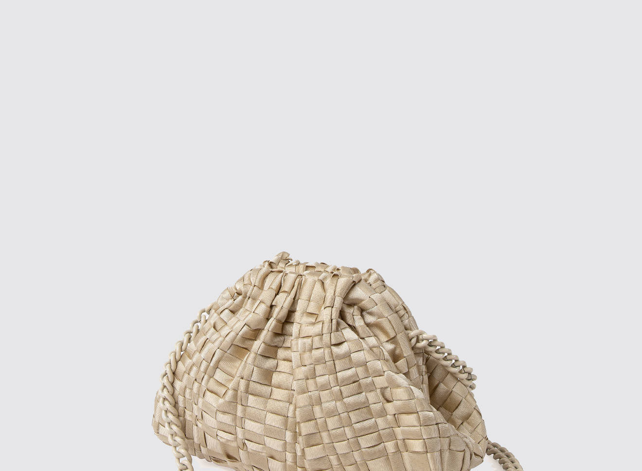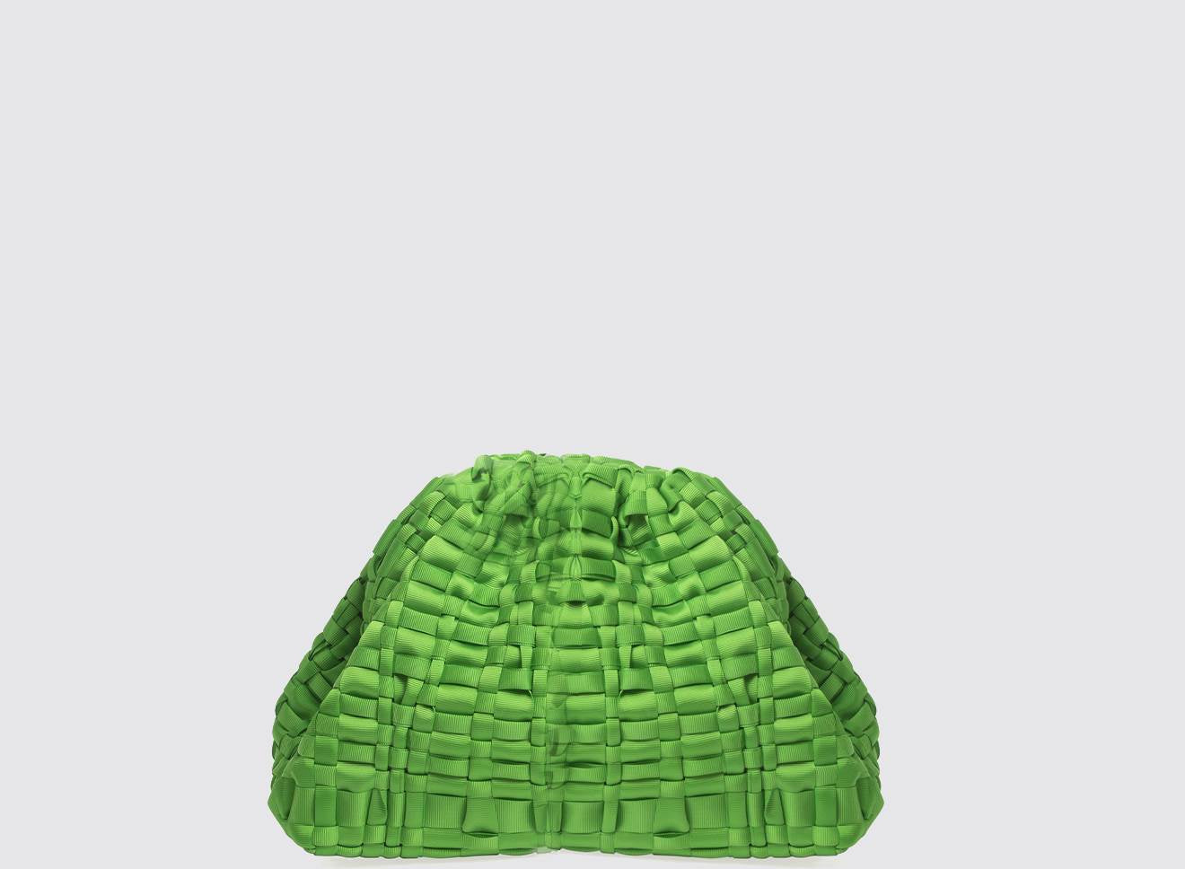 Small women's clutch in woven ribbon fabric, handmade on ancient looms. This unprecedented reduced version of the Maria La Rosa icon bag is roomy enough to carry the essentials with you. Perfect for all seasons, it is the emblem of a new metropolitan elegance. It is equipped with a ton sur ton chain to wear it even over the shoulder and there are many chromatic varieties to choose from: from natural to fluorescent shades, up to darker shades, such as forest green and black.
