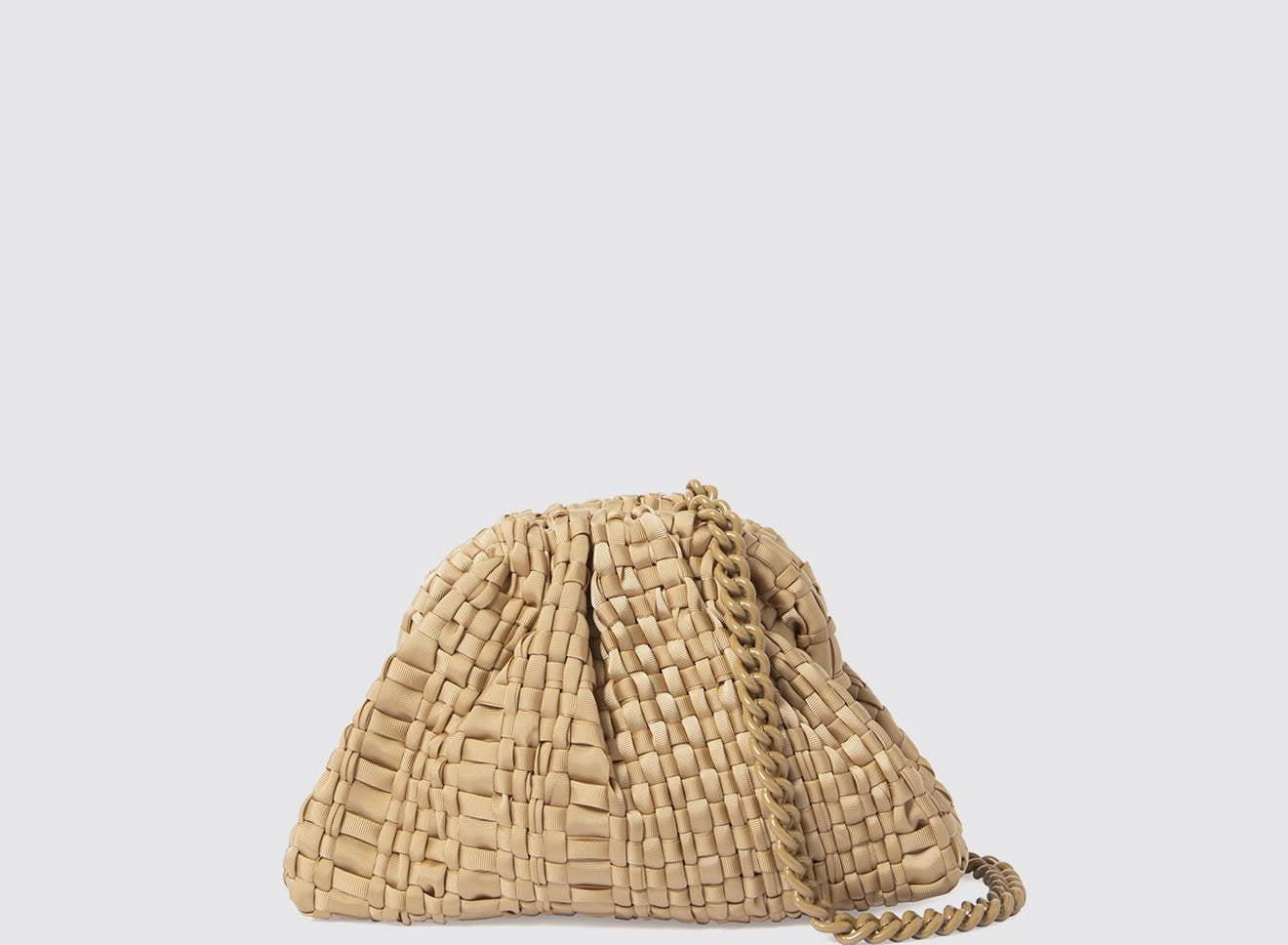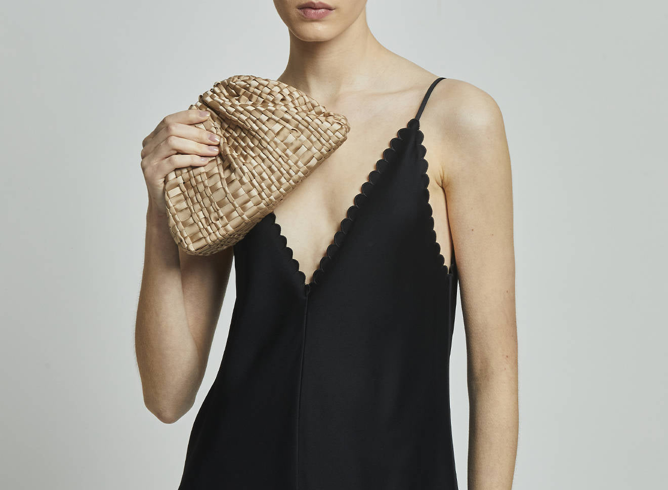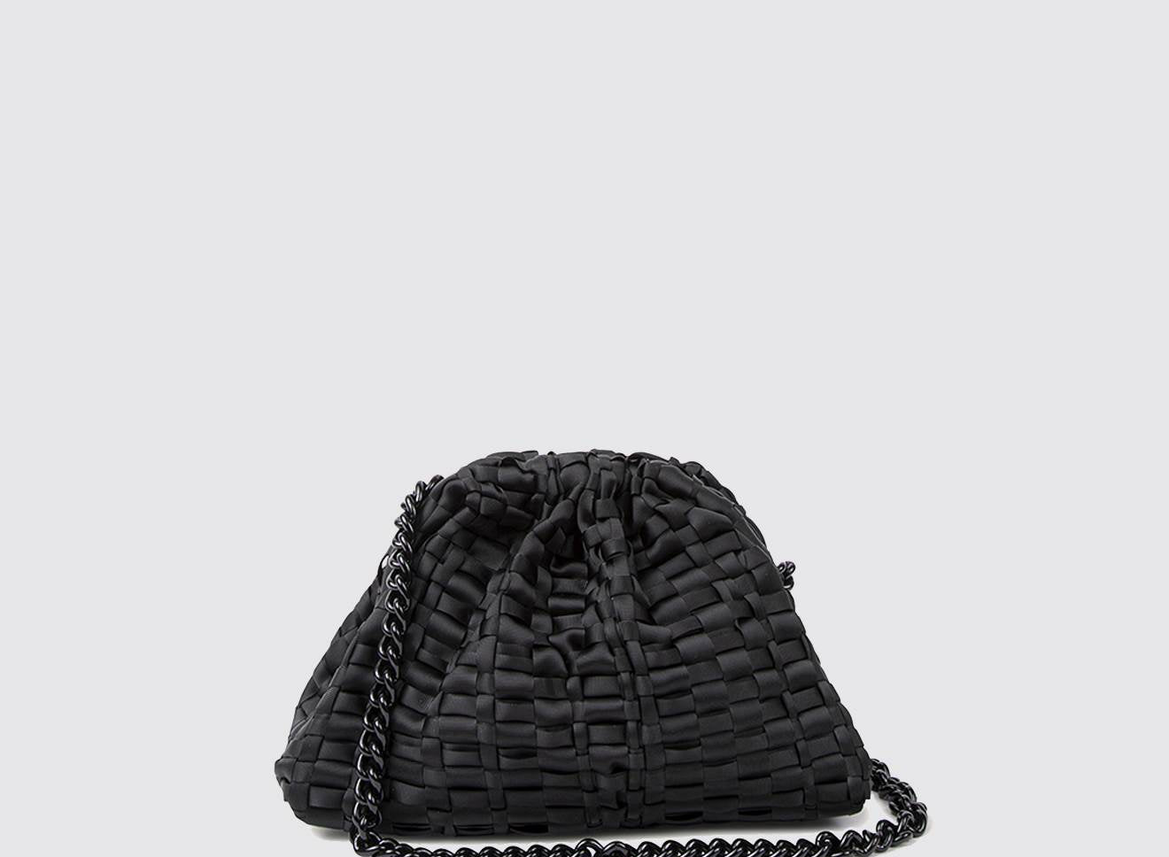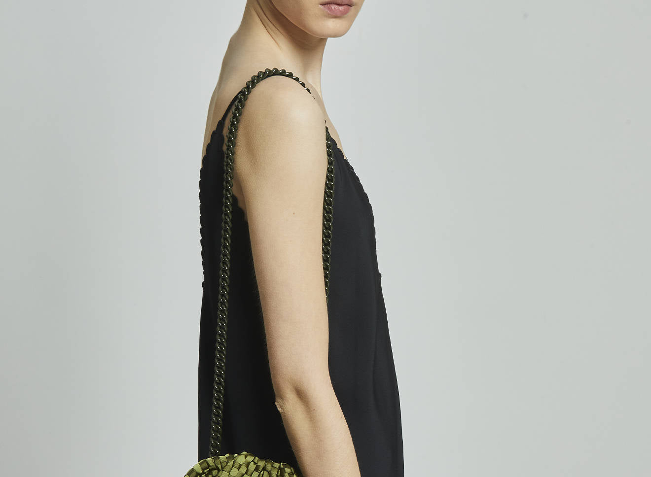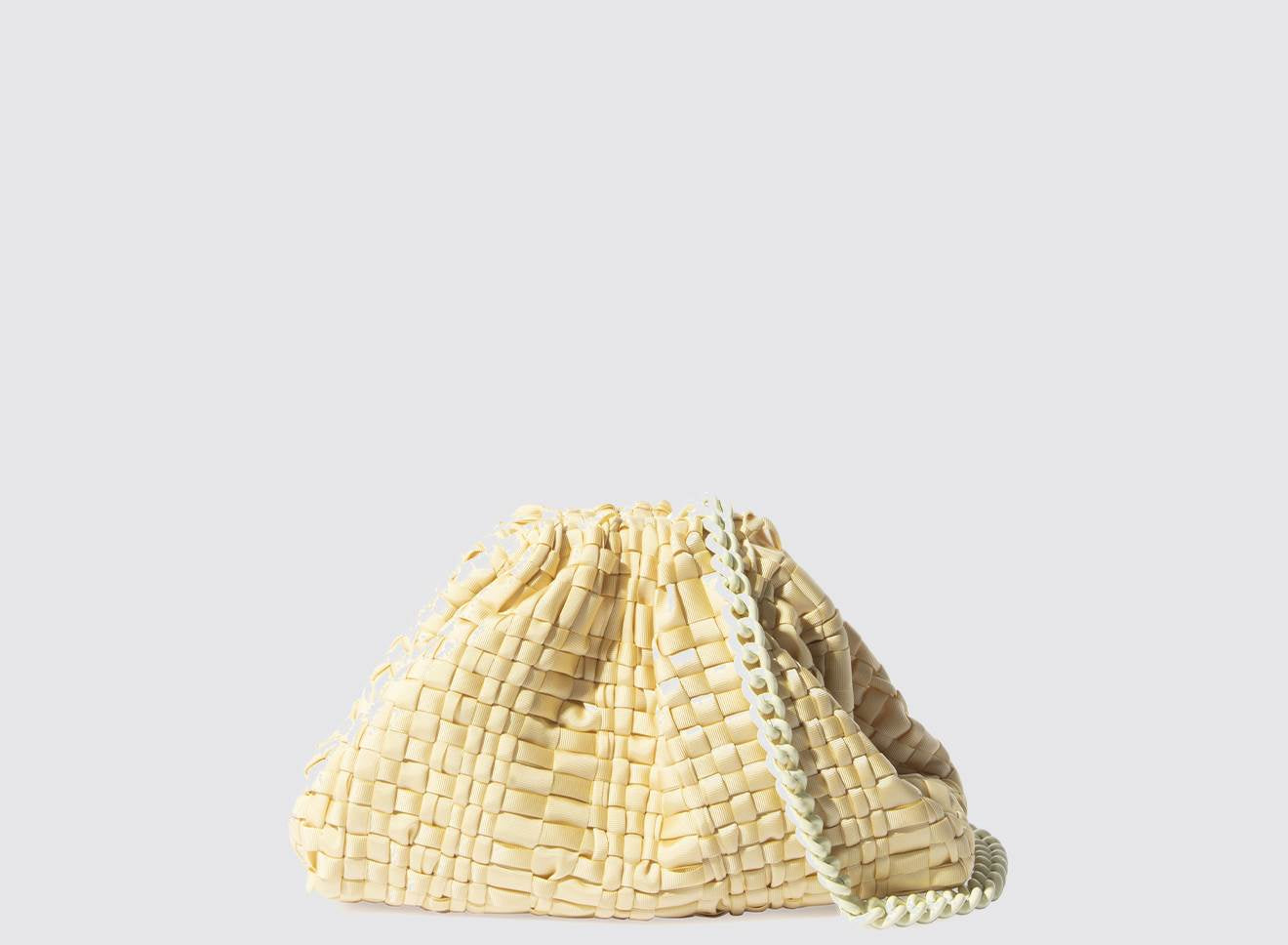 Small women's clutch in woven ribbon fabric, handmade on ancient looms. This unprecedented reduced version of the Maria La Rosa icon bag is roomy enough to carry the essentials with you. Perfect for all seasons, it is the emblem of a new metropolitan elegance. It is equipped with a ton sur ton chain to wear it even over the shoulder and there are many chromatic varieties to choose from: from natural to fluorescent shades, up to darker shades, such as forest green and black.