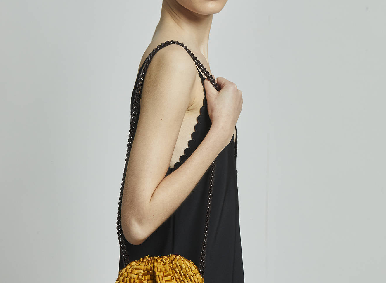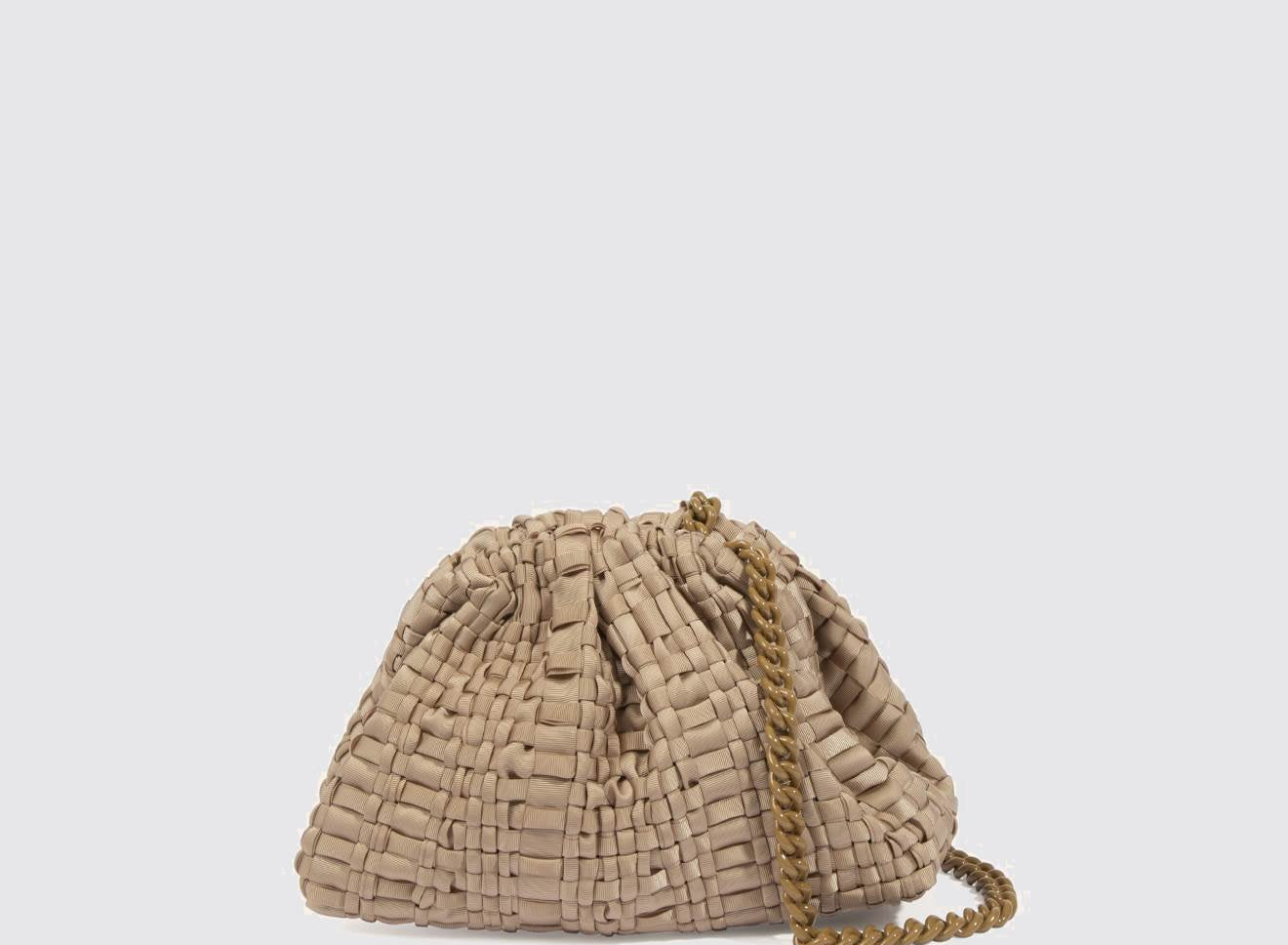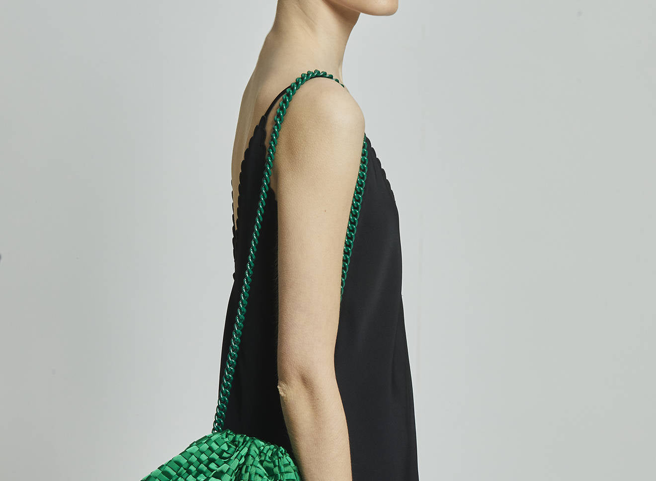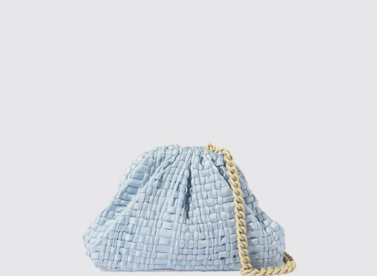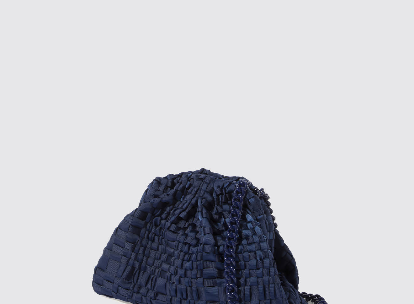 Small women's clutch in woven ribbon fabric, handmade on ancient looms. This unprecedented reduced version of the Maria La Rosa icon bag is roomy enough to carry the essentials with you. Perfect for all seasons, it is the emblem of a new metropolitan elegance. It is equipped with a ton sur ton chain to wear it even over the shoulder and there are many chromatic varieties to choose from: from natural to fluorescent shades, up to darker shades, such as forest green and black.