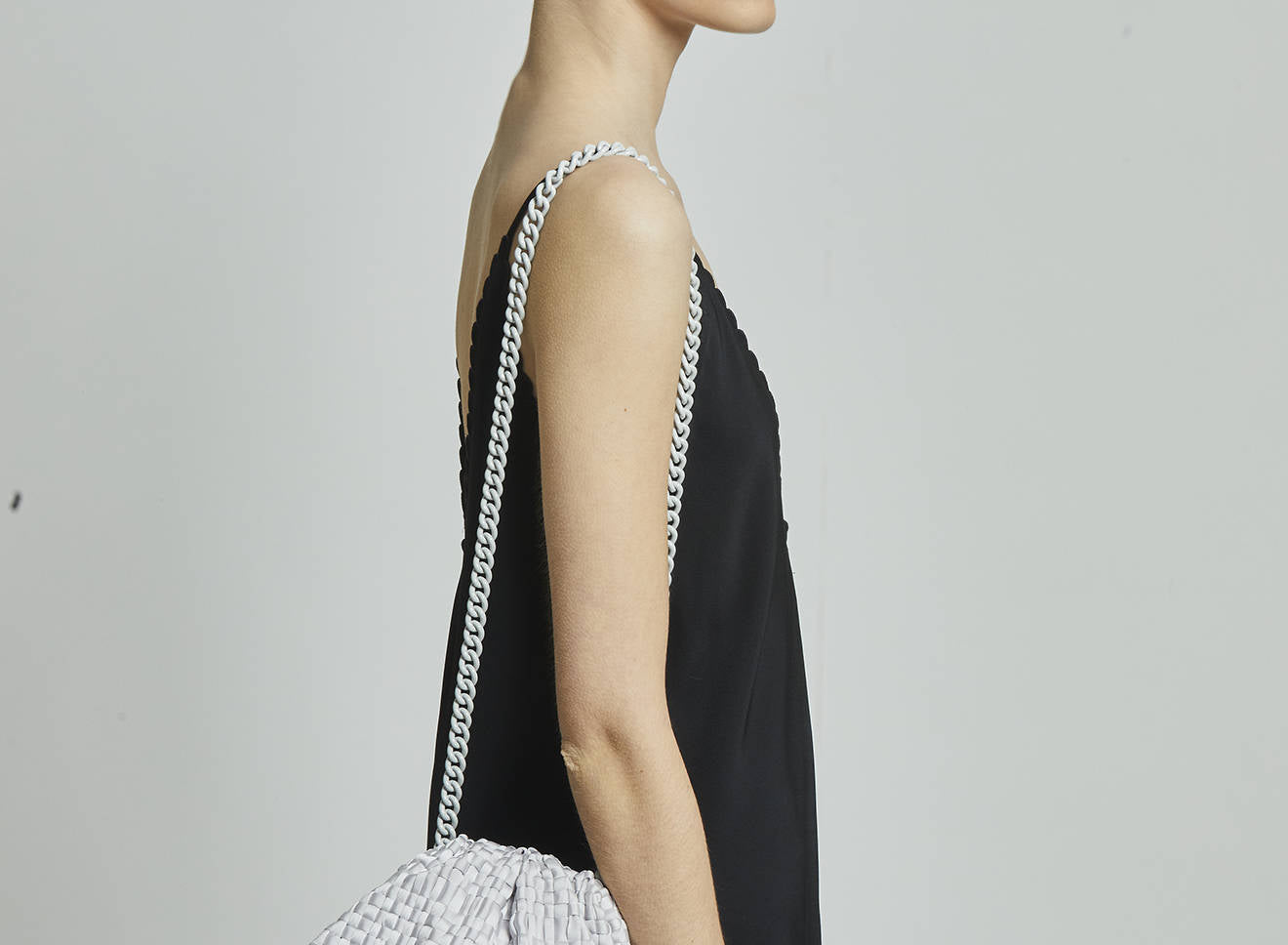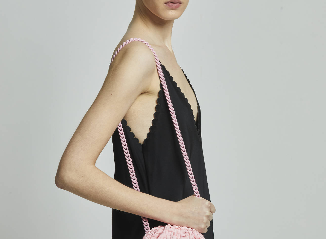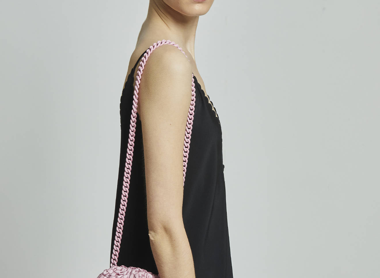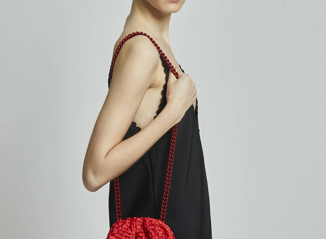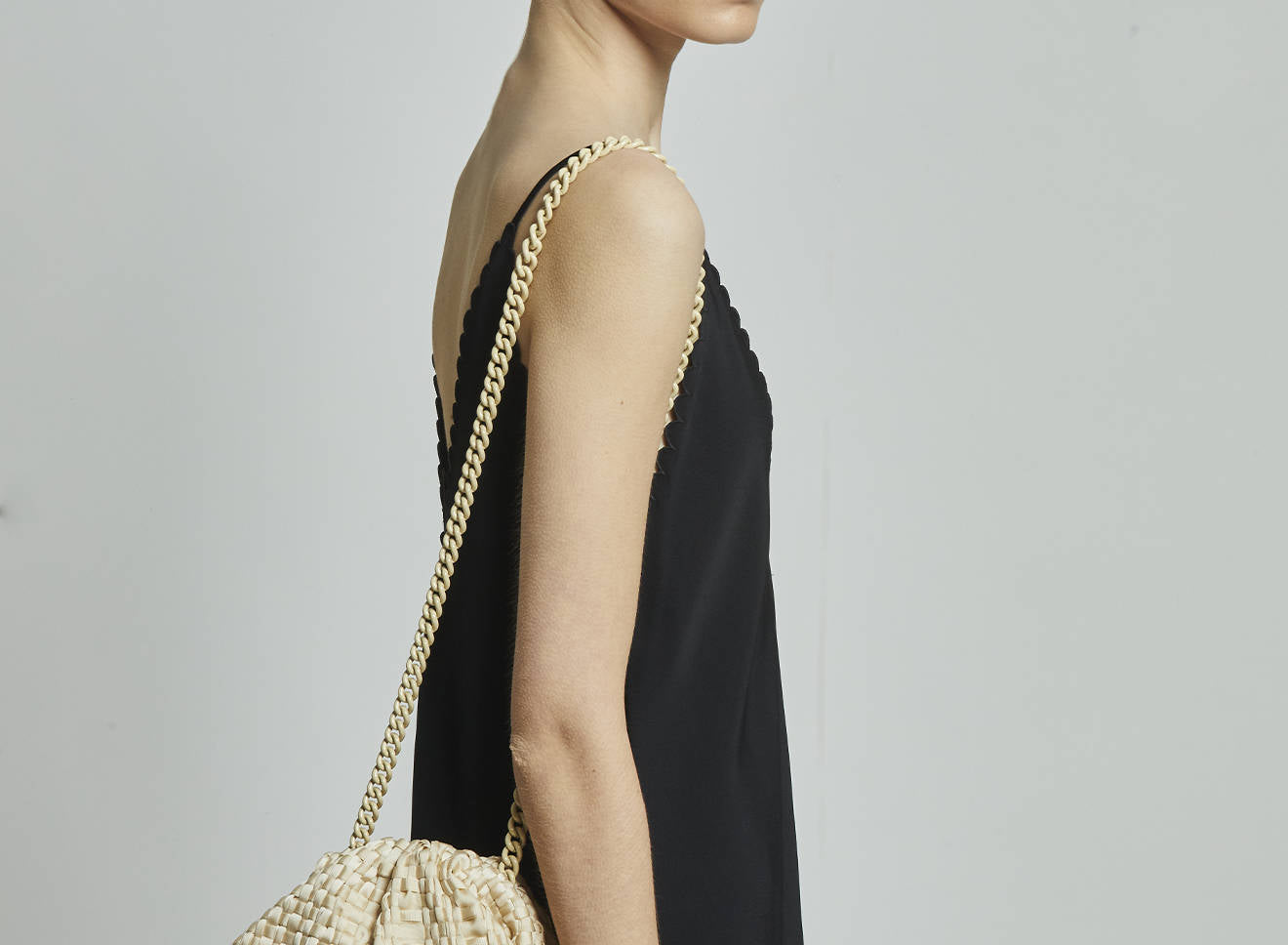 Small women's clutch in woven ribbon fabric, handmade on ancient looms. This unprecedented reduced version of the Maria La Rosa icon bag is roomy enough to carry the essentials with you. Perfect for all seasons, it is the emblem of a new metropolitan elegance. It is equipped with a ton sur ton chain to wear it even over the shoulder and there are many chromatic varieties to choose from: from natural to fluorescent shades, up to darker shades, such as forest green and black.