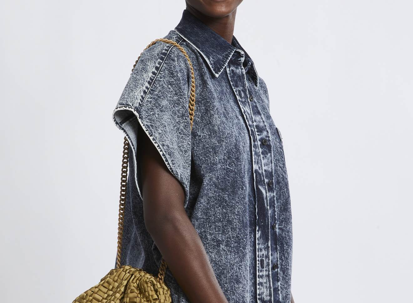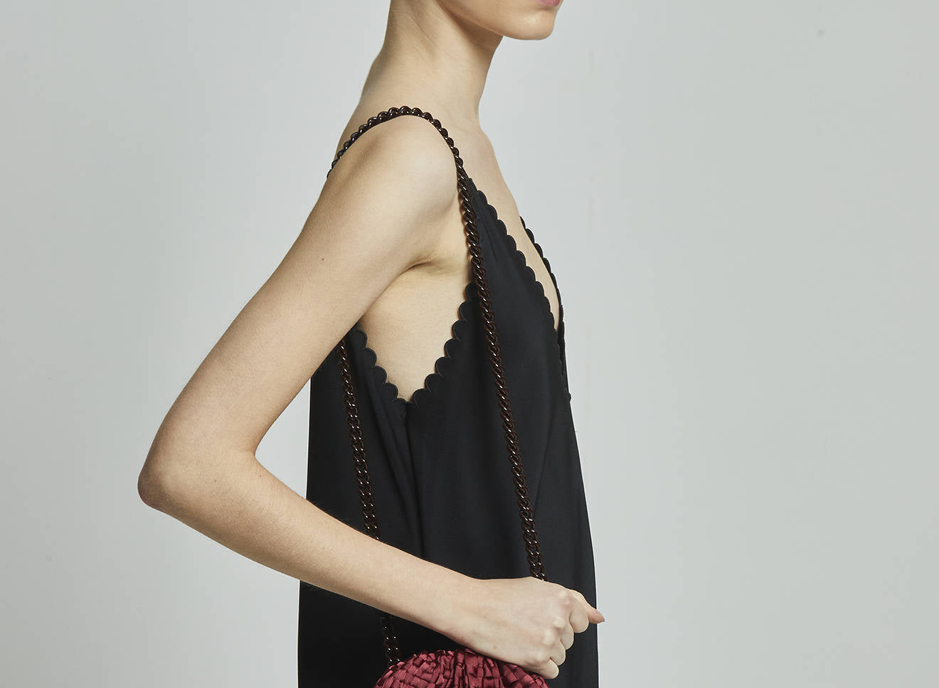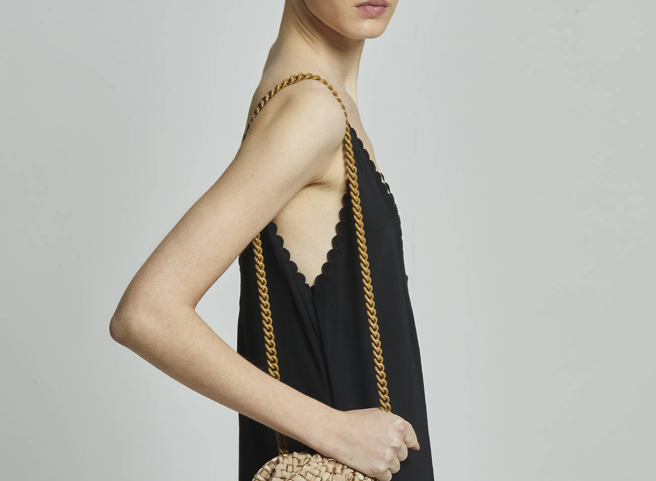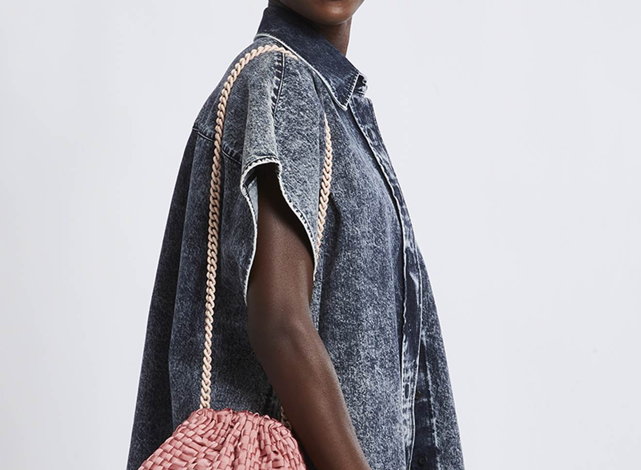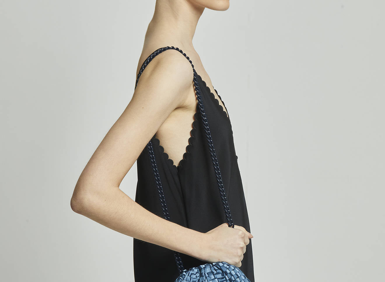 Small women's clutch in woven ribbon fabric, handmade on ancient looms. This unprecedented reduced version of the Maria La Rosa icon bag is roomy enough to carry the essentials with you. Perfect for all seasons, it is the emblem of a new metropolitan elegance. It is equipped with a ton sur ton chain to wear it even over the shoulder and there are many chromatic varieties to choose from: from natural to fluorescent shades, up to darker shades, such as forest green and black.