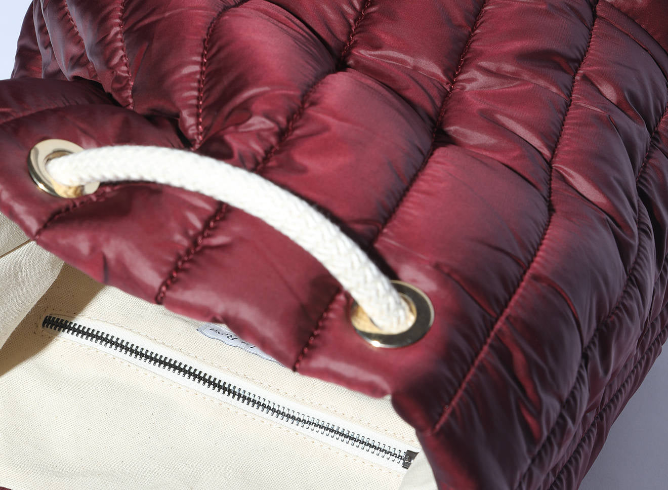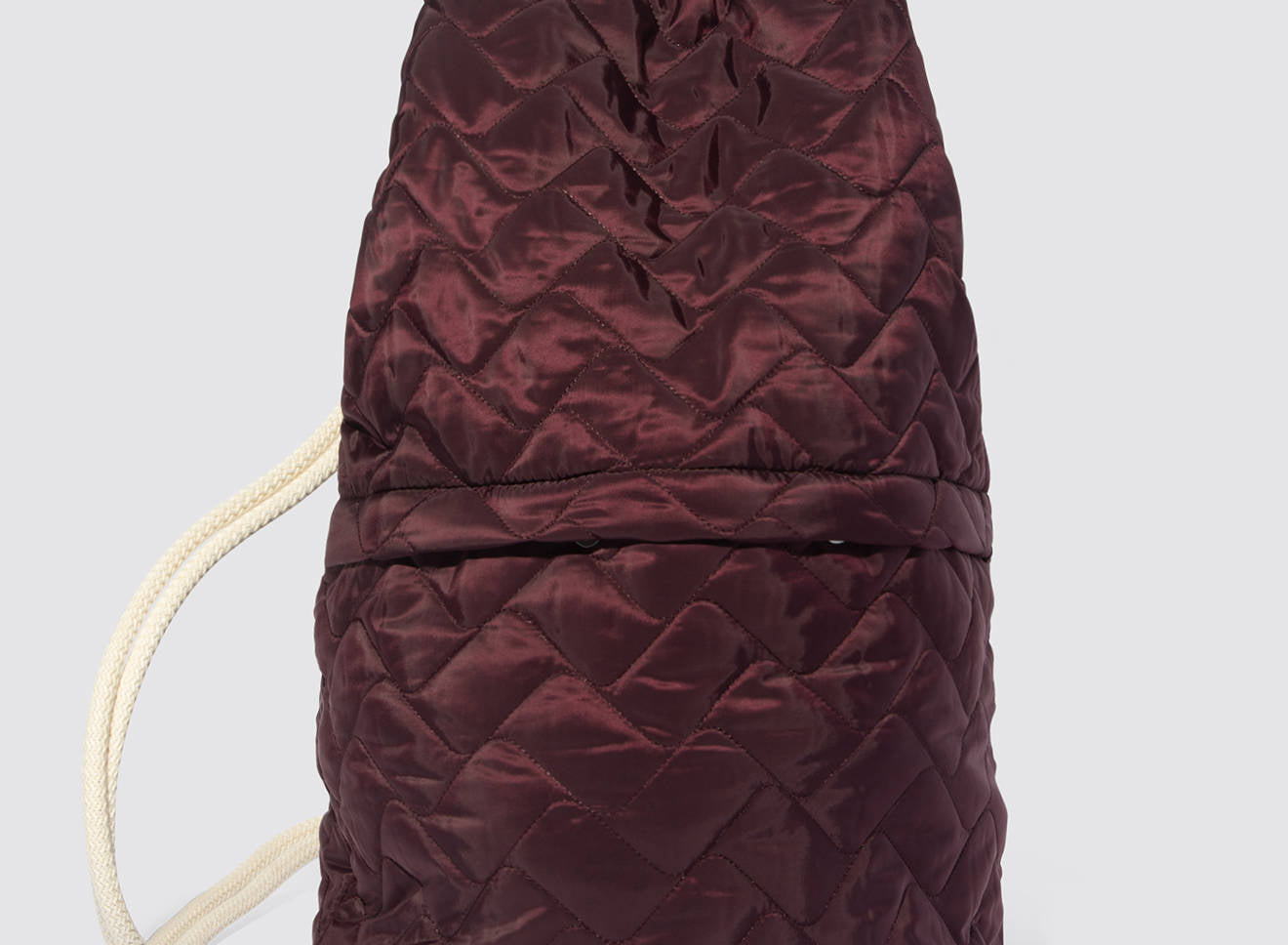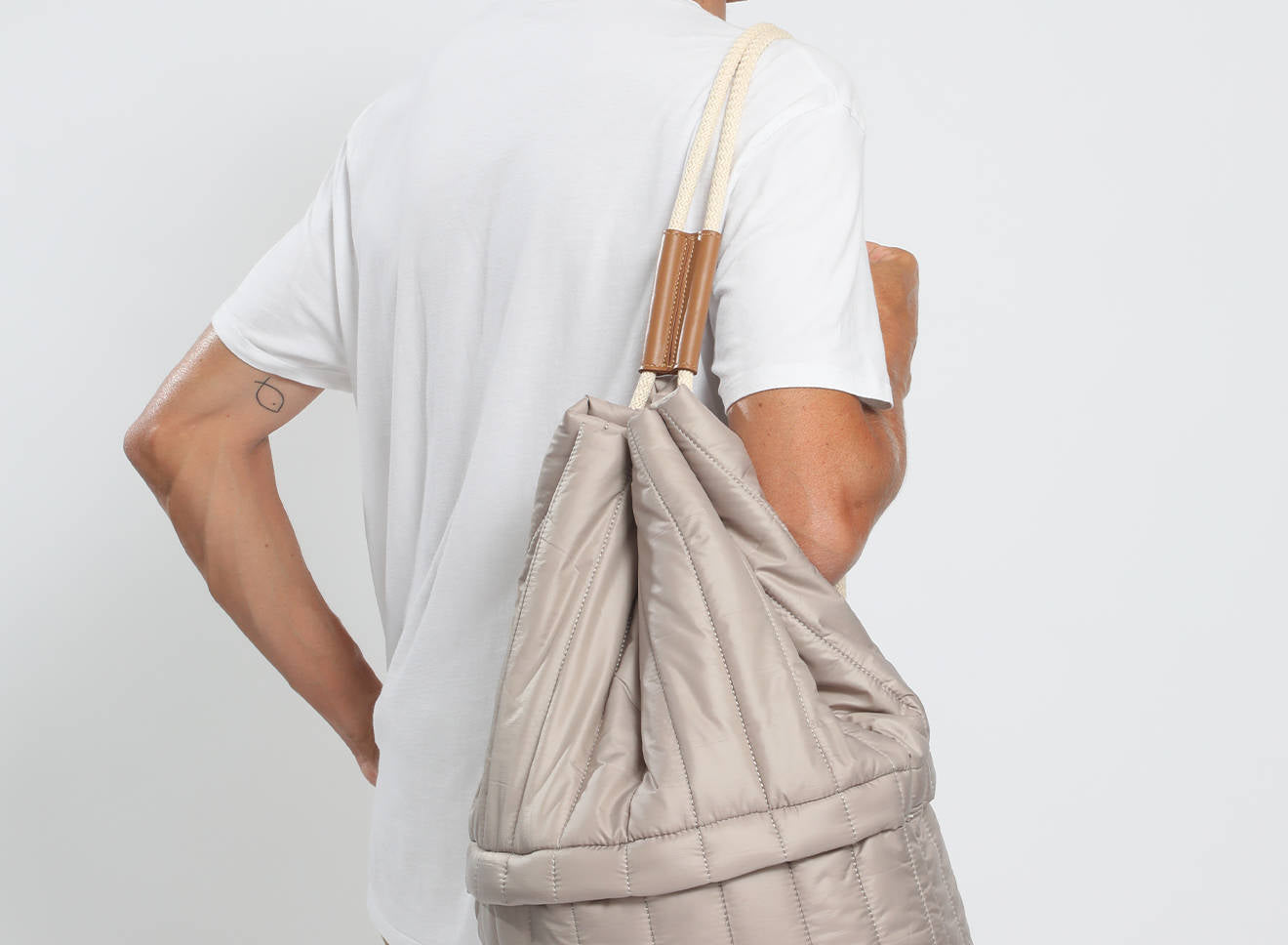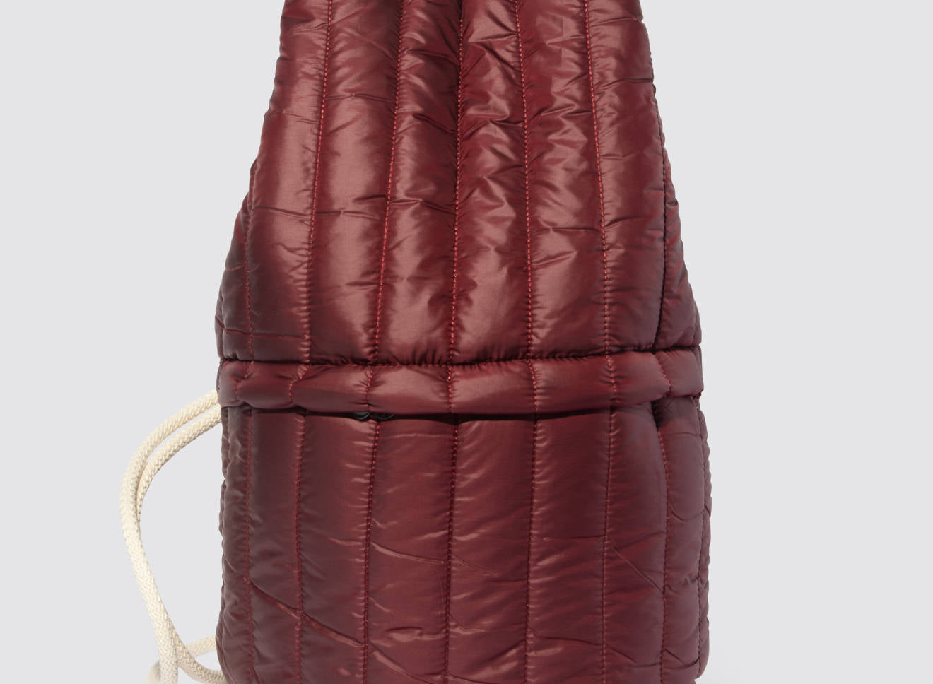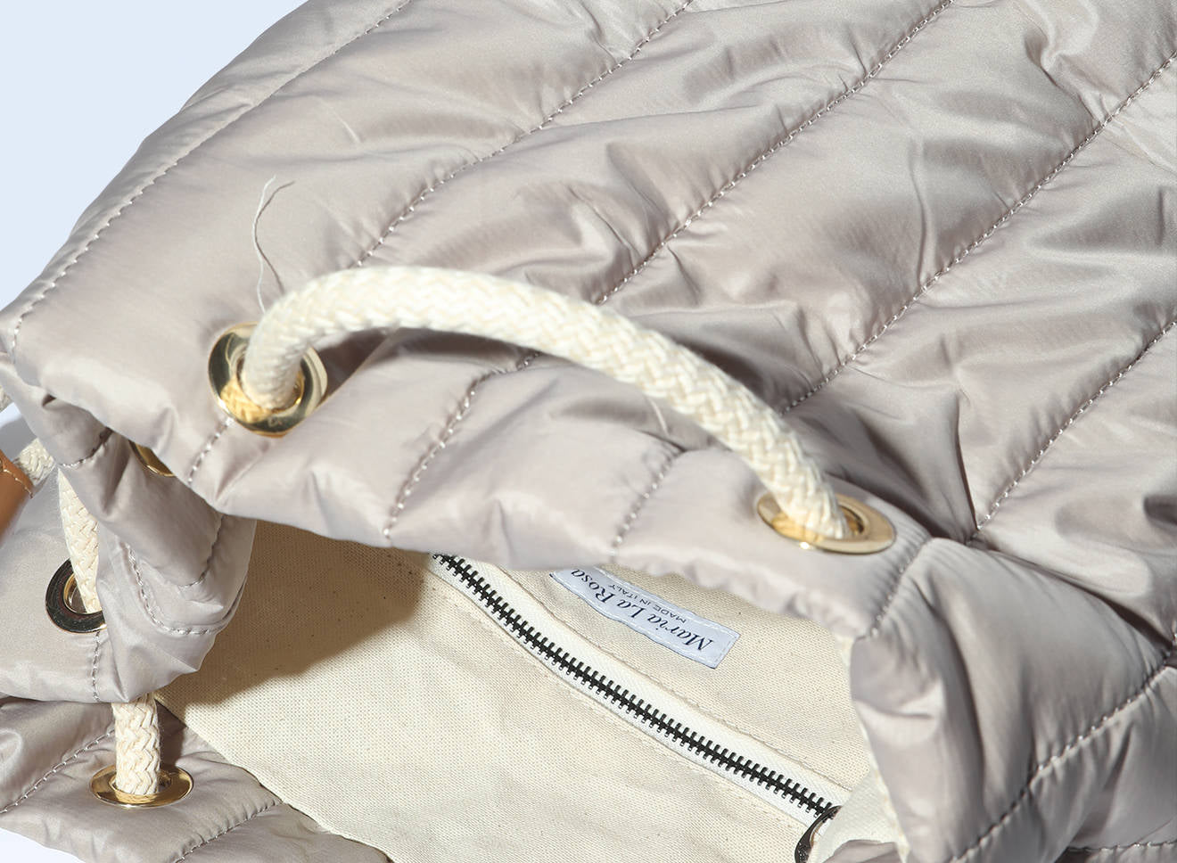 The padding and quilted texture evoke the outdoor world, while natural rope details and faux leather inserts add a refined touch. The drawstring closure and spacious interior make it practical for everyday life—perfect for tackling the city with style and ease. Entirely designed and made in Italy.