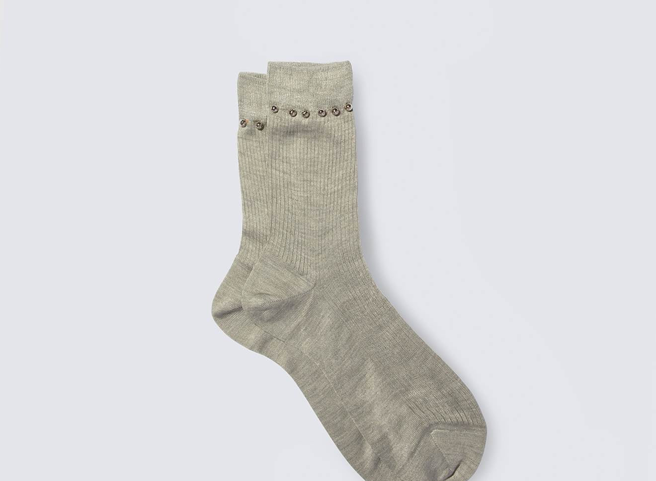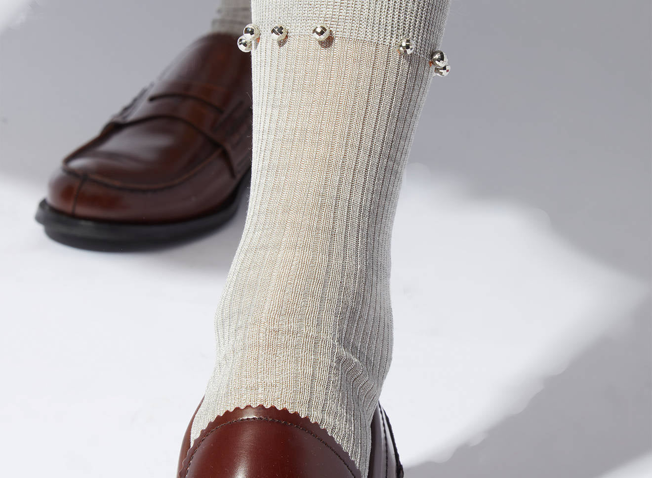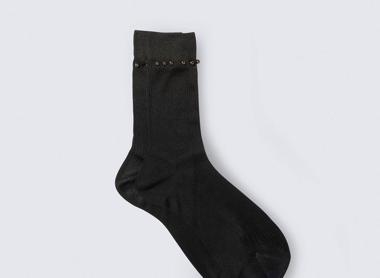 A touch of artisanal elegance in every step. These refined silk socks stand out for their soft, delicate texture, enriched with entirely hand-embroidered detailing. The subtle embellishments add brightness and sophistication, making them perfect for adding a precious accent to any look.