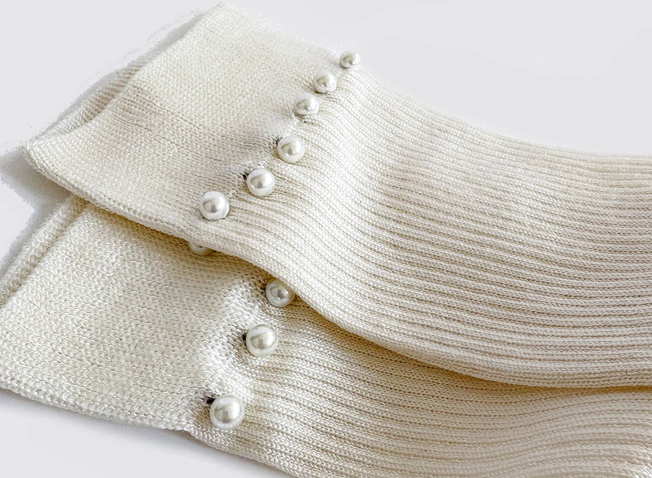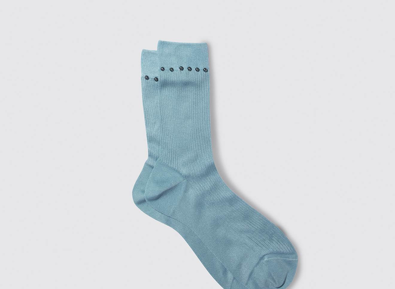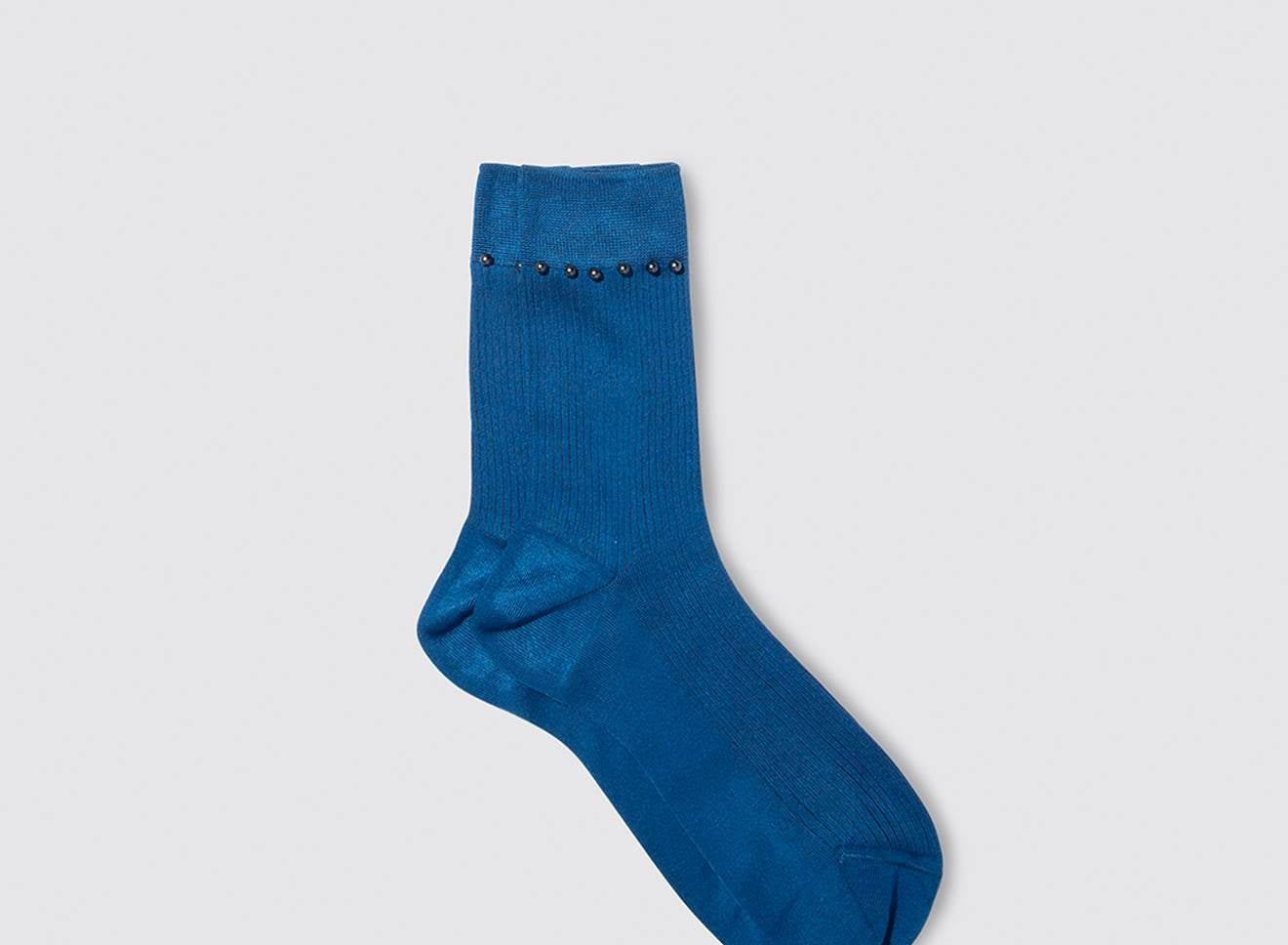 A touch of artisanal elegance in every step. These refined silk socks stand out for their soft, delicate texture, enriched with entirely hand-embroidered detailing. The subtle embellishments add brightness and sophistication, making them perfect for adding a precious accent to any look.
