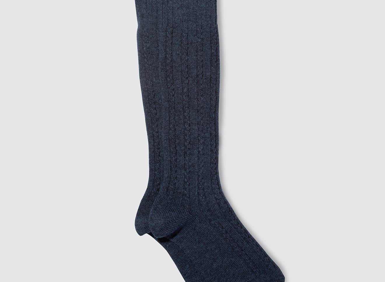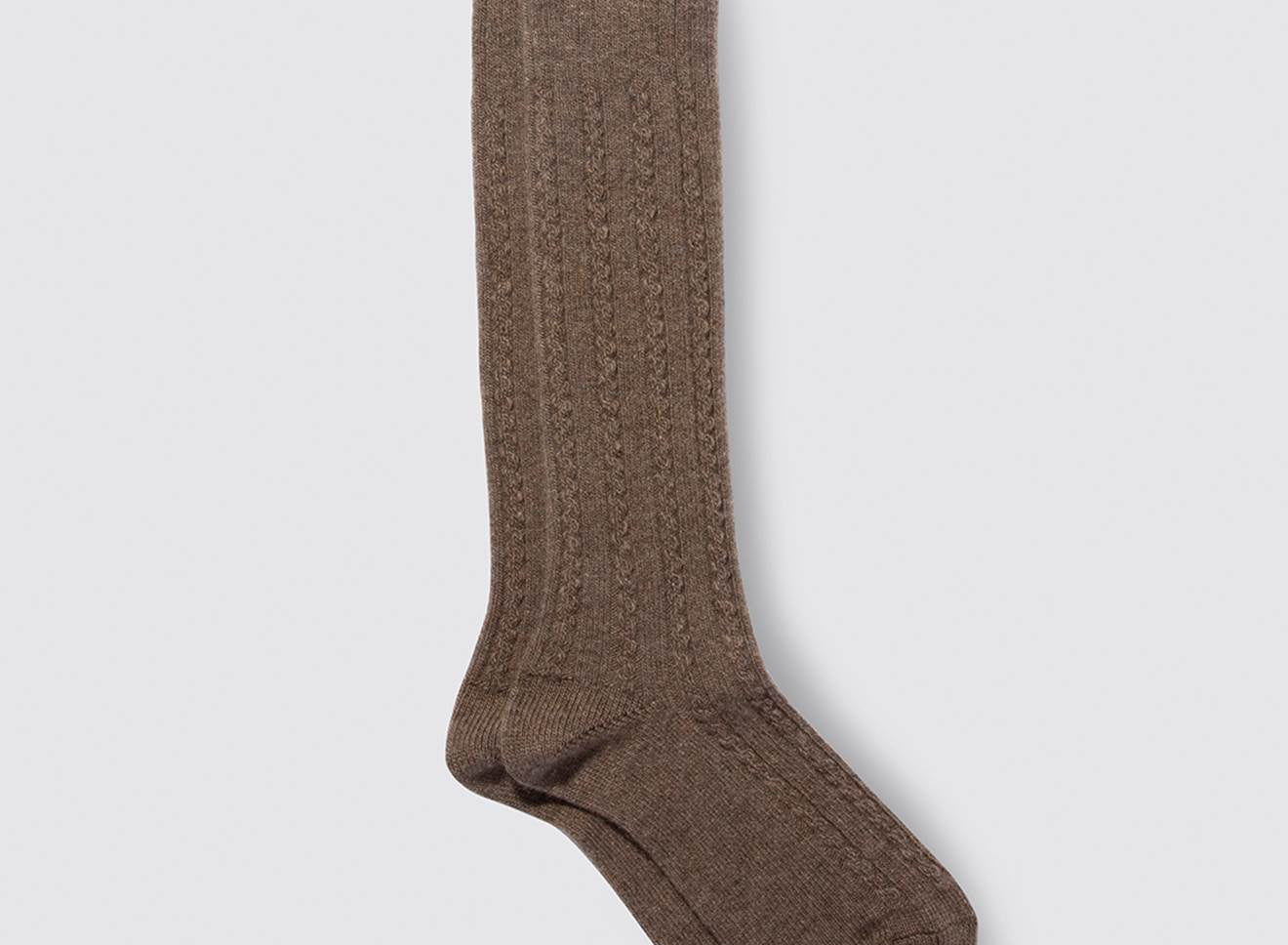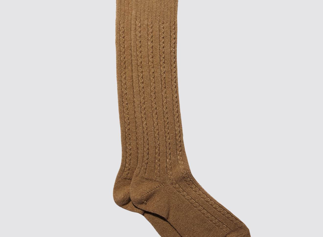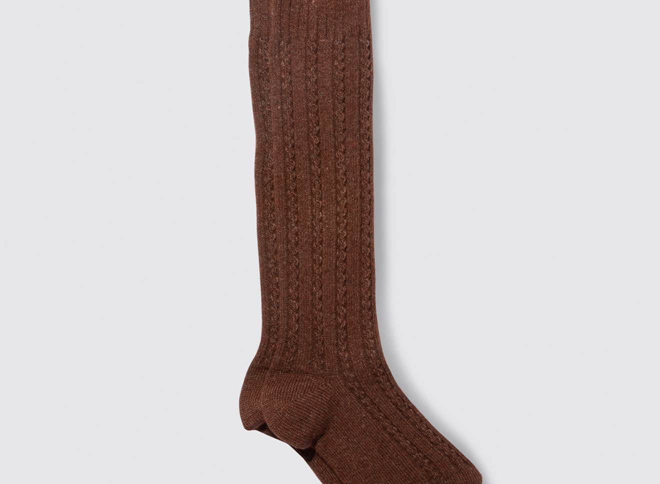 Merino wool knee-highs. The vertical ribbing with delicate openwork patterns elongates the leg and evokes a timeless aesthetic, blending retro style with contemporary sensibility. The hand is soft and comfortable, ideal for all-day wear. A simple yet distinctive accessory that celebrates traditional Italian manufacturing and attention to detail.