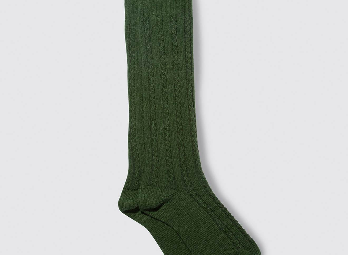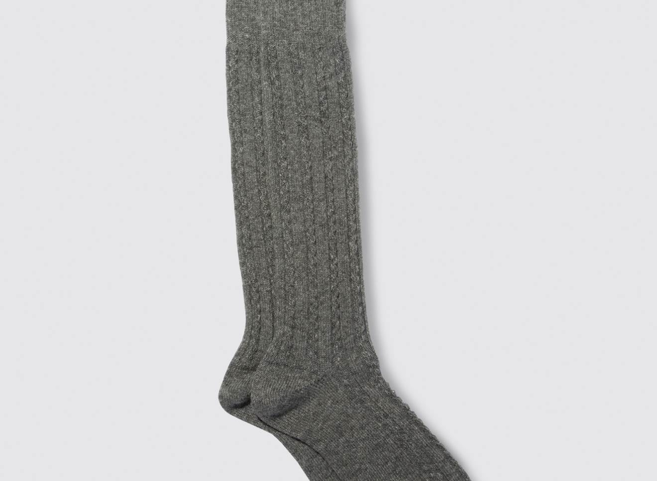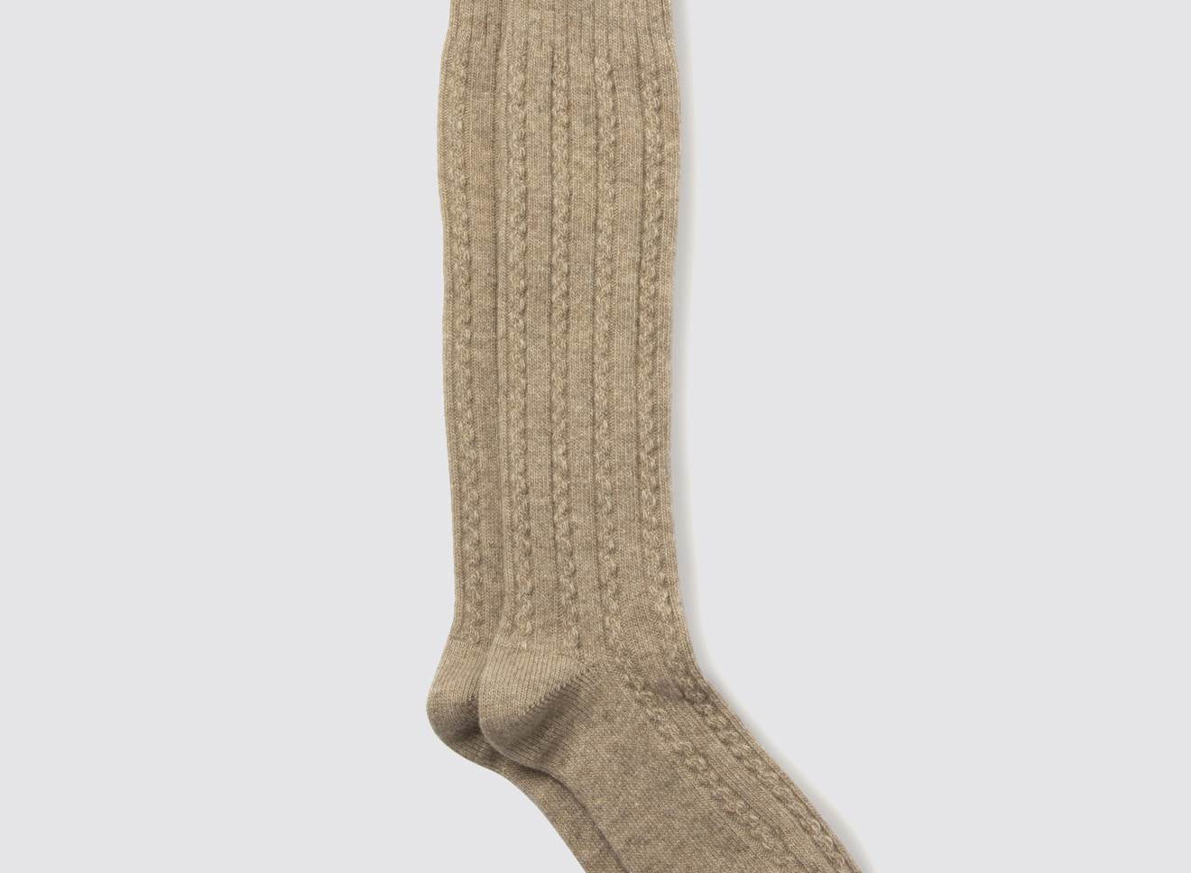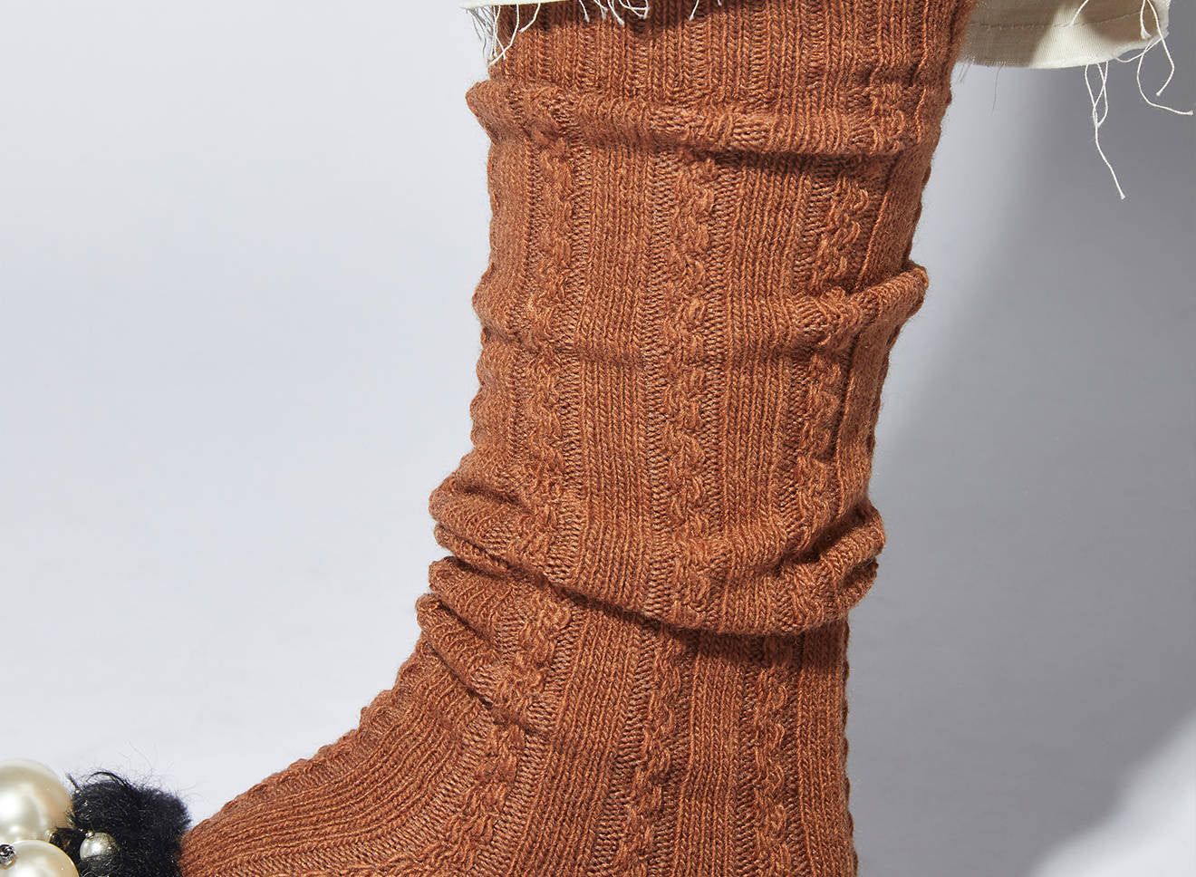 Merino wool knee-highs. The vertical ribbing with delicate openwork patterns elongates the leg and evokes a timeless aesthetic, blending retro style with contemporary sensibility. The hand is soft and comfortable, ideal for all-day wear. A simple yet distinctive accessory that celebrates traditional Italian manufacturing and attention to detail.