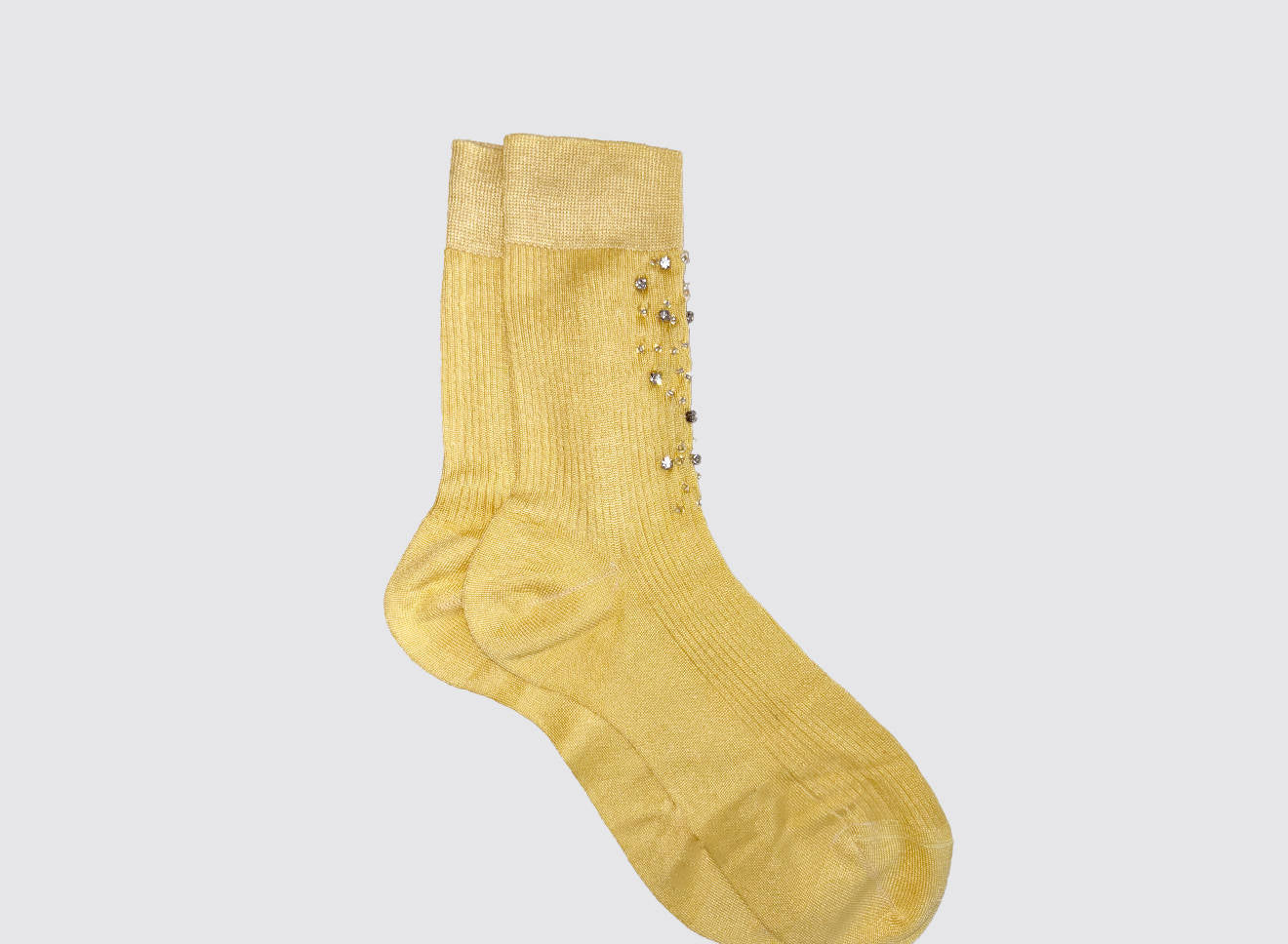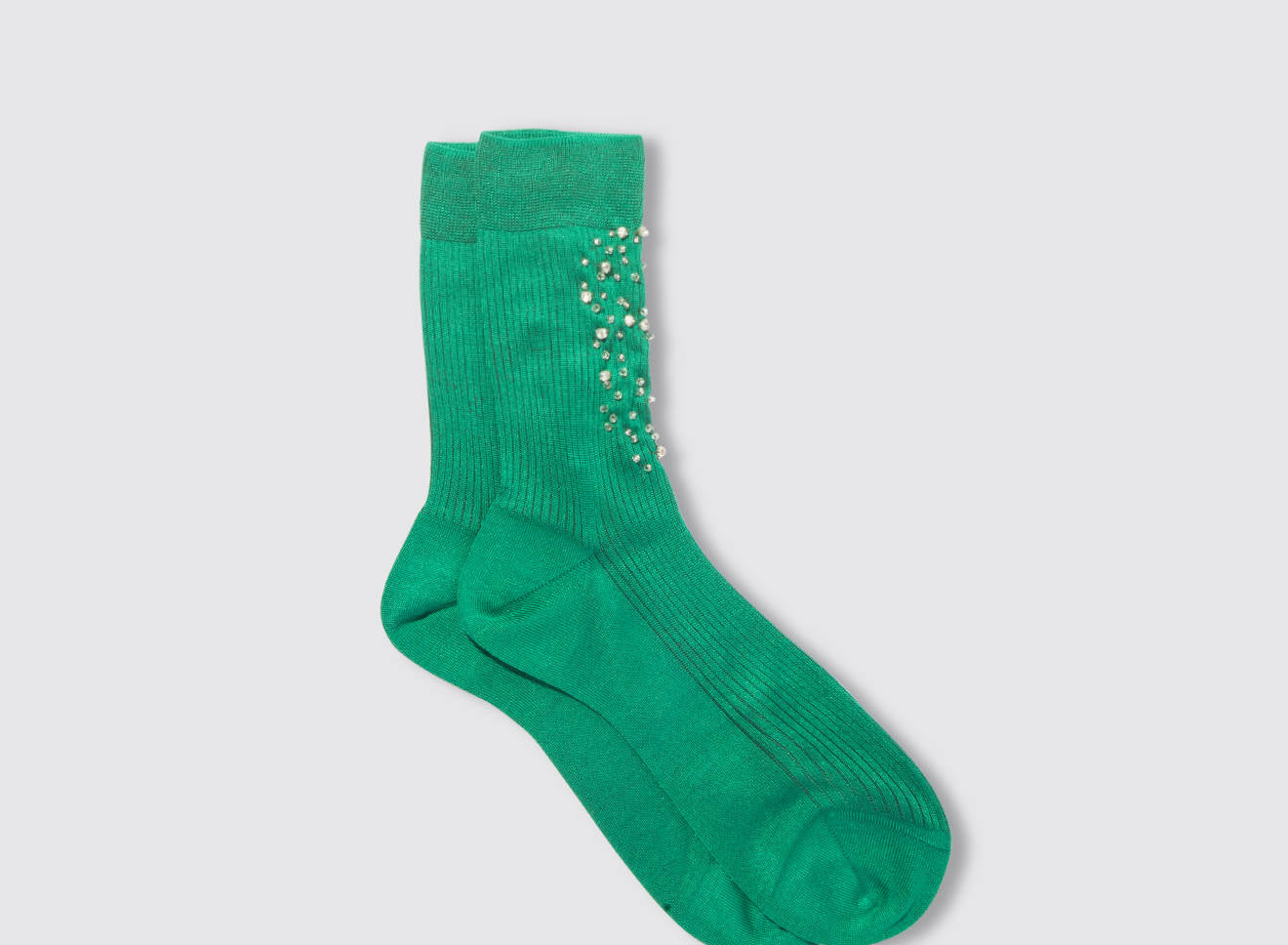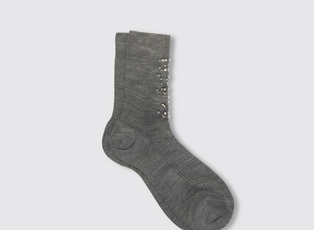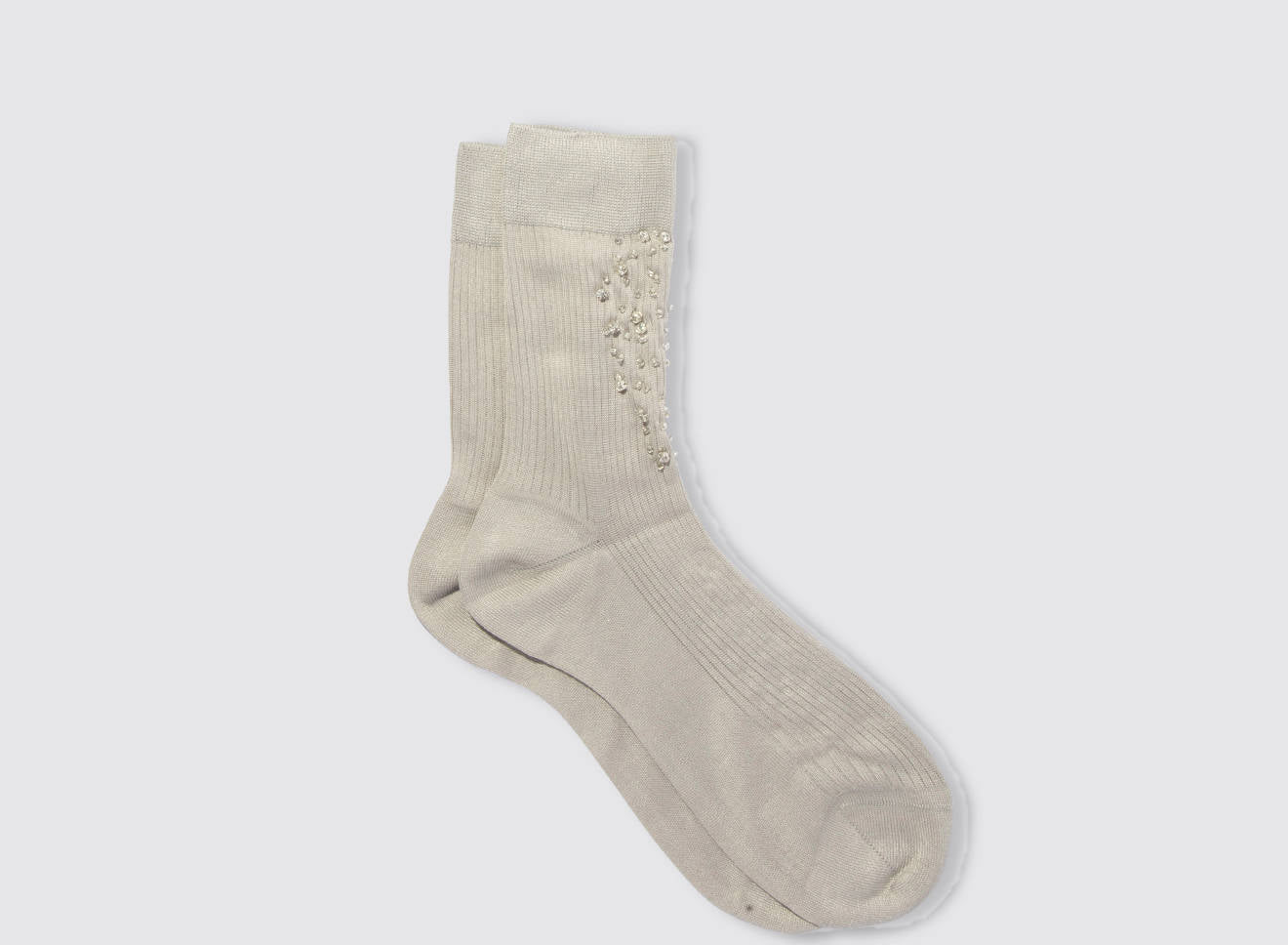 A touch of artisanal elegance for every step. These fine silk socks stand out for their fine and comfortable texture, enhanced by hand-embroidered detailing. The delicate appliqués add sparkle and sophistication, making them perfect for adding a precious detail to any look.