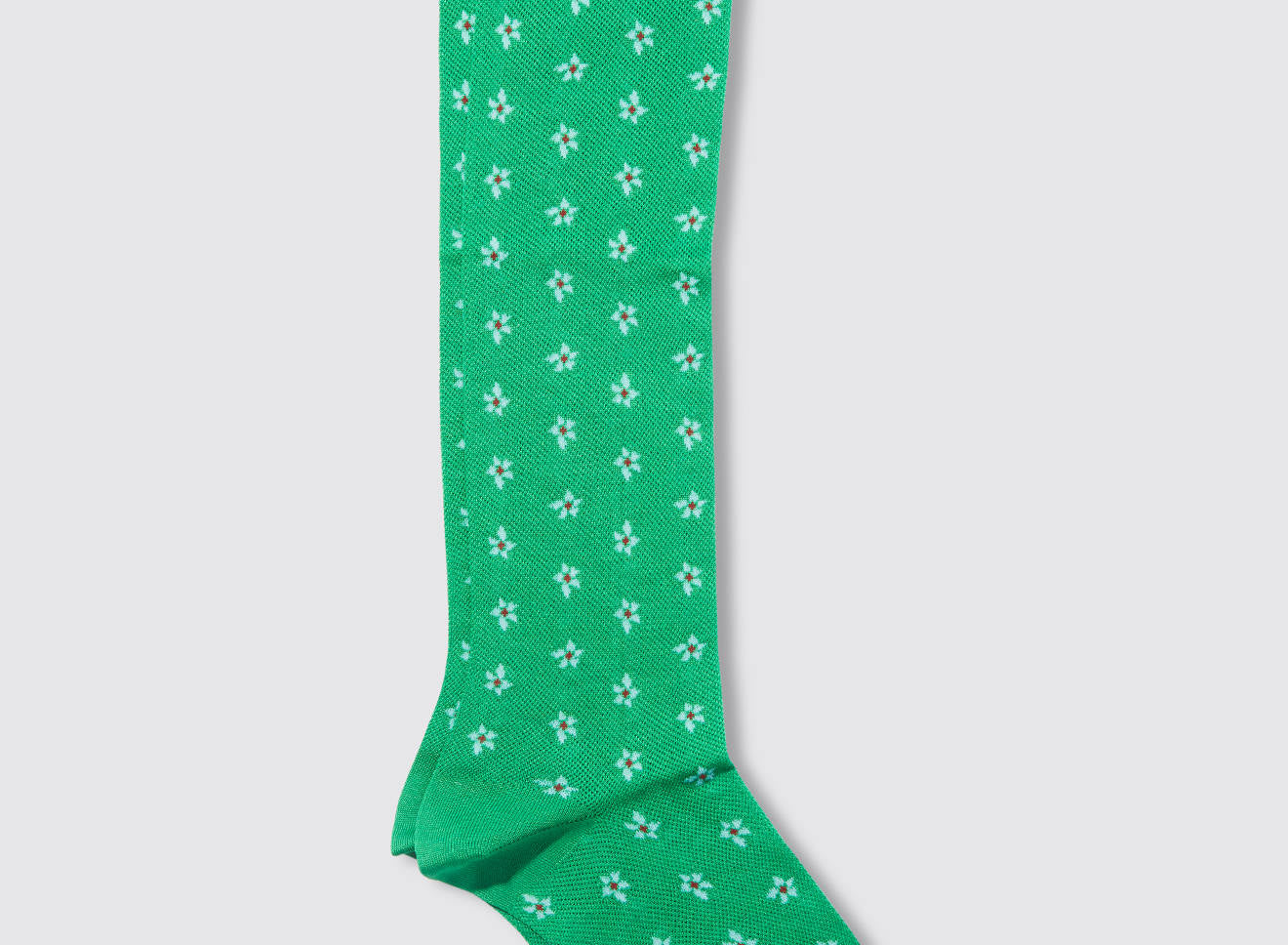 Women's cotton knee-high socks with a delicate floral pattern. They offer resistance and delicacy at the same time.