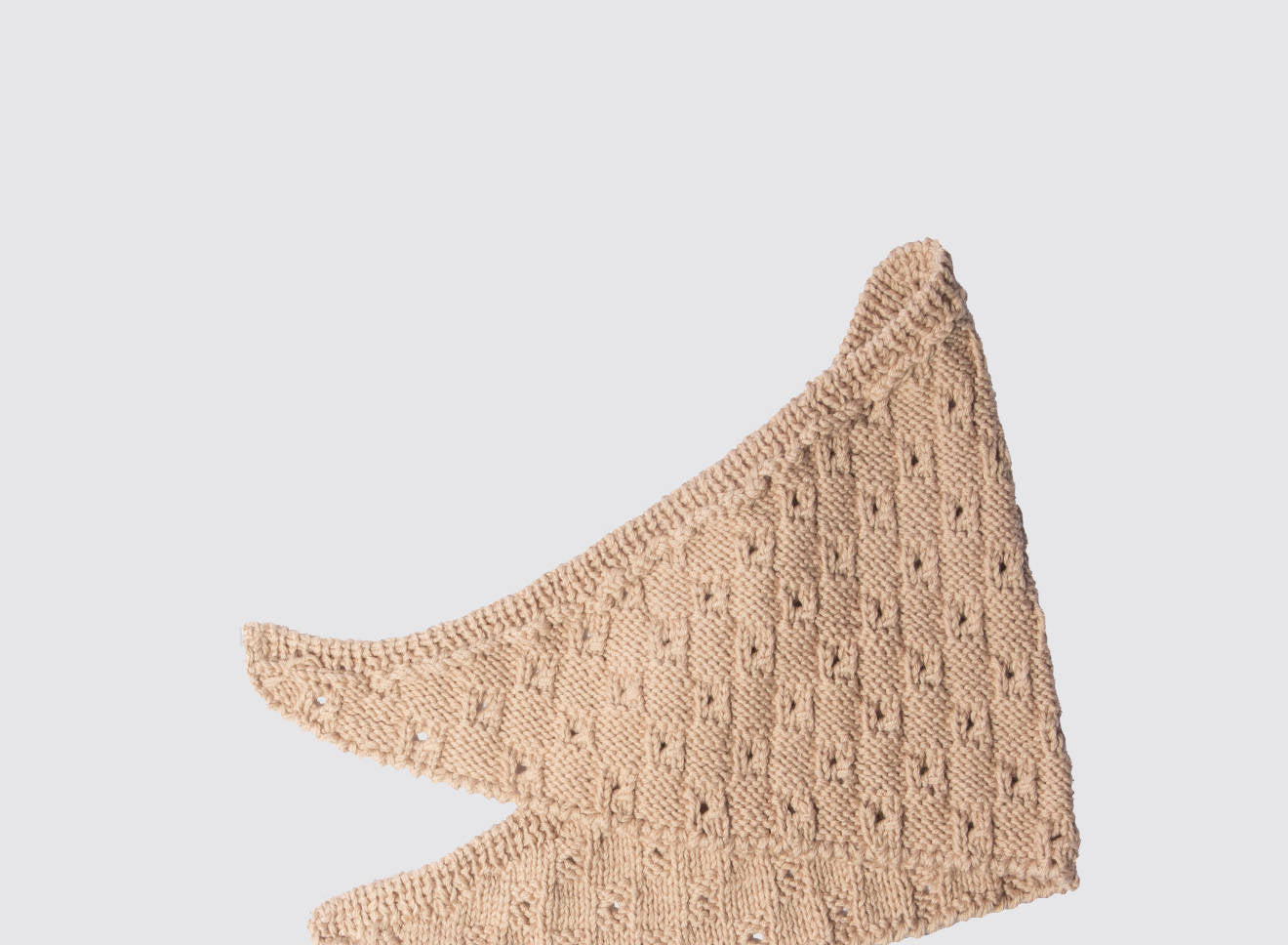Bandana interamente realizzata a mano con tecniche di lavorazione a maglia tradizionali.
