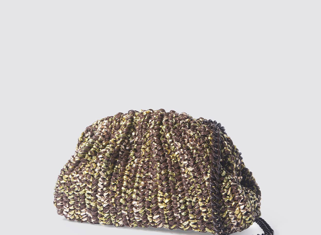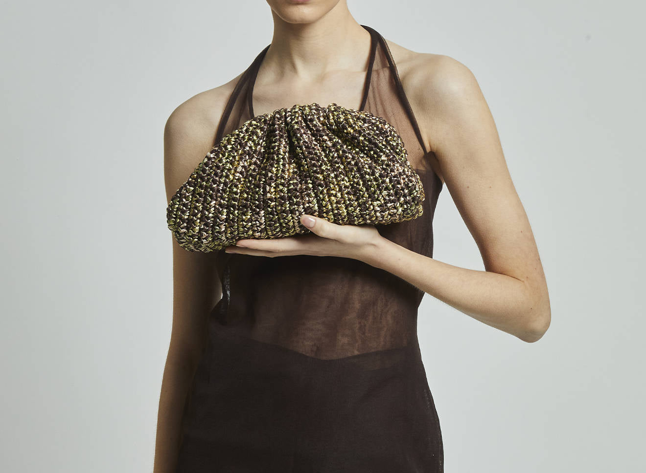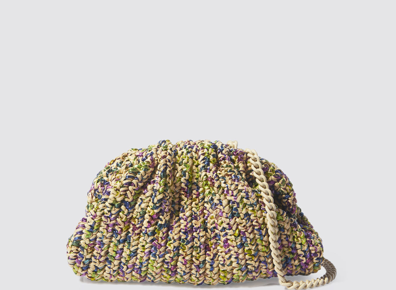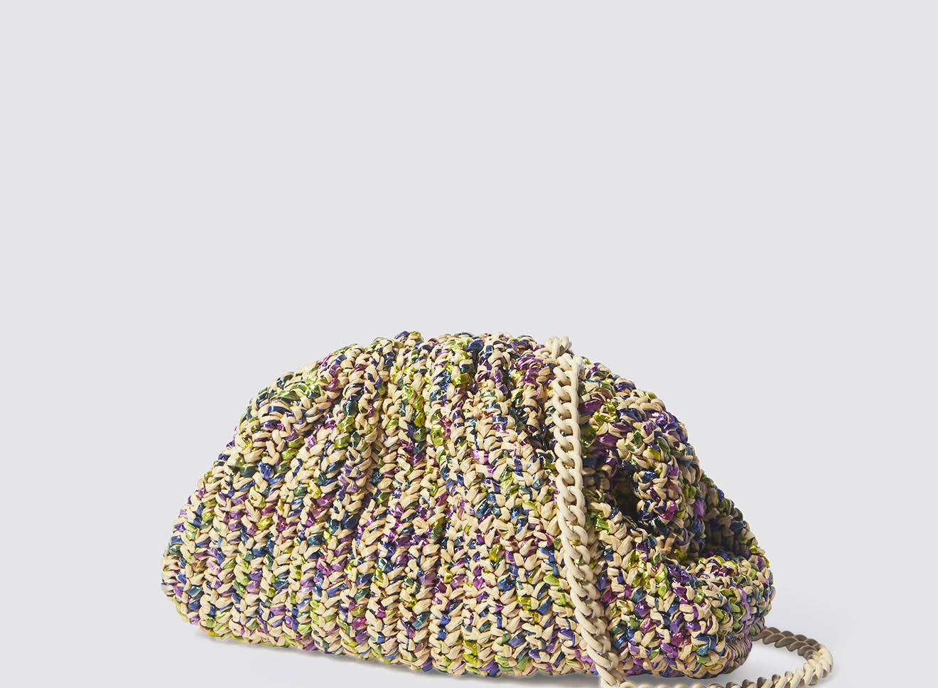 Clutch da donna di medie dimensioni in rafia, realizzata interamente a mano con la tecnica crochet. Un must-have per chi cerca un tocco di originalità e stile artigianale. Questa borsa combina la leggerezza e la naturalezza della rafia con un design unico a crochet, perfetto per aggiungere un accento boho-chic al tuo look. Realizzata a mano con la tecnica del crochet, la clutch presenta un motivo intrecciato che dona un effetto visivo interessante grazie alla sua trama variegata e un aspetto artigianale che non passerà inosservato. È dotata di catena ton sur ton per indossarla anche a tracolla. Interamente disegnata e prodotta in Italia.