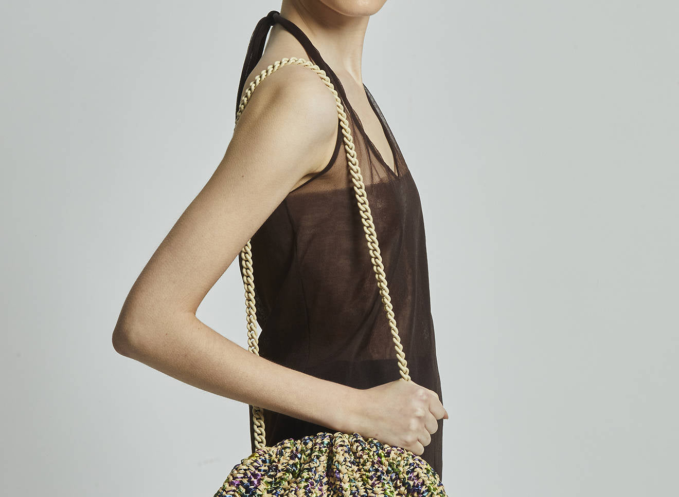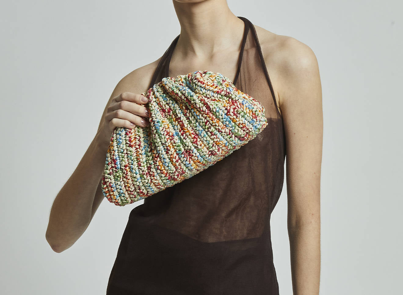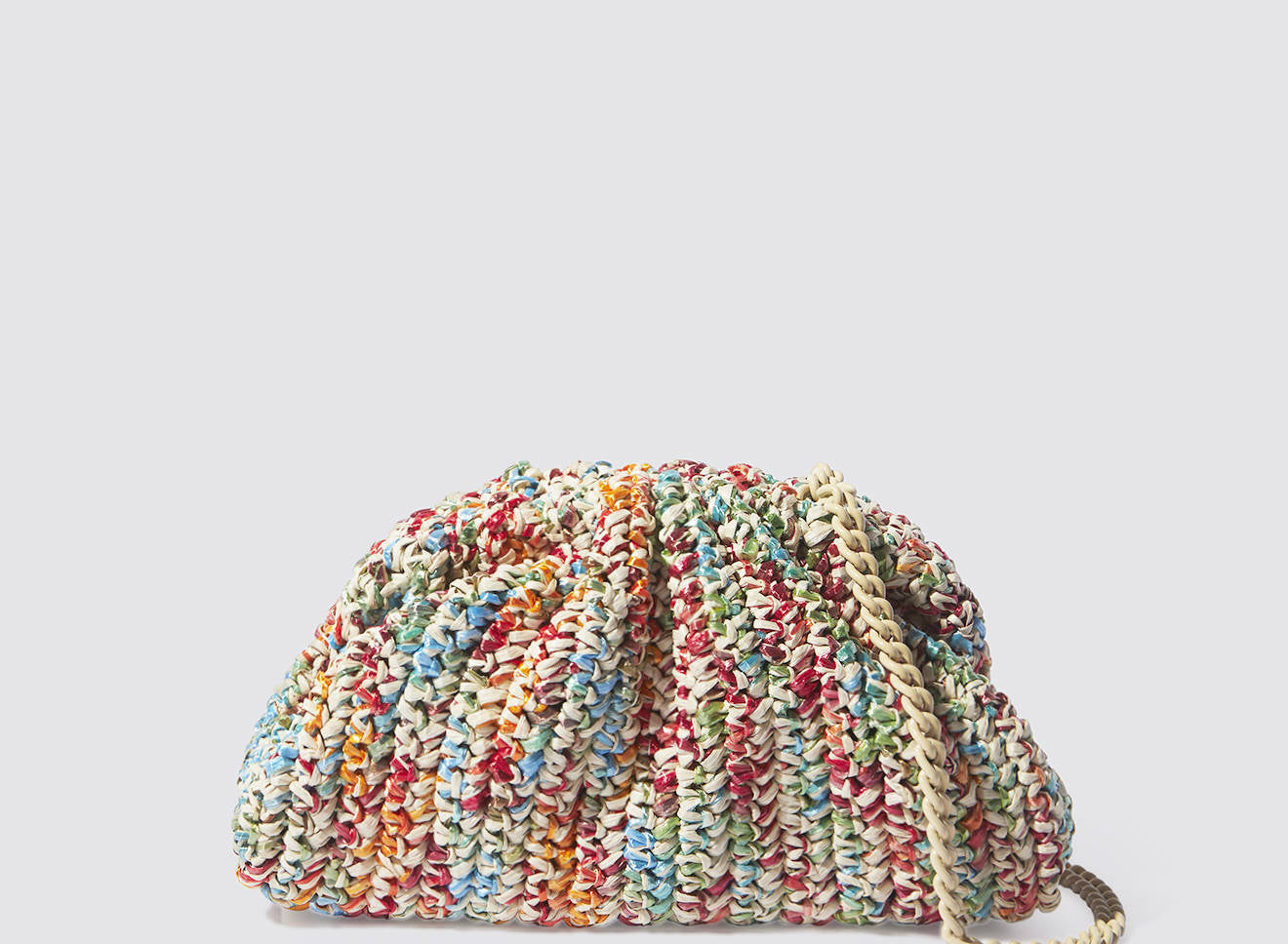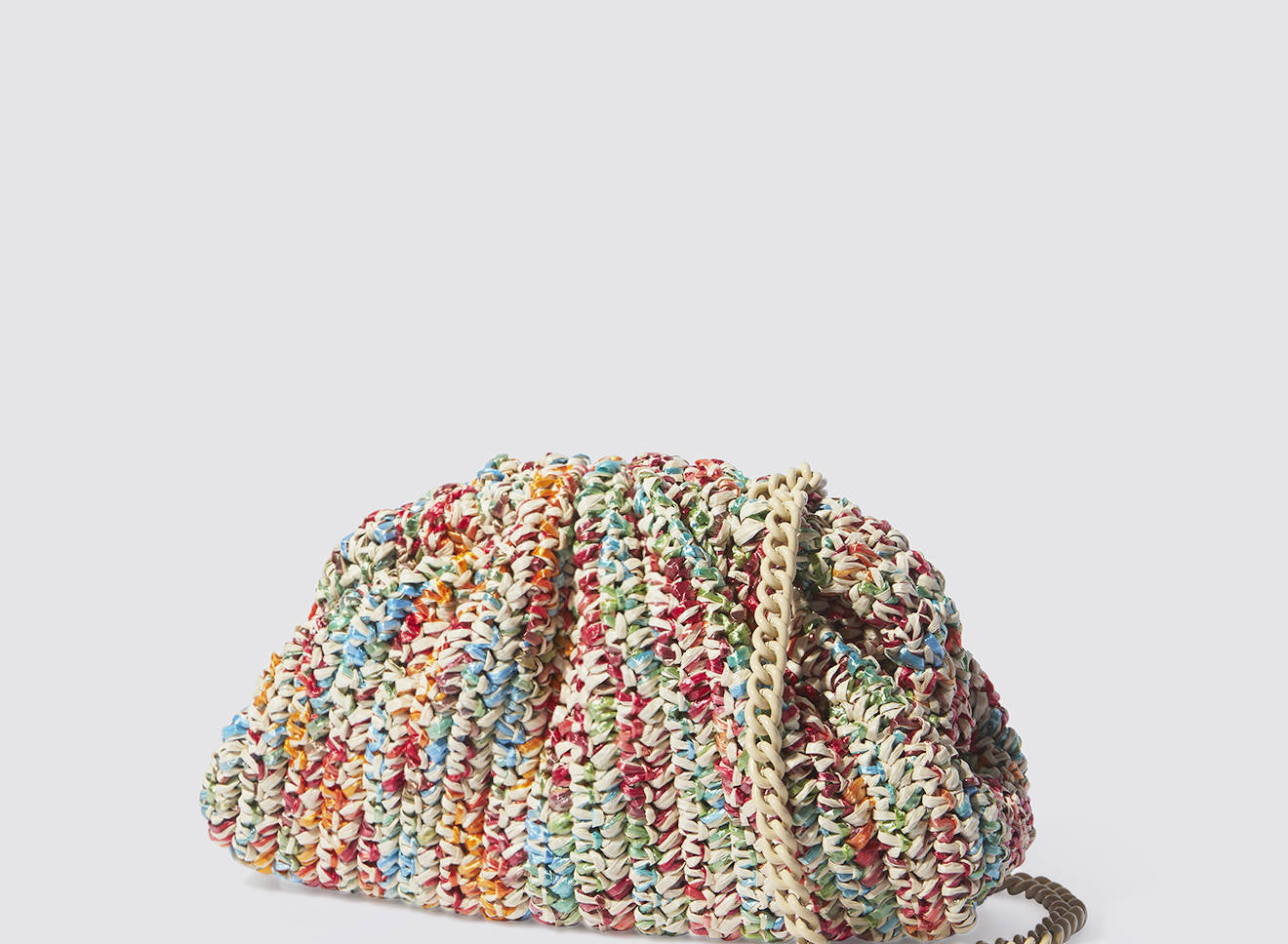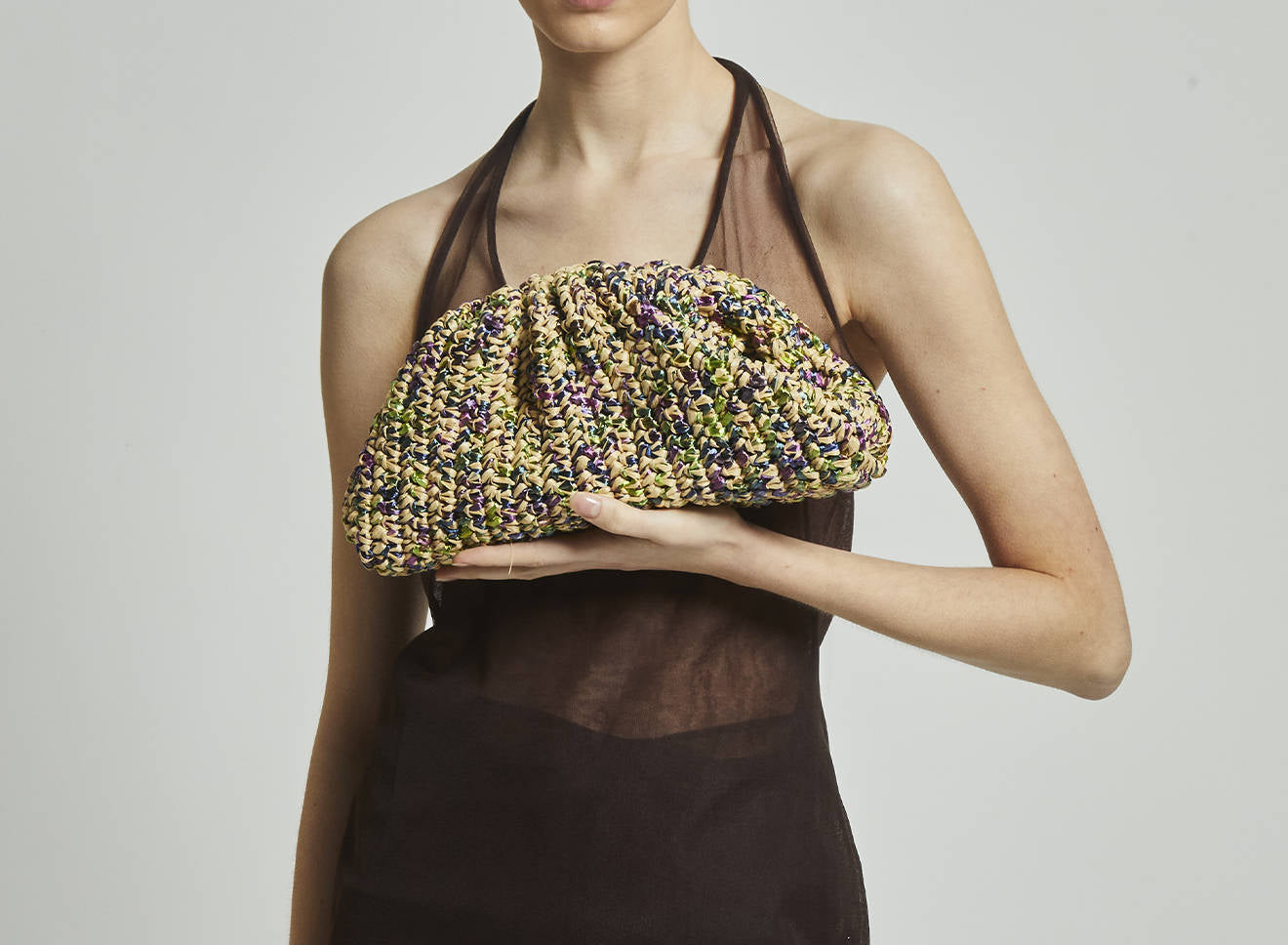 Clutch da donna di medie dimensioni in rafia, realizzata interamente a mano con la tecnica crochet. Un must-have per chi cerca un tocco di originalità e stile artigianale. Questa borsa combina la leggerezza e la naturalezza della rafia con un design unico a crochet, perfetto per aggiungere un accento boho-chic al tuo look. Realizzata a mano con la tecnica del crochet, la clutch presenta un motivo intrecciato che dona un effetto visivo interessante grazie alla sua trama variegata e un aspetto artigianale che non passerà inosservato. È dotata di catena ton sur ton per indossarla anche a tracolla. Interamente disegnata e prodotta in Italia.