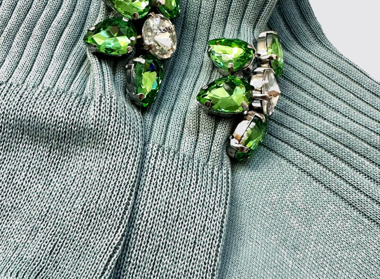 Calze in cotone organico con ricamo gioiello. Realizzate in morbido cotone organico, queste calze uniscono comfort naturale ed eleganza discreta. Il dettaglio gioiello applicato a mano con cristalli in tinta le trasforma in un accessorio raffinato e originale, perfetto per aggiungere carattere anche al look più semplice.