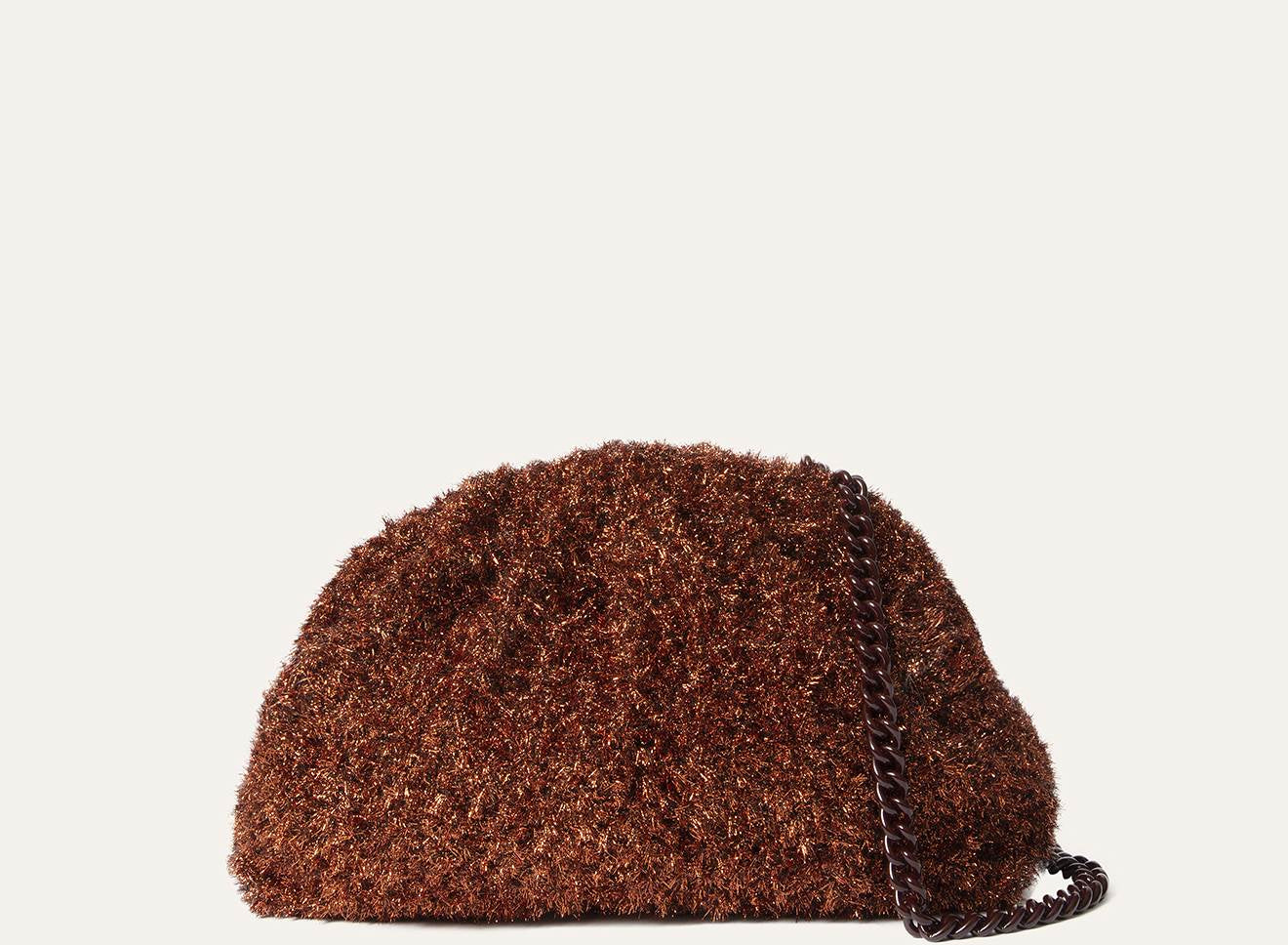 Clutch da donna di medie dimensioni in tessuto di lurex intrecciato, realizzato a mano su antichi telai. Questo modello costituisce l’icon bag Maria La Rosa, perfetta per tutte le stagioni, emblema di una nuova eleganza metropolitana, che assicura capienza e funzionalità. È dotata di catena ton sur ton per indossarla anche a tracolla e tante sono le varietà cromatiche tra cui poter scegliere.