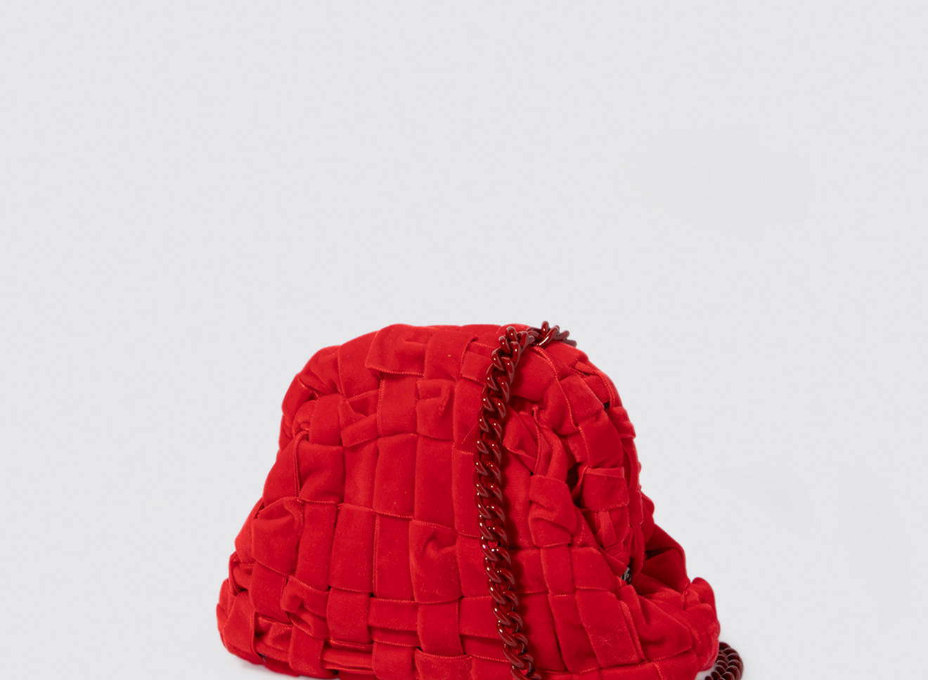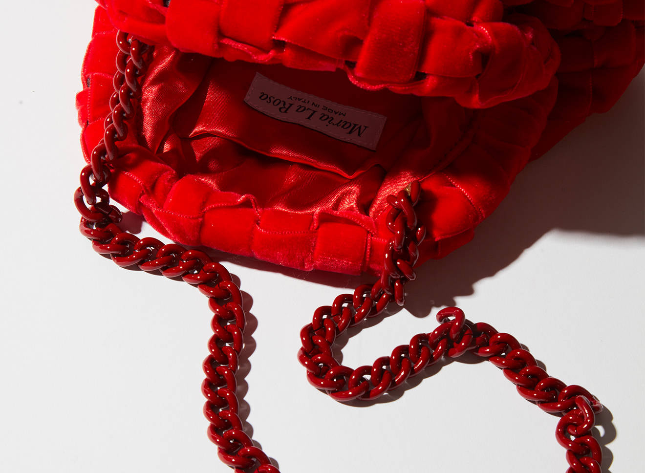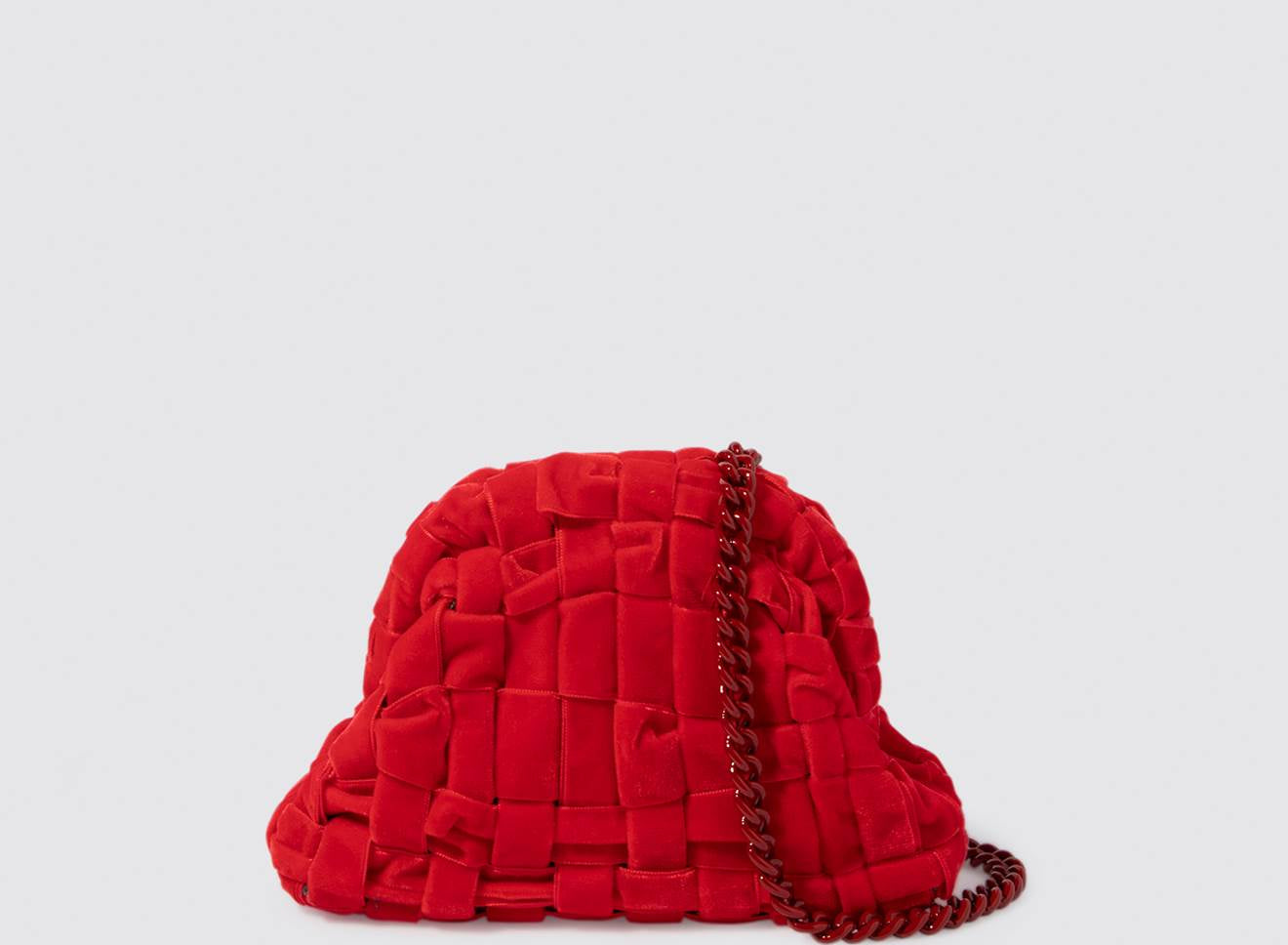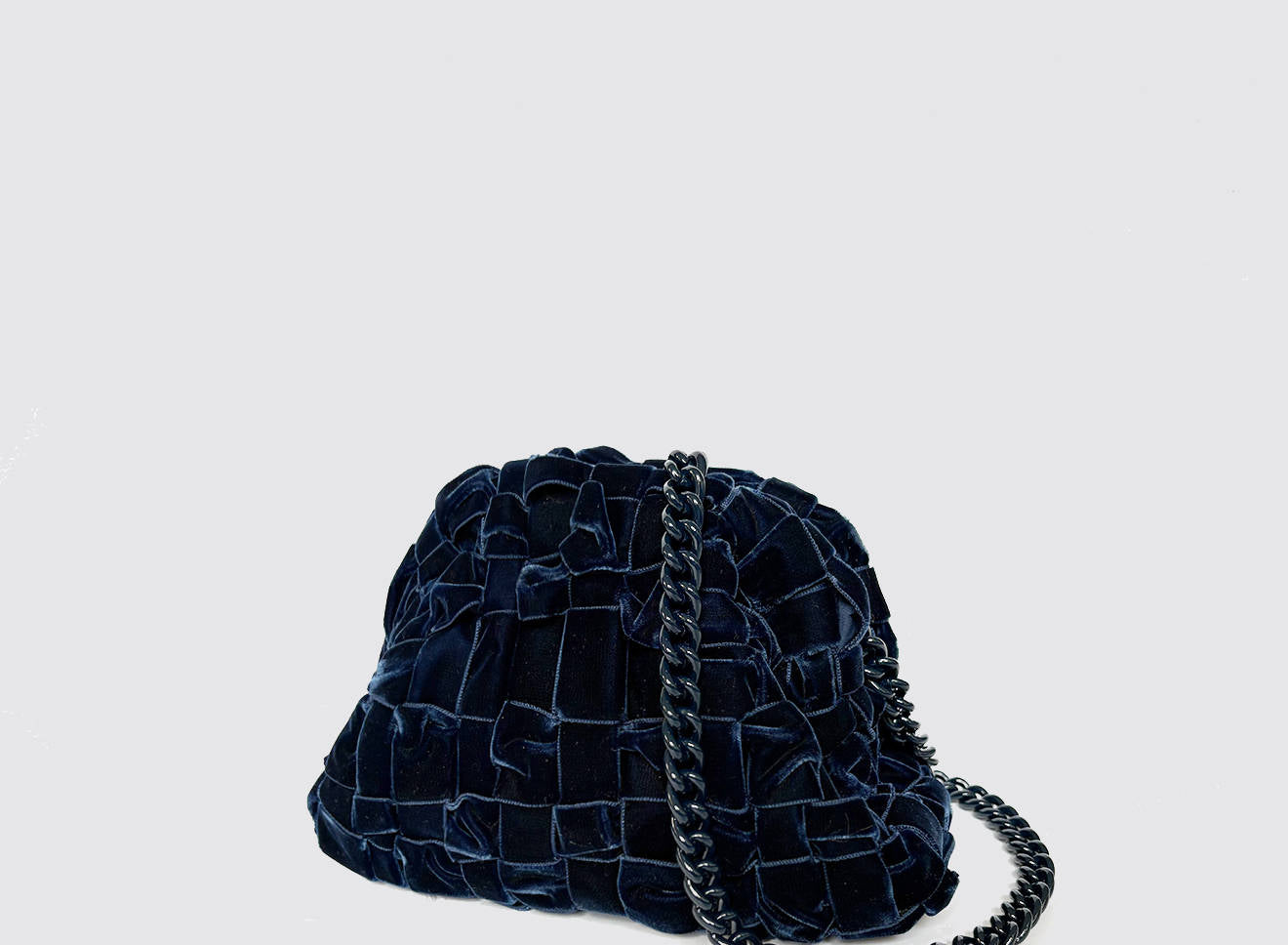 Clutch da donna di piccole dimensioni in tessuto di nastro di velluto intrecciato, realizzato a mano su antichi telai. Questo modello costituisce l’icon bag Maria La Rosa, perfetta per la stagione invernale, emblema di una nuova eleganza metropolitana, che assicura capienza e funzionalità.