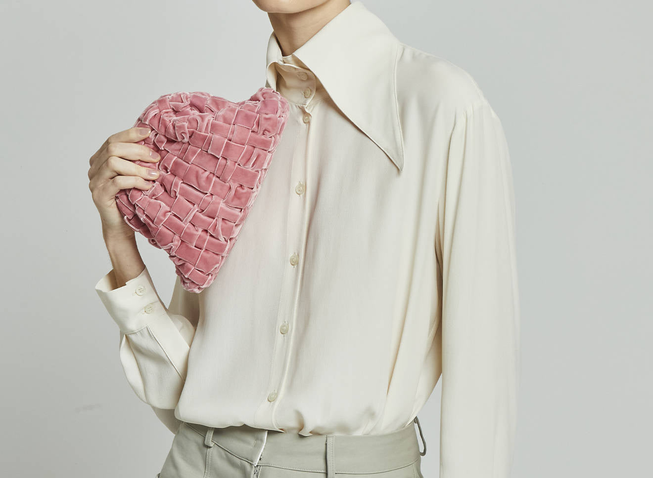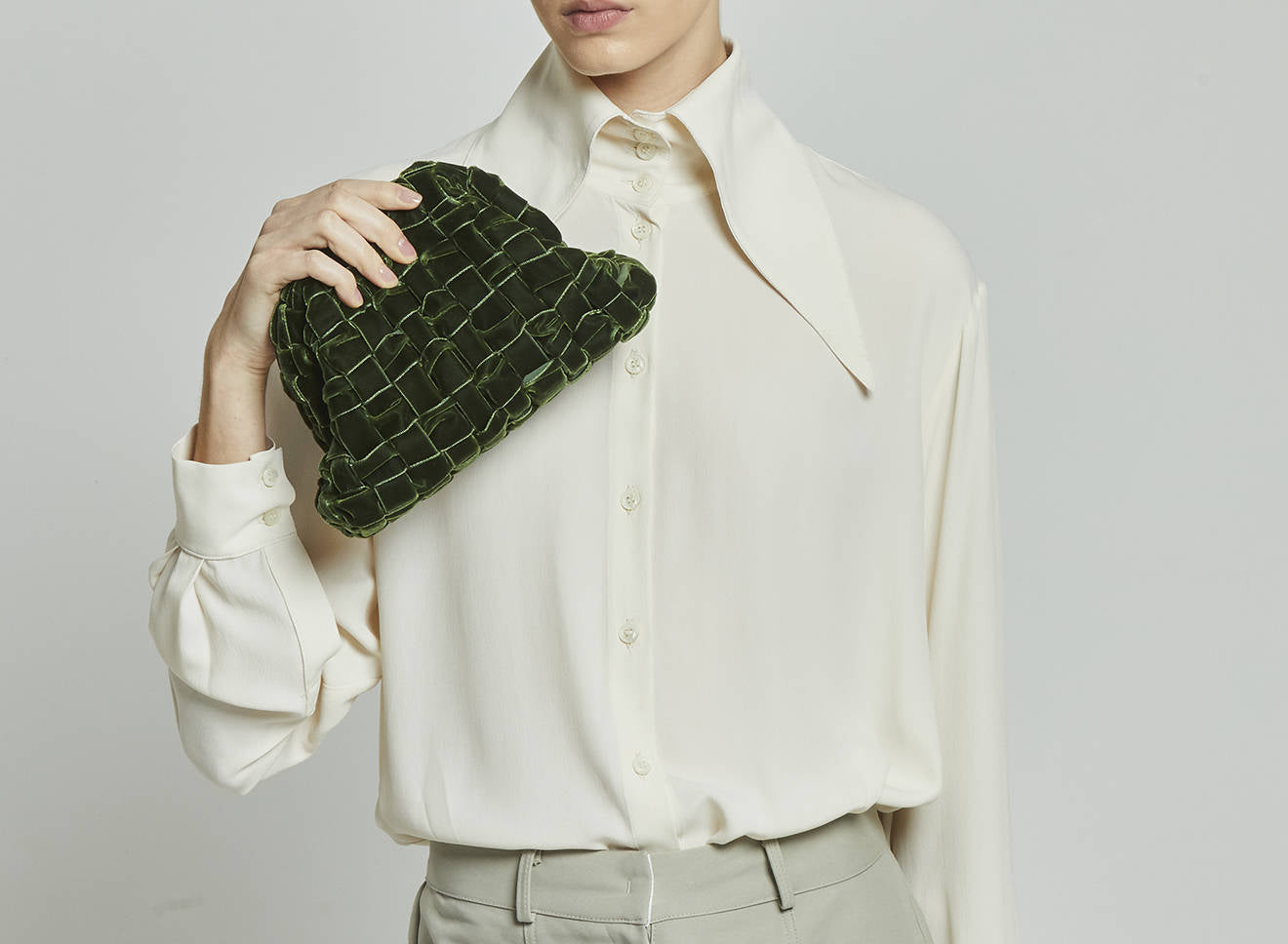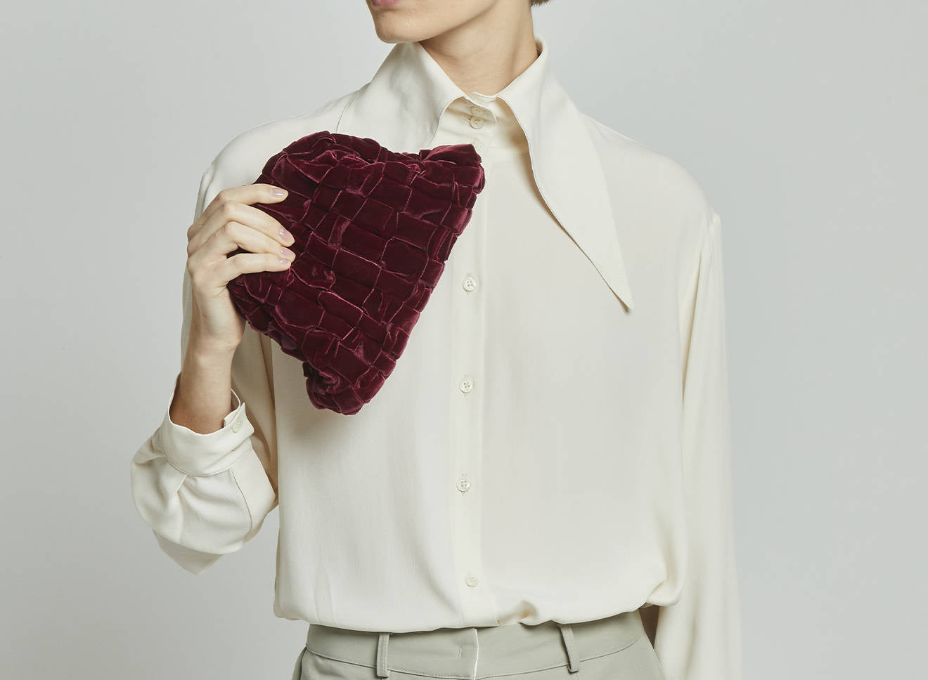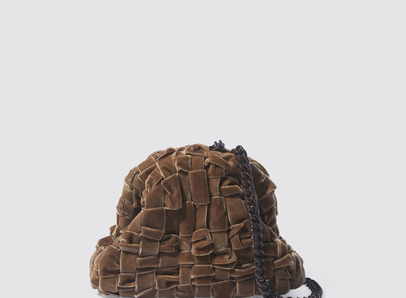Clutch da donna di piccole dimensioni in tessuto di nastro di velluto intrecciato, realizzato a mano su antichi telai. Questo modello costituisce l’icon bag Maria La Rosa, perfetta per la stagione invernale, emblema di una nuova eleganza metropolitana, che assicura capienza e funzionalità.