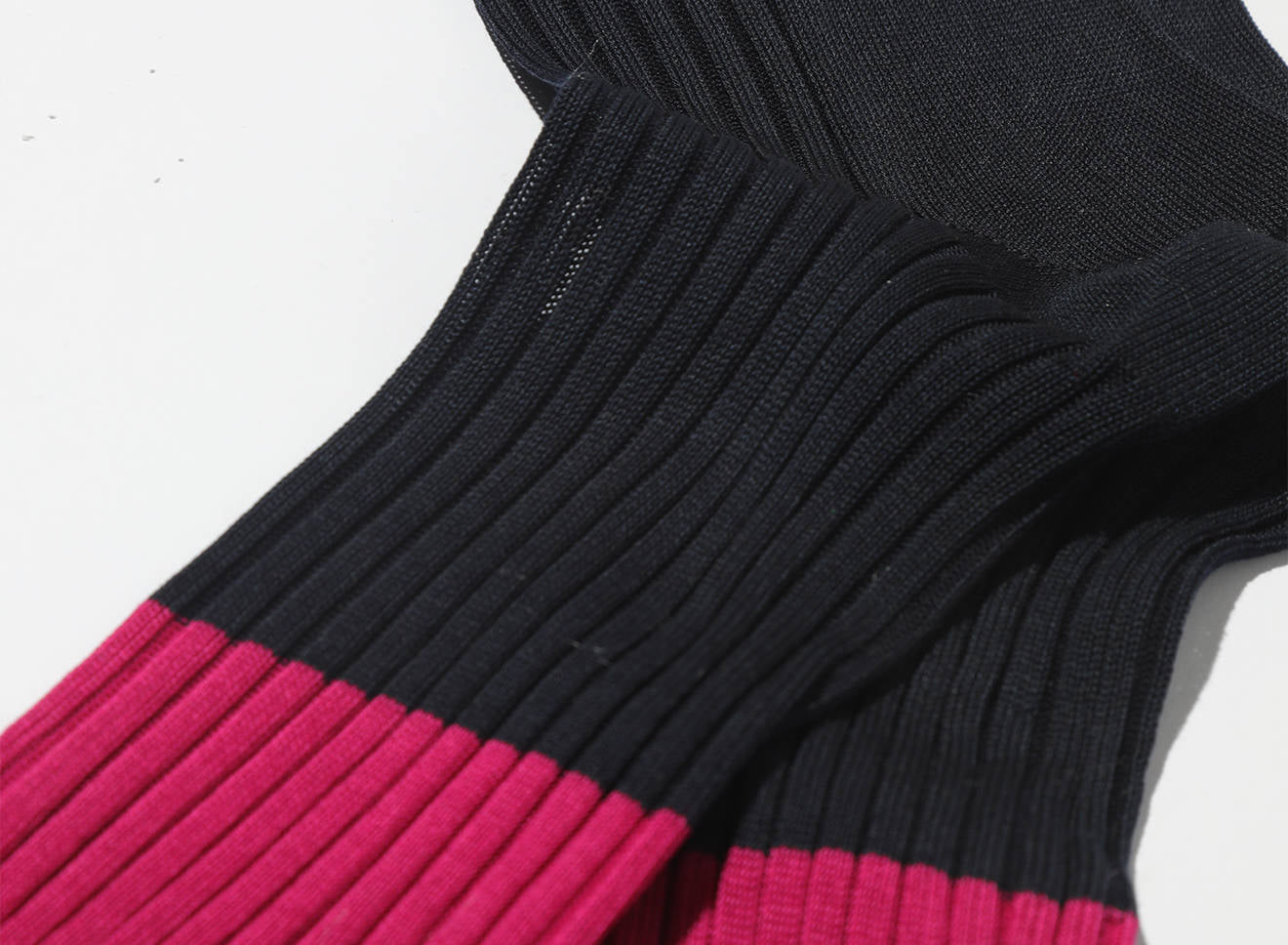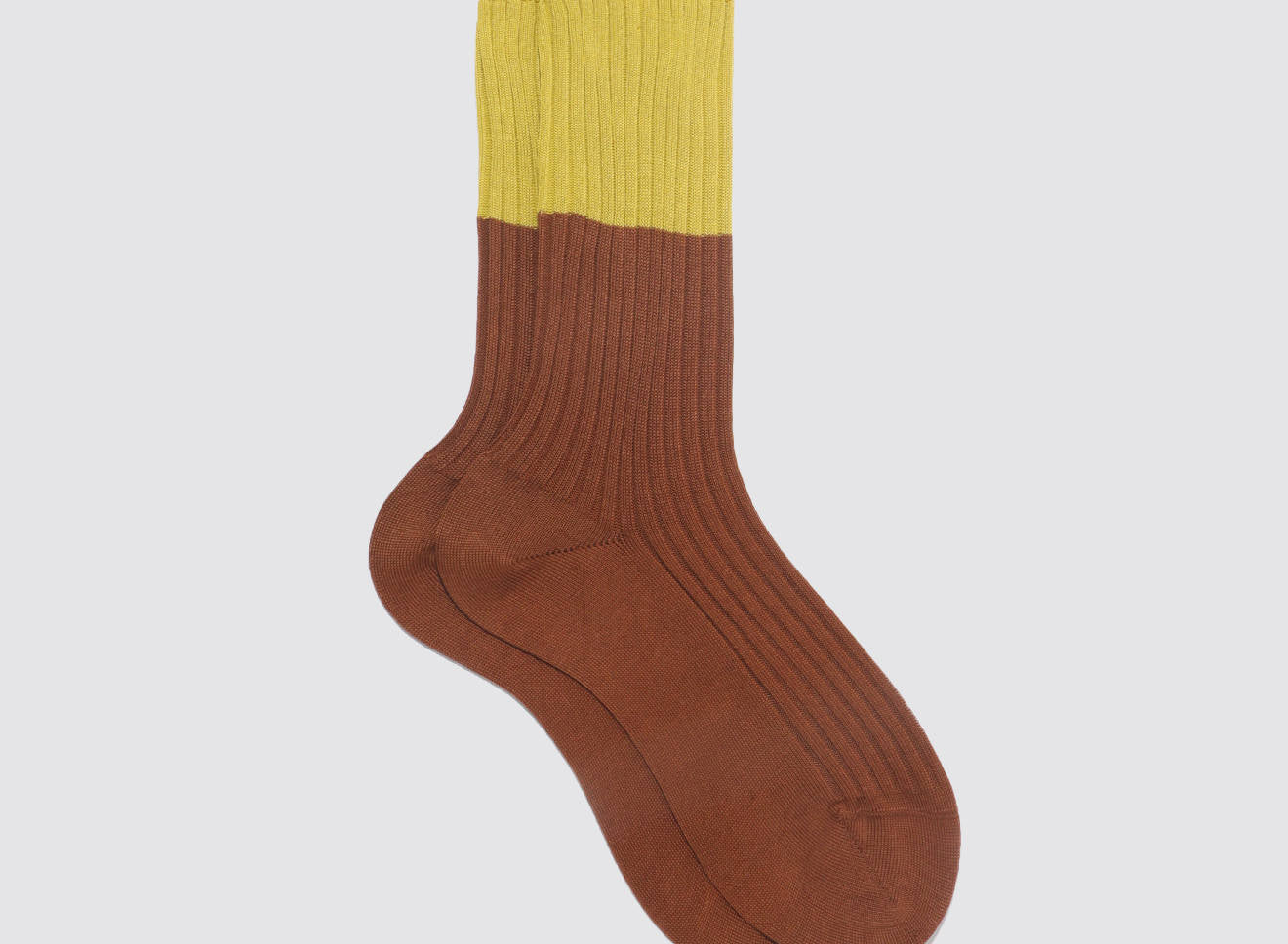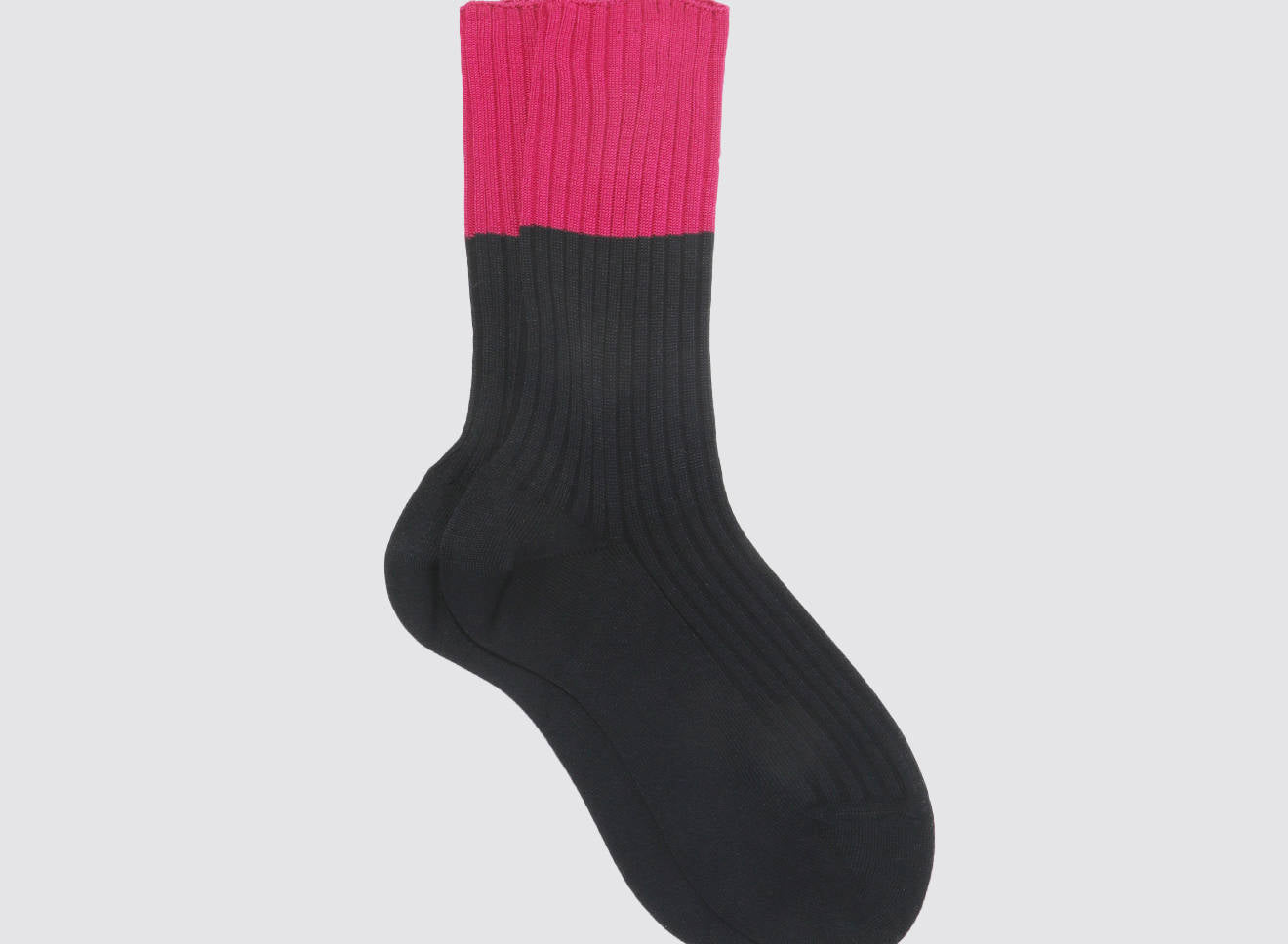 Calzini da donna in cotone, a costine, impreziosite da elastico a contrasto nella parte superiore.